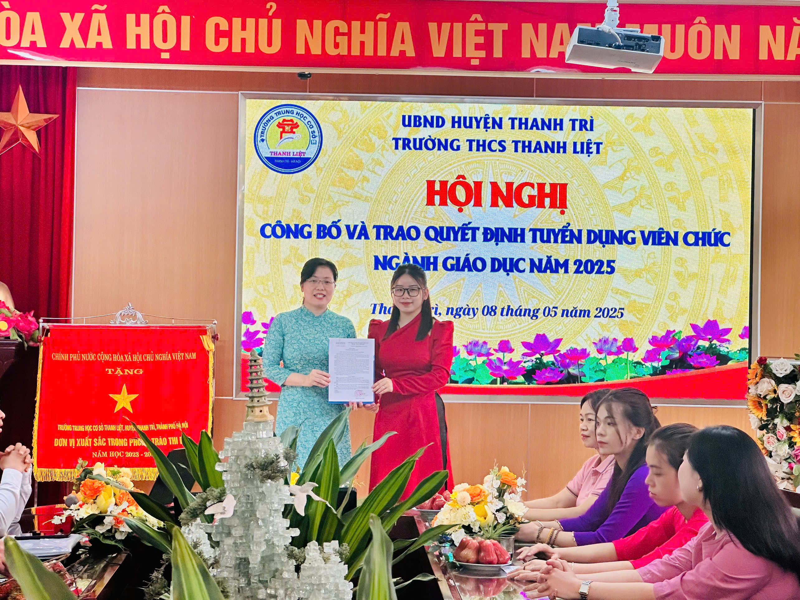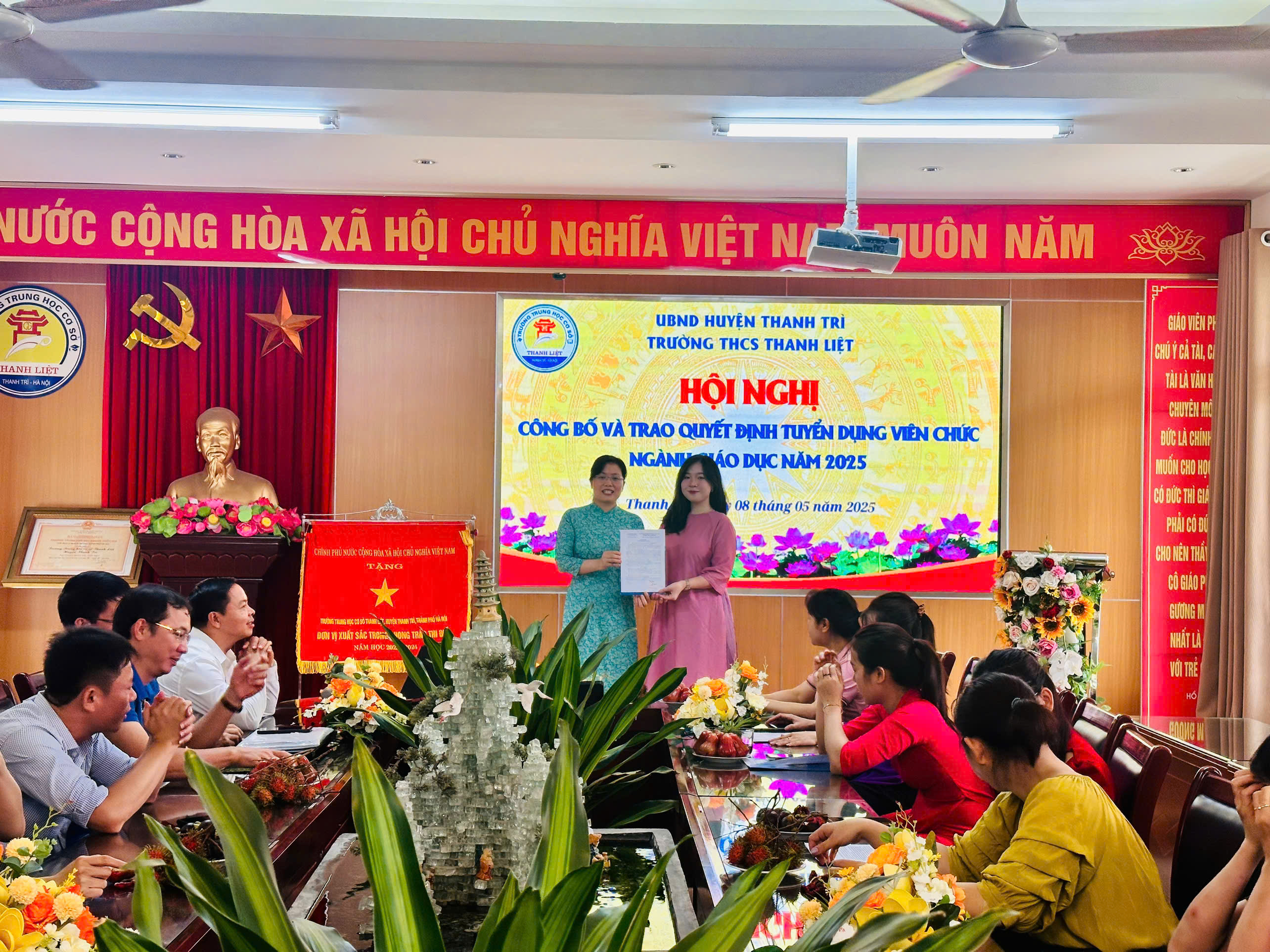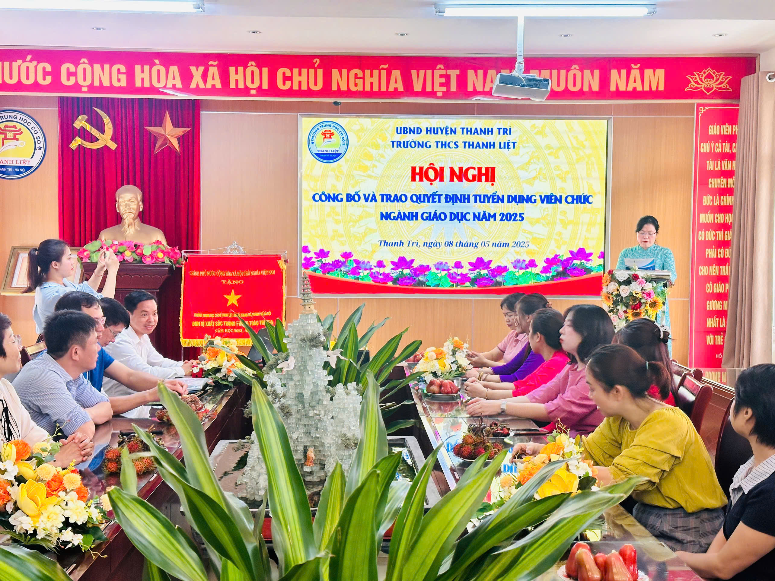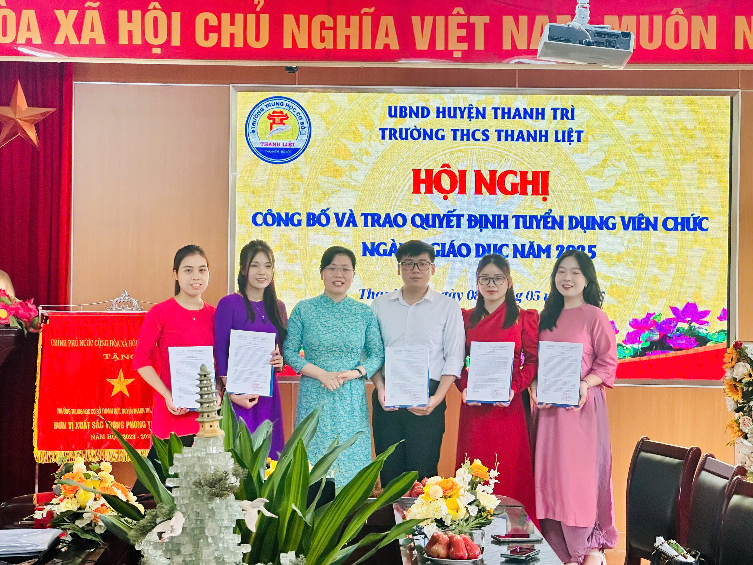 Thực hiện hướng dẫn của Phòng Nội vụ Huyện Thanh Trì về việc công bố trao quyết định cho các thí sinh trúng tuyển viên chức làm việc tại cơ sở giáo dục công lập trực thuộc UBND huyện Thanh Trì năm 2025, sáng này 08/05/2025 Trường THCS Thanh Liệt tổ chức Hội nghị công bố và trao quyết định cho các thí sinh trúng tuyển viên chức làm việc tại nhà trường.