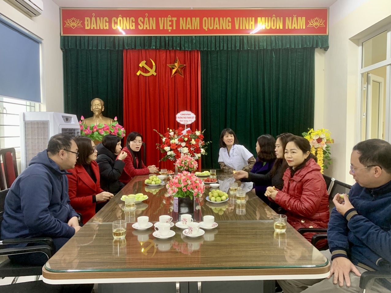 trường cùng các thầy cô giáo đại diện cho CB-GV-NV, học sinh nhà trường đã tặng hoa chúc mừng và gửi lời chúc tốt đẹp đến cô Nguyễn Thị Hợi-nhân viên y tế của nhà trường và trạm y tế xã Thanh Liệt.