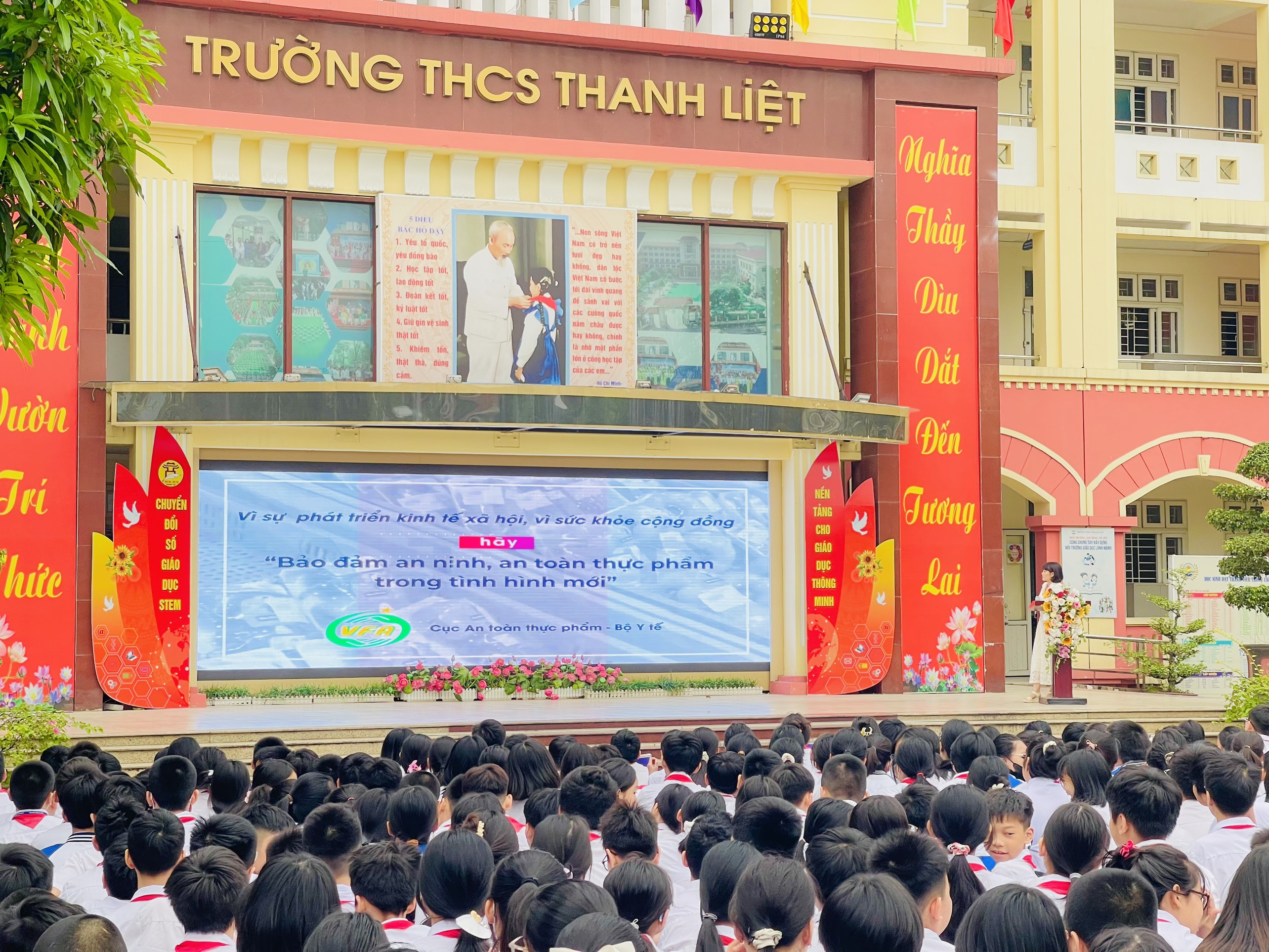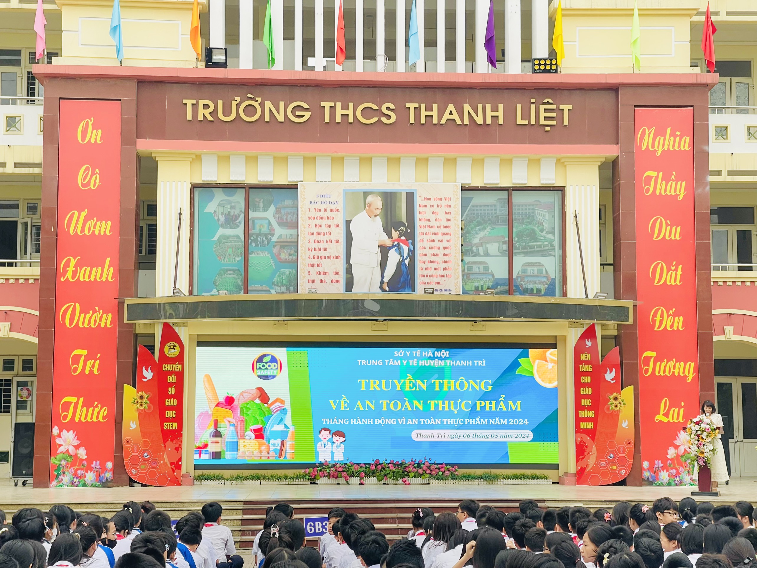 Sáng ngày 6/5/2024 trường THCS Thanh Liệt tổ chức buổi tuyên truyền về vấn đề an toàn vệ sinh thực phẩm- Tháng hành động vì An toàn thực phẩm năm 2024 cho CBGV-NV và HS toàn trường. Đây là hoạt động tổ chức thường niên nhằm trang bị kiến thức và kĩ năng lựa chọn thực phẩm an toàn để đảm bảo sức khỏe cho mọi người.