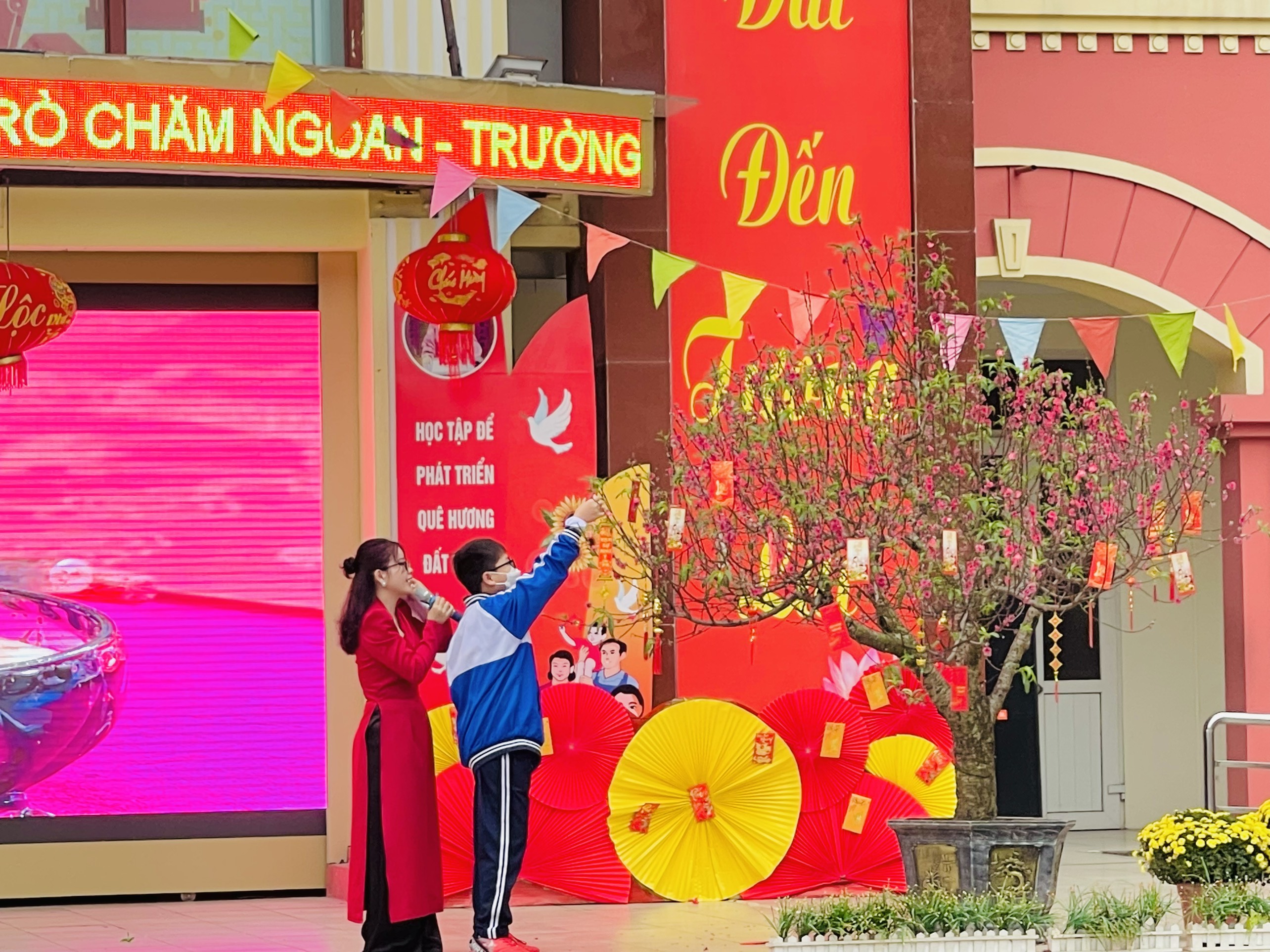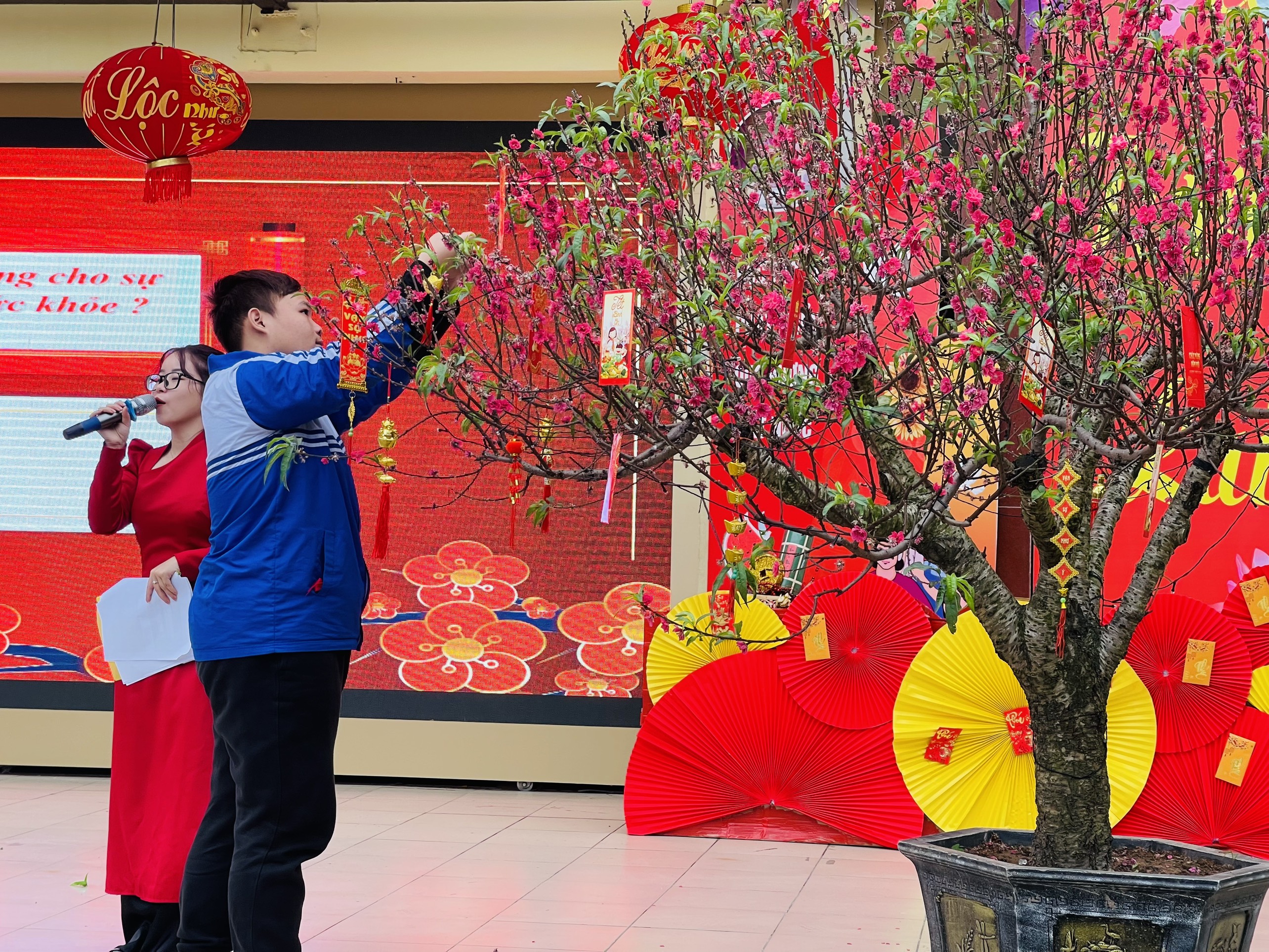hứng với phần “Hái hoa dân chủ” - những câu hỏi với chủ đề Tết giúp học sinh hiểu hơn về những nét đẹp của Tết cổ truyền dân tộc.