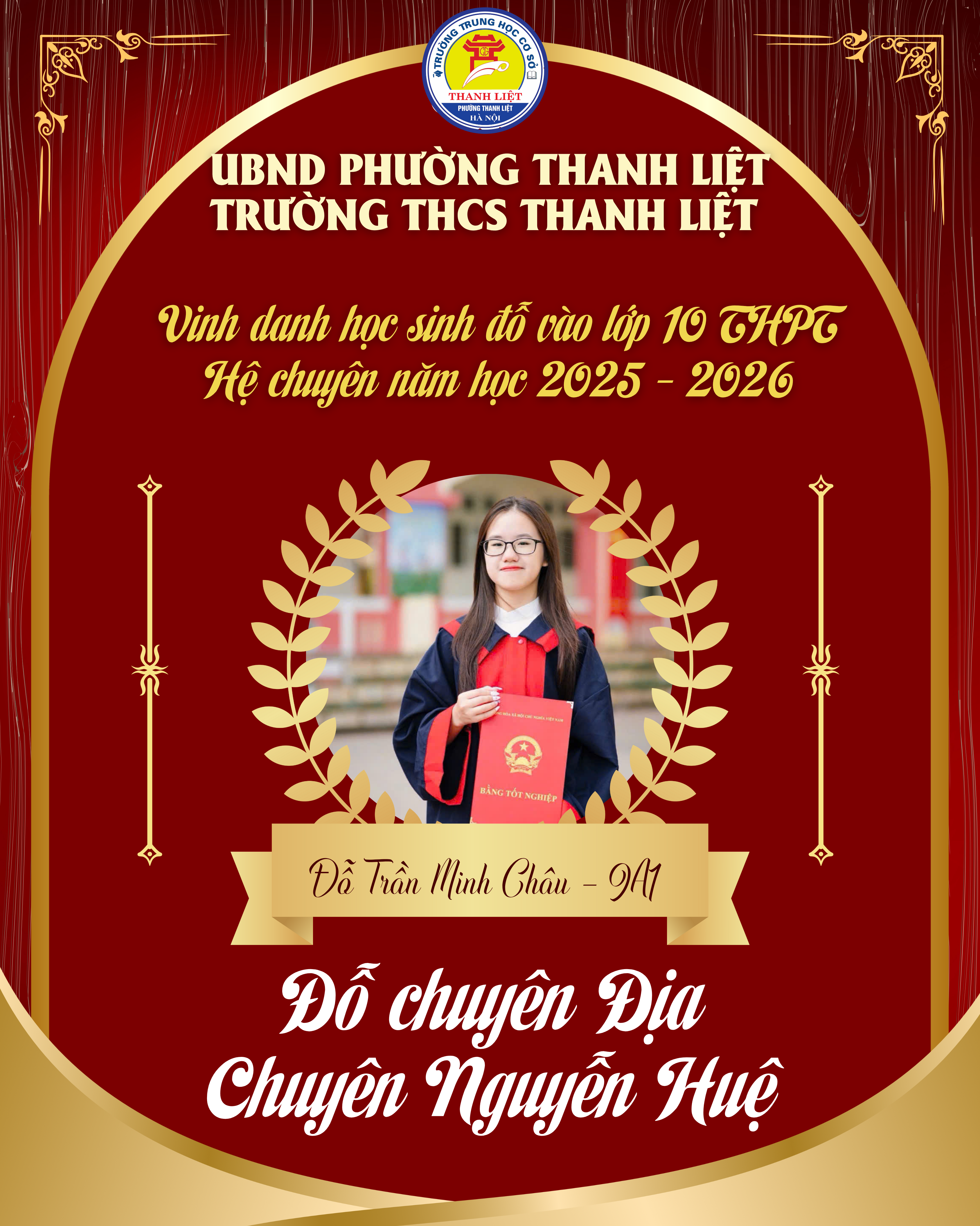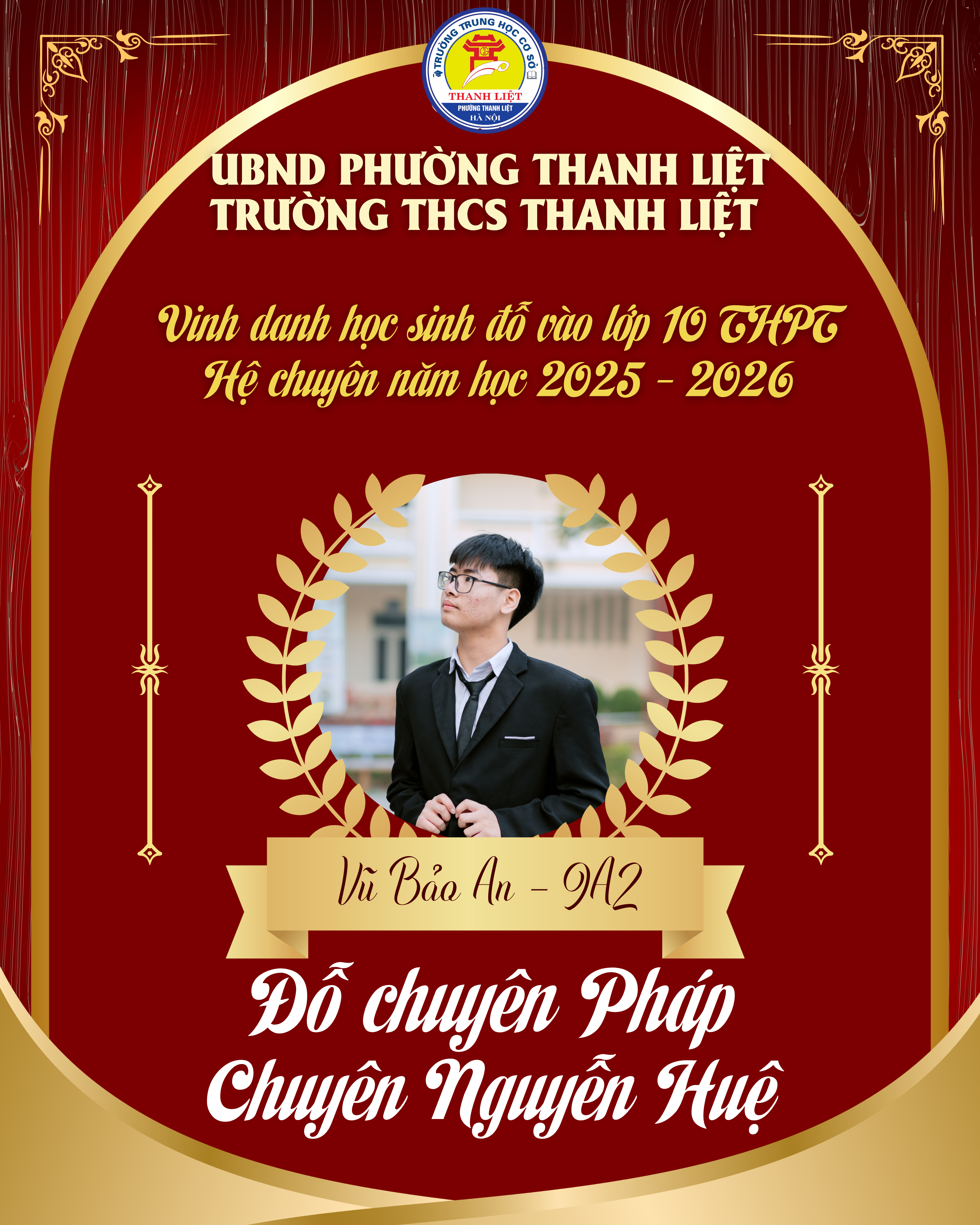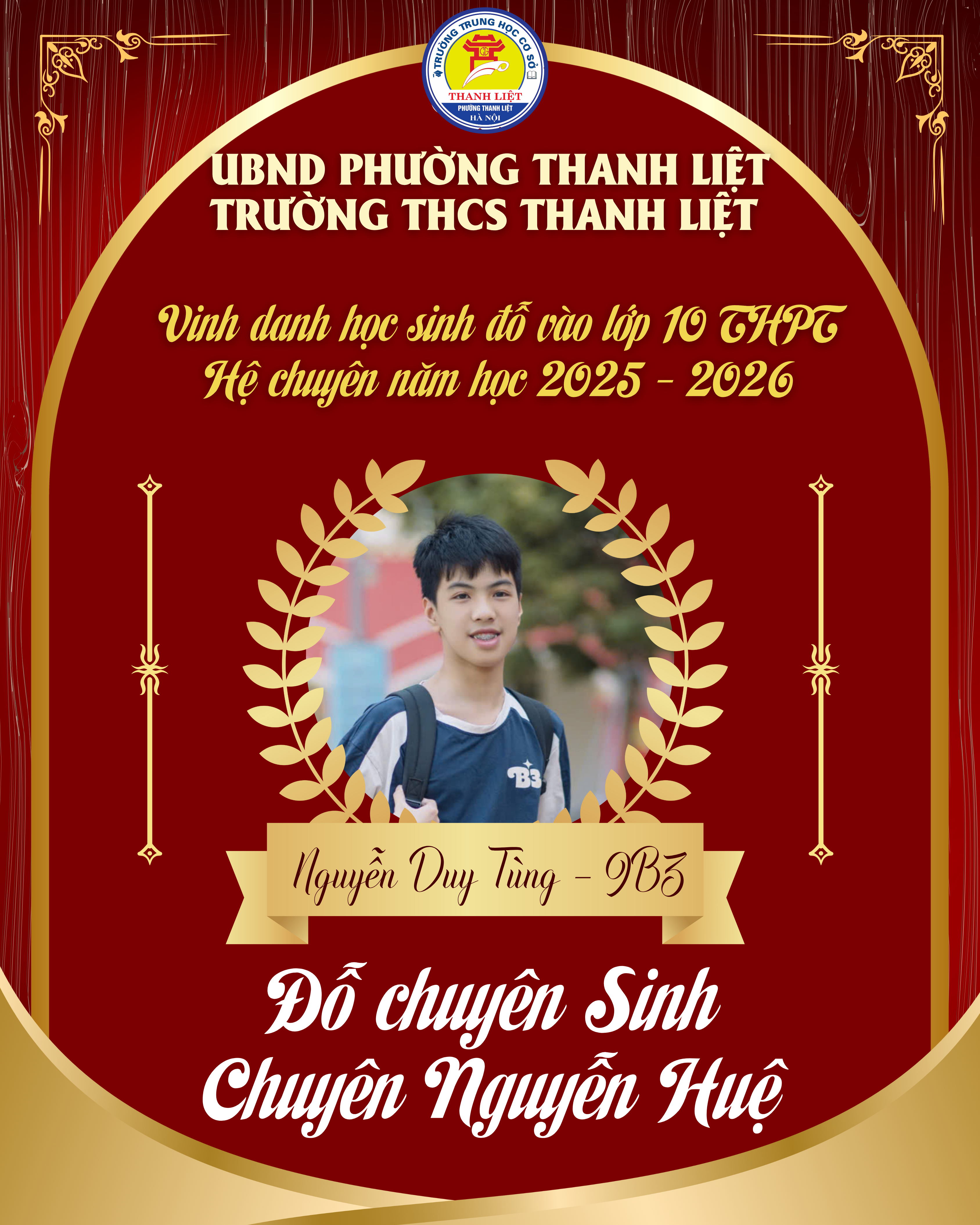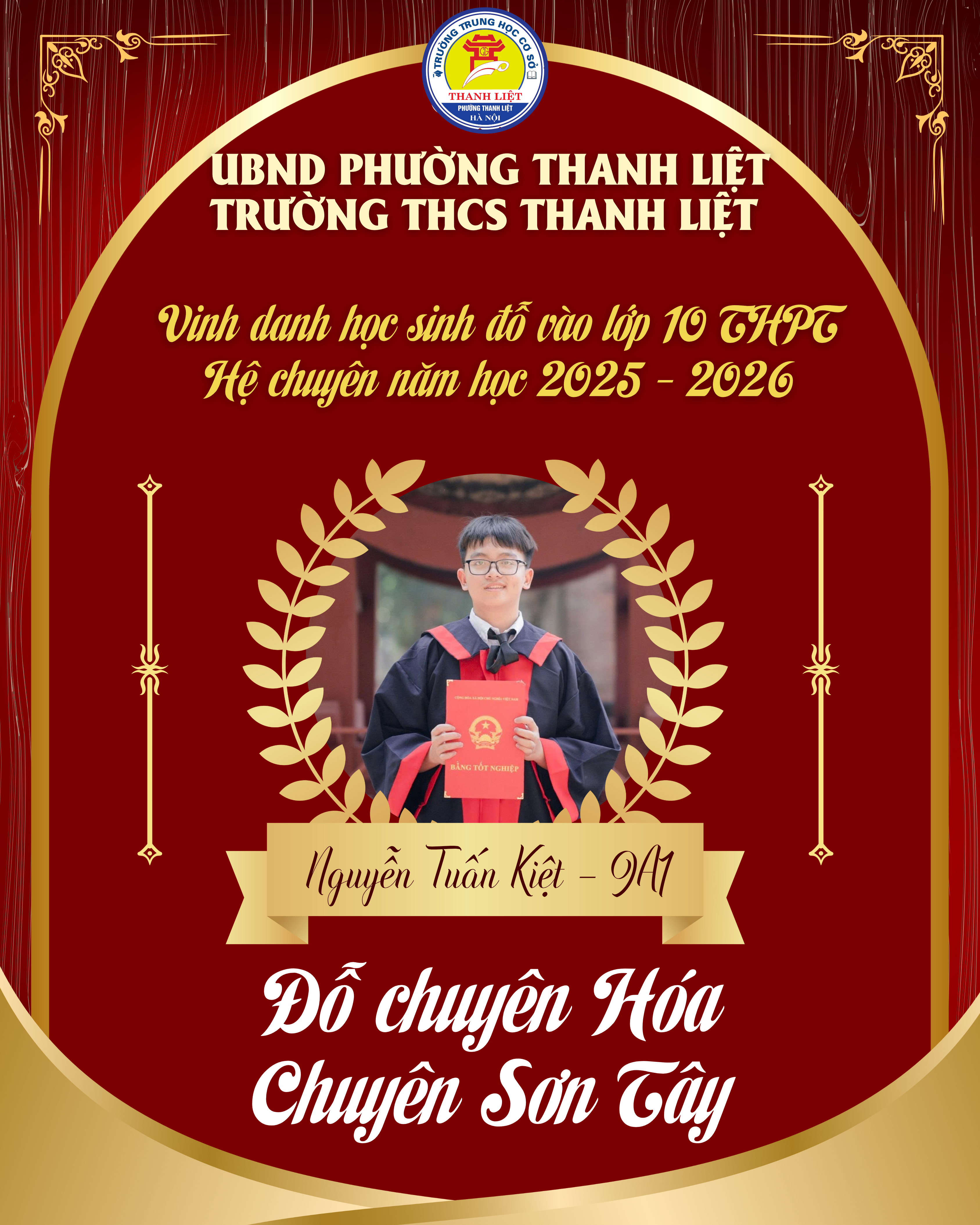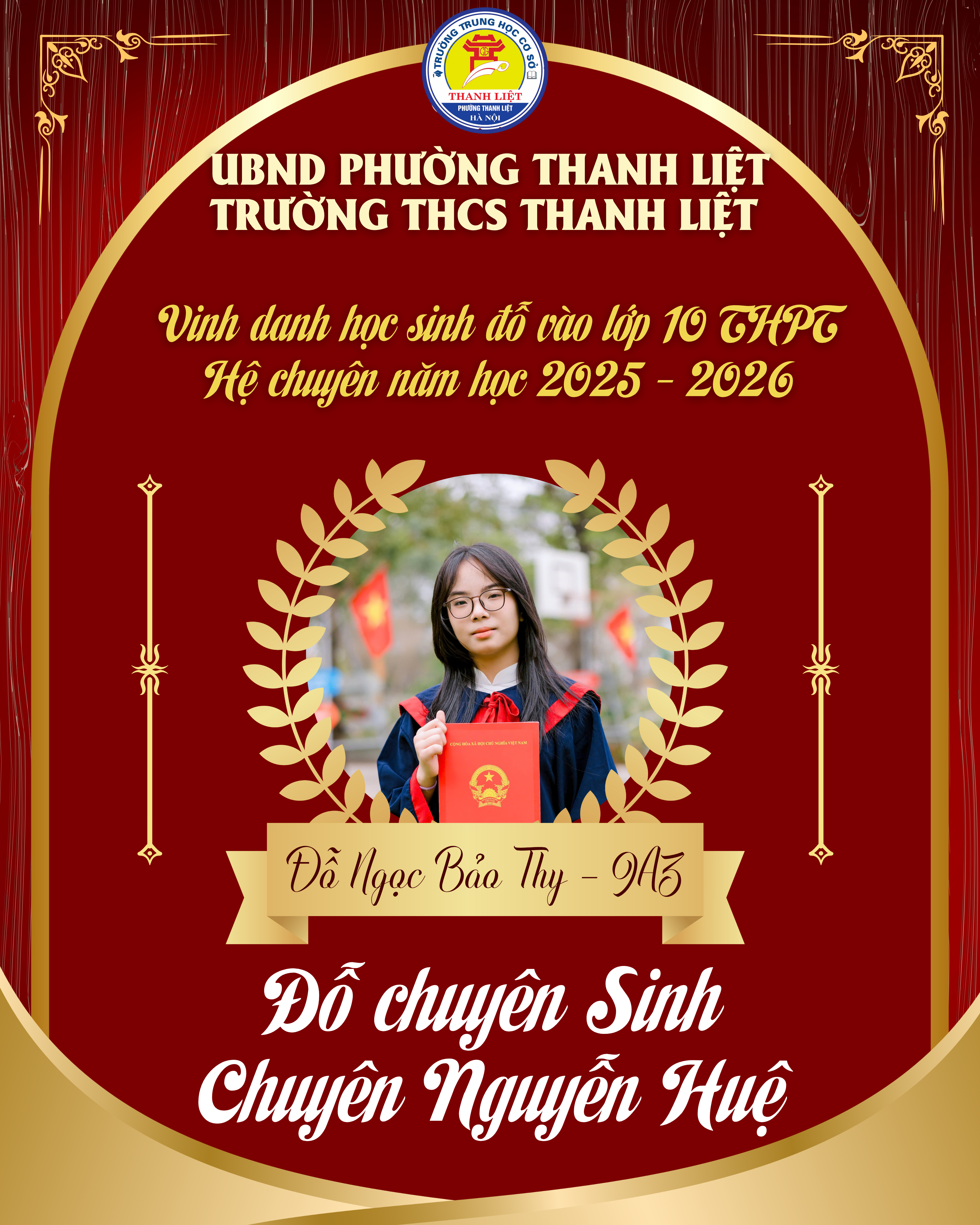 🔥 🔥 🔥 TIN VUI NỐI TIẾP TIN VUI! Nhà trường chúc mừng các em học sinh đã xuất sắc đỗ vào trường THPT Chuyên! Đây là một thành tích đáng tự hào, đánh dấu sự nỗ lực và cố gắng không ngừng của em trong suốt thời gian học tập. 🥰 🥰 🥰