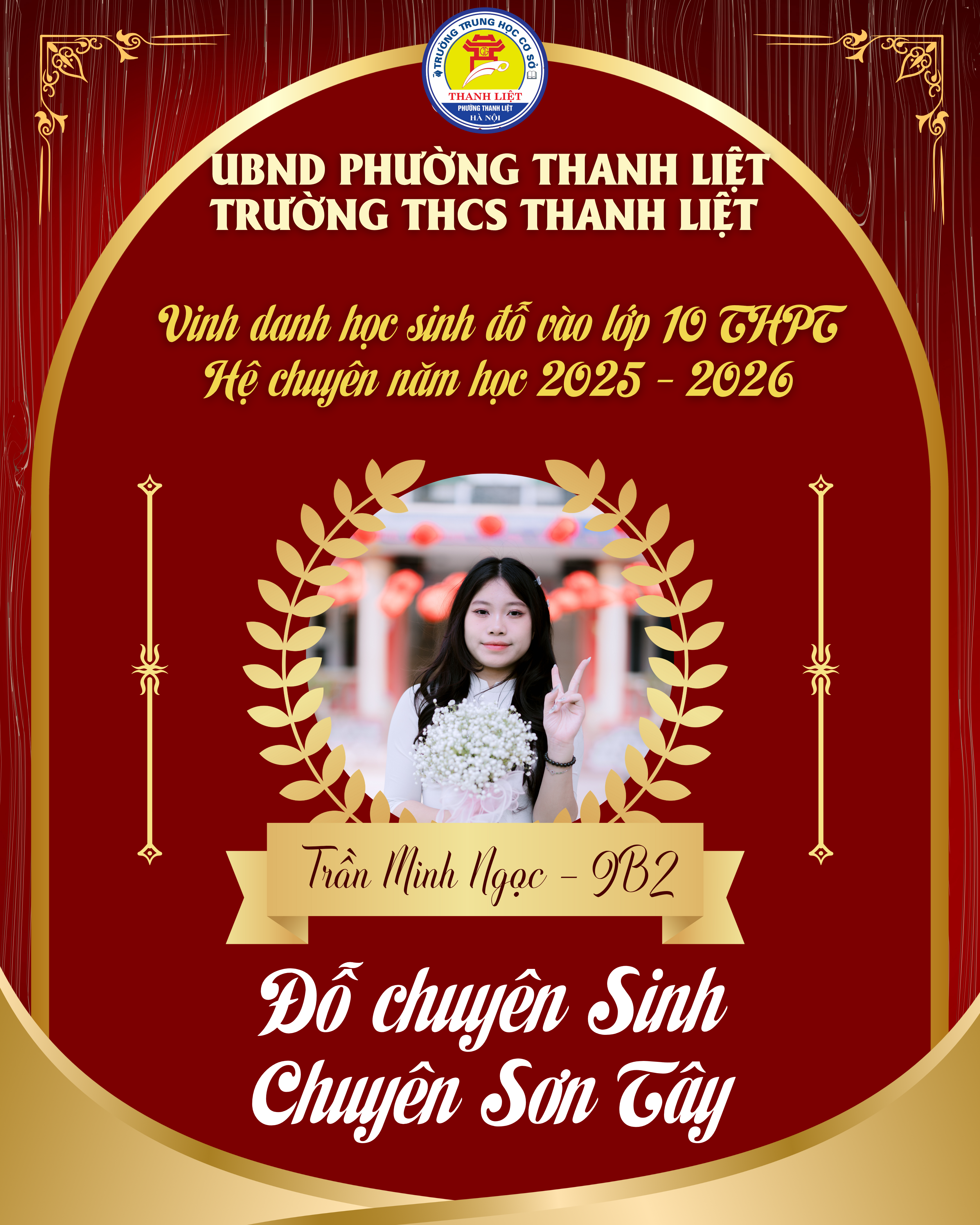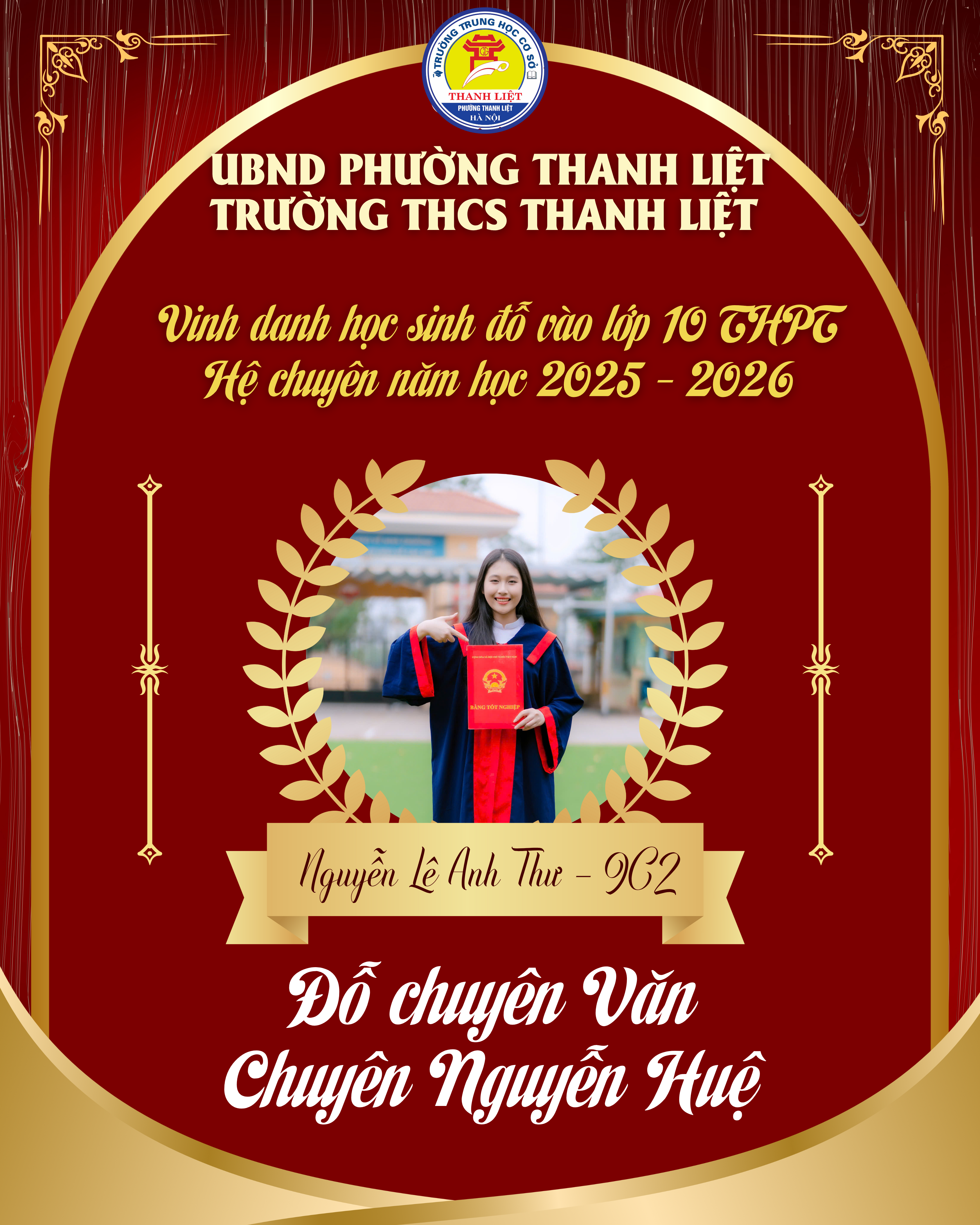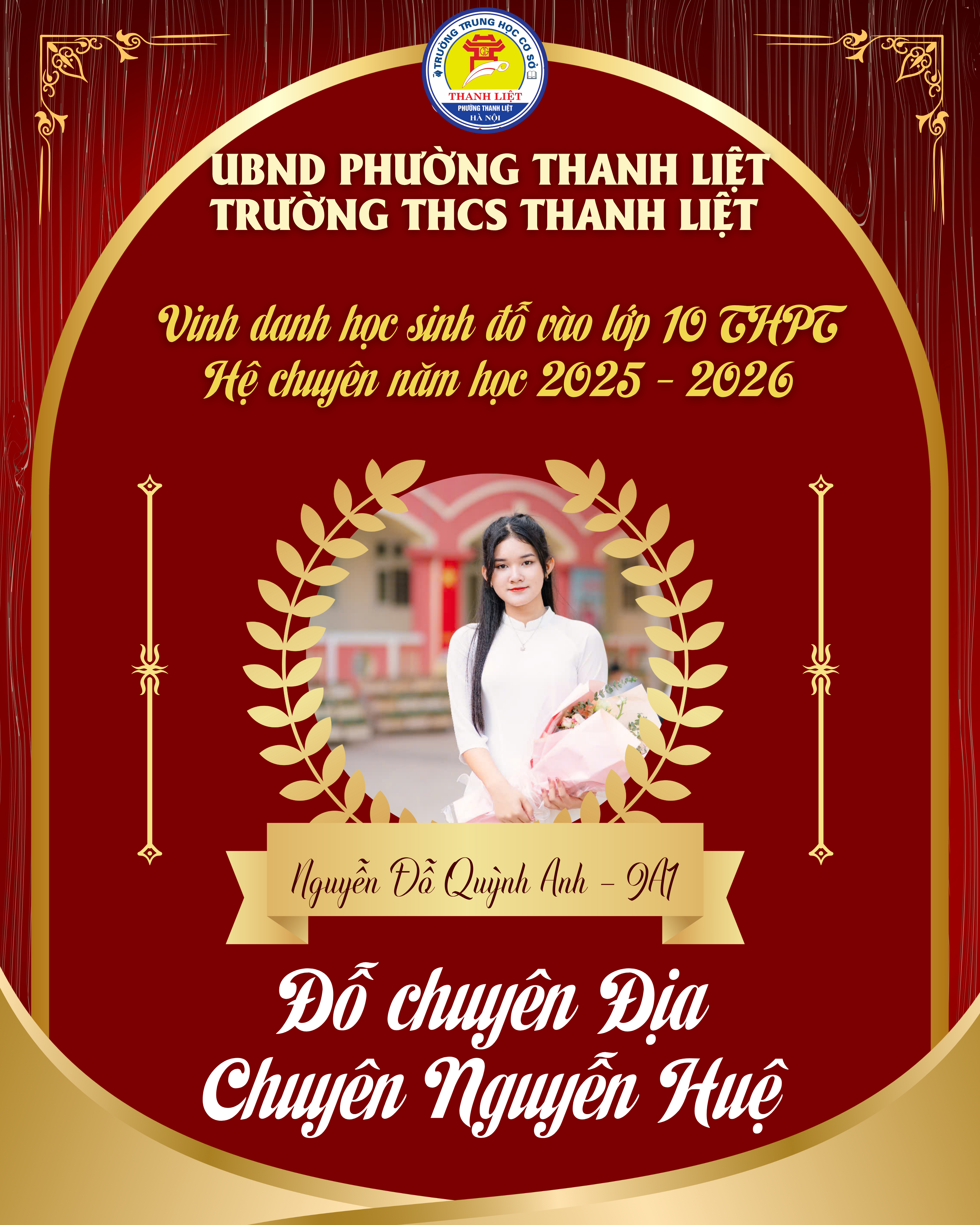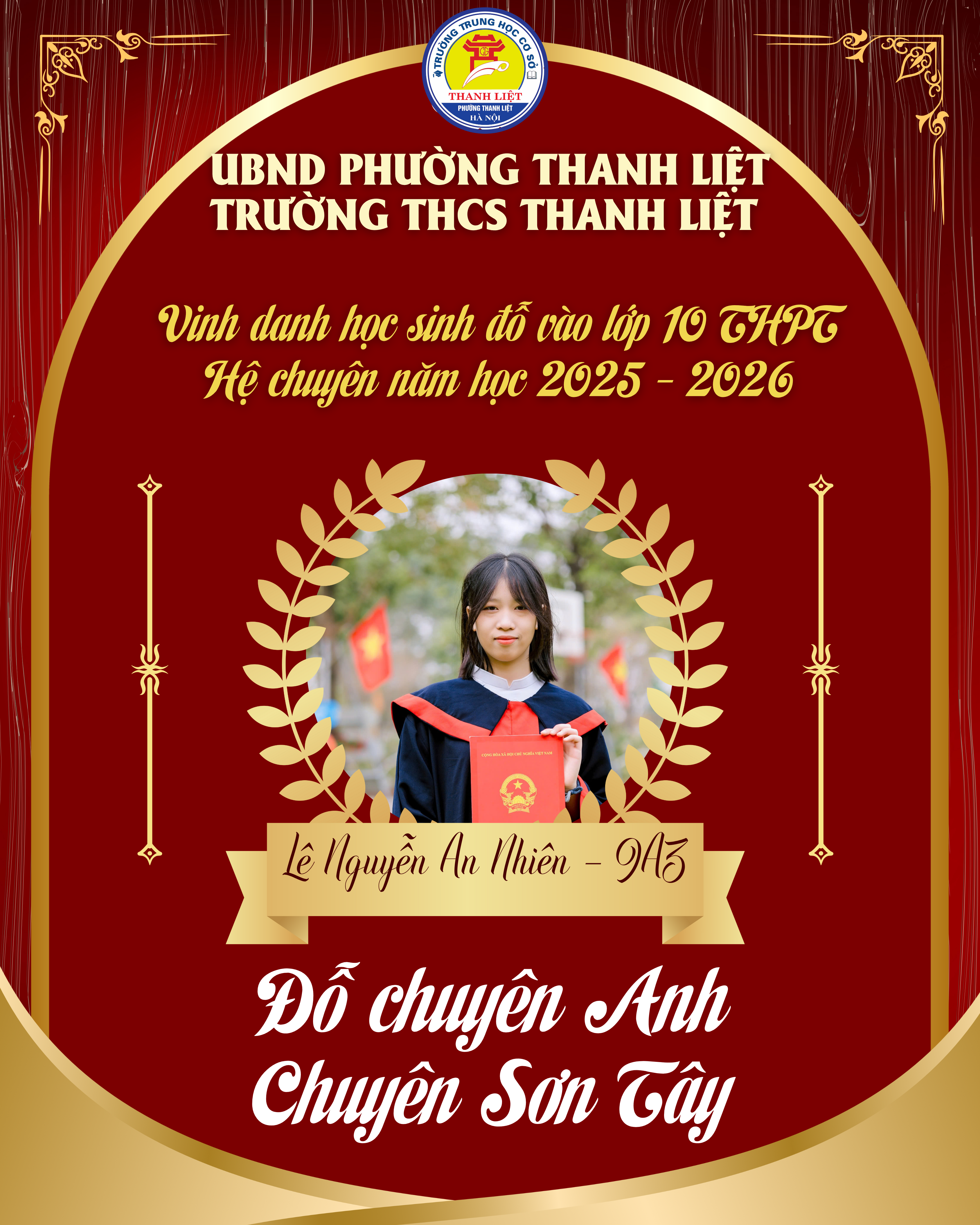 🔥 🔥 🔥 TIN VUI NỐI TIẾP TIN VUI! Nhà trường chúc mừng các em học sinh đã xuất sắc đỗ vào trường THPT Chuyên! Đây là một thành tích đáng tự hào, đánh dấu sự nỗ lực và cố gắng không ngừng của em trong suốt thời gian học tập. 🥰 🥰 🥰
