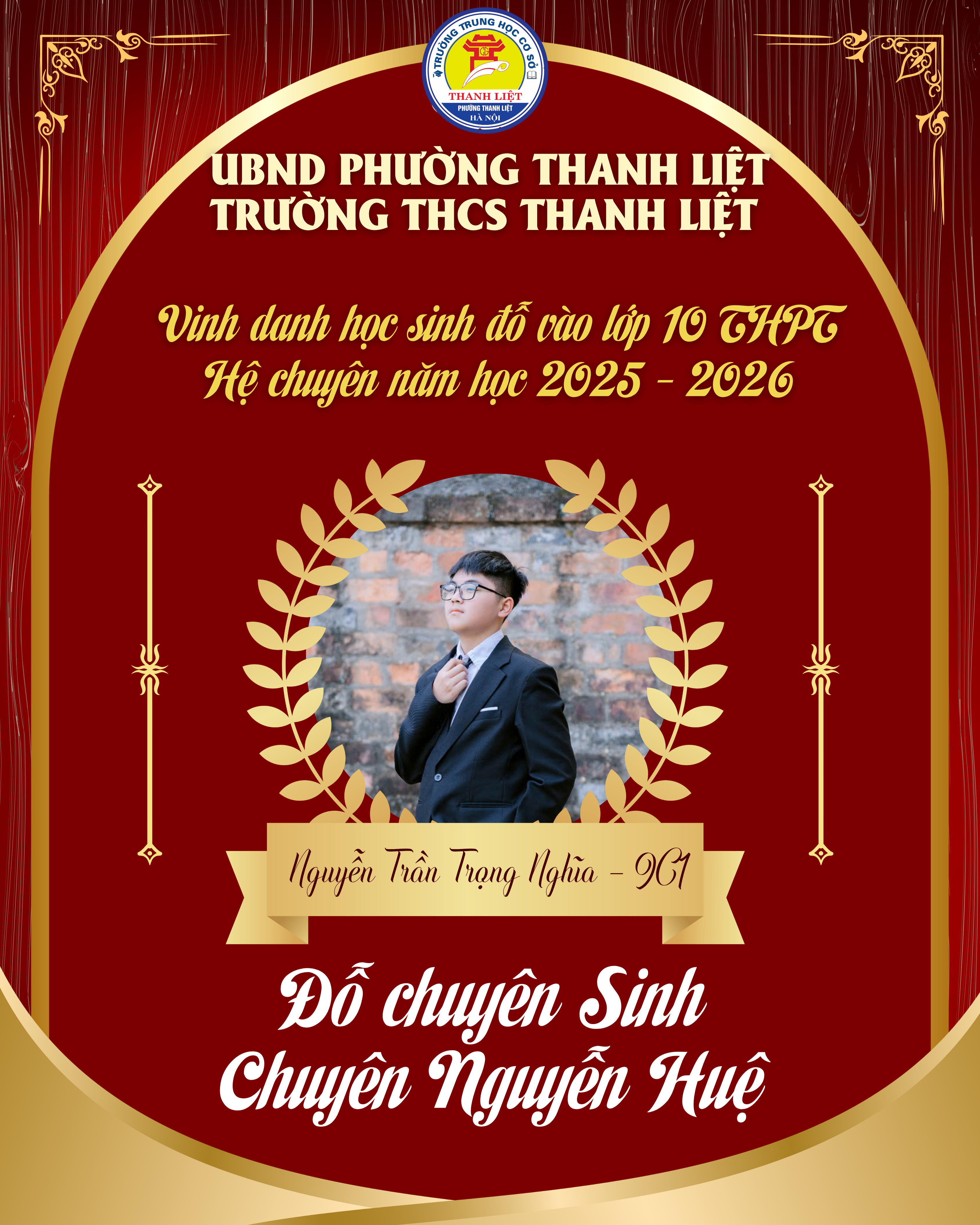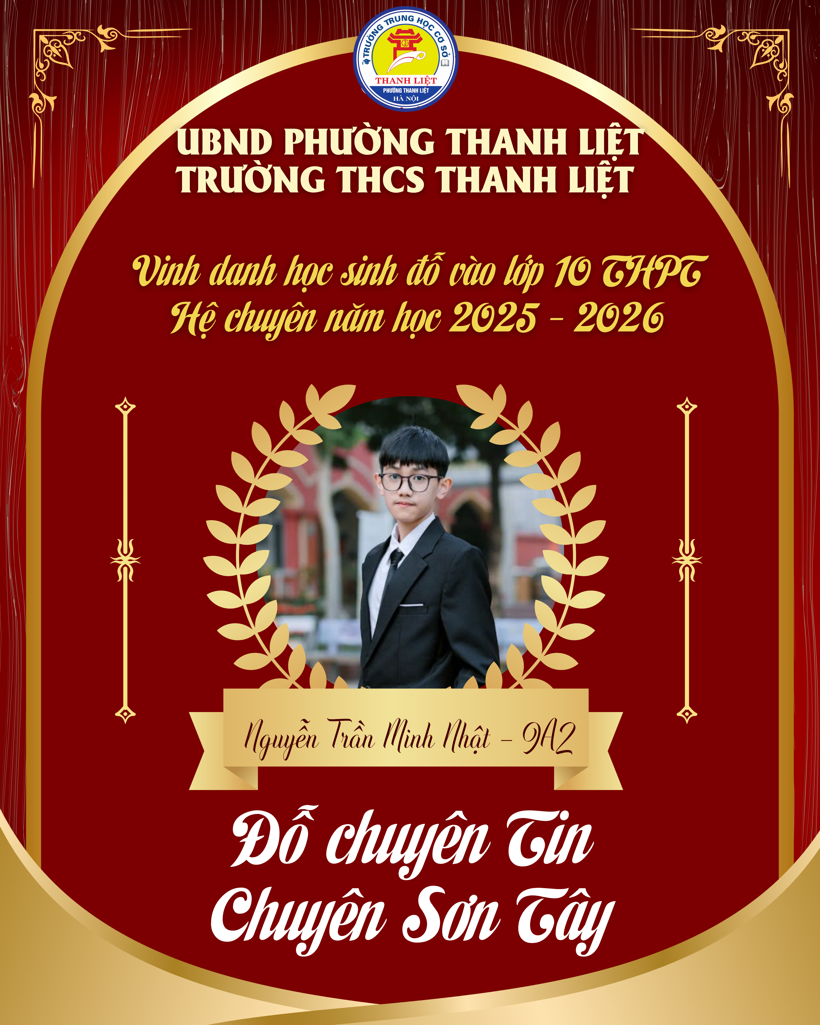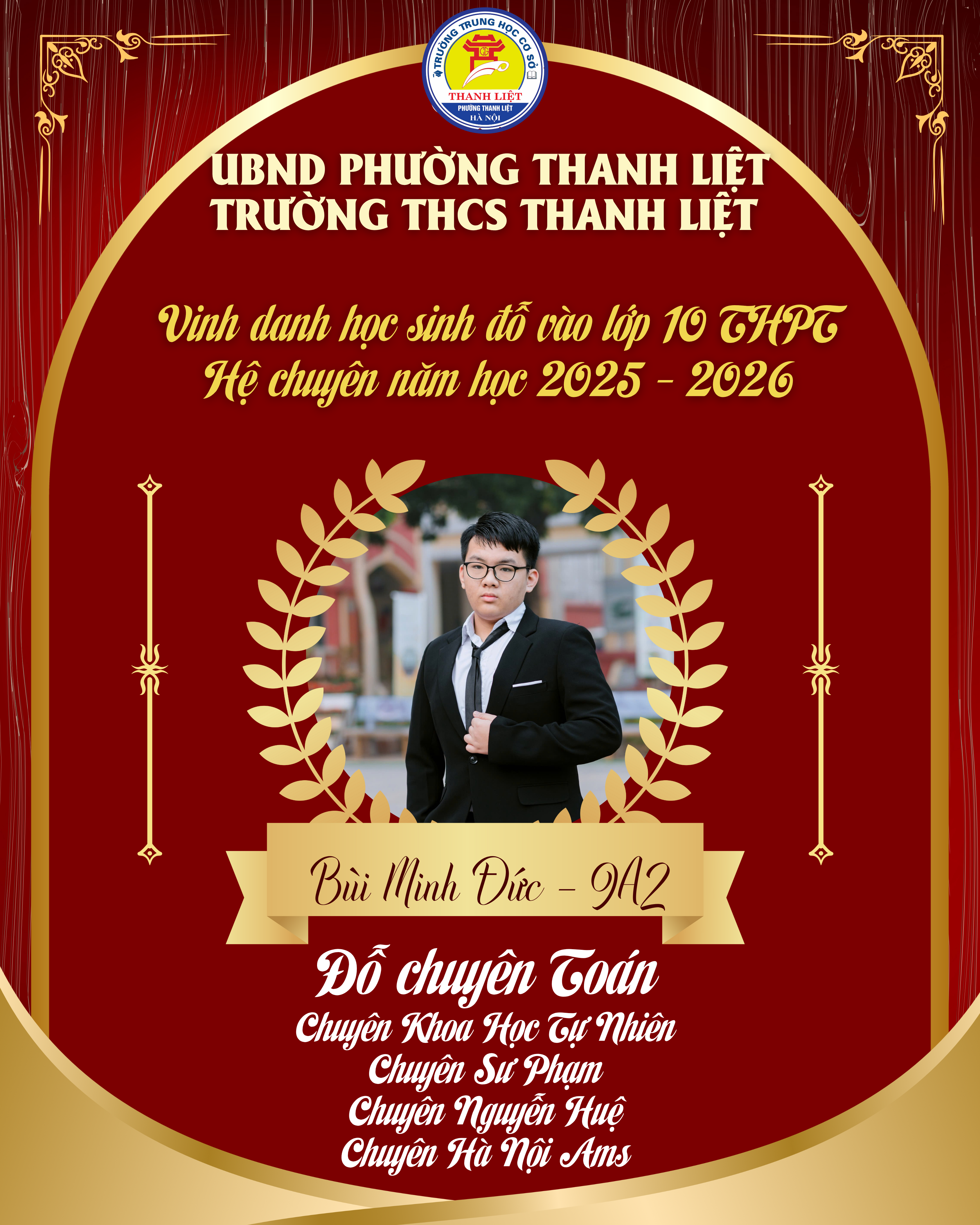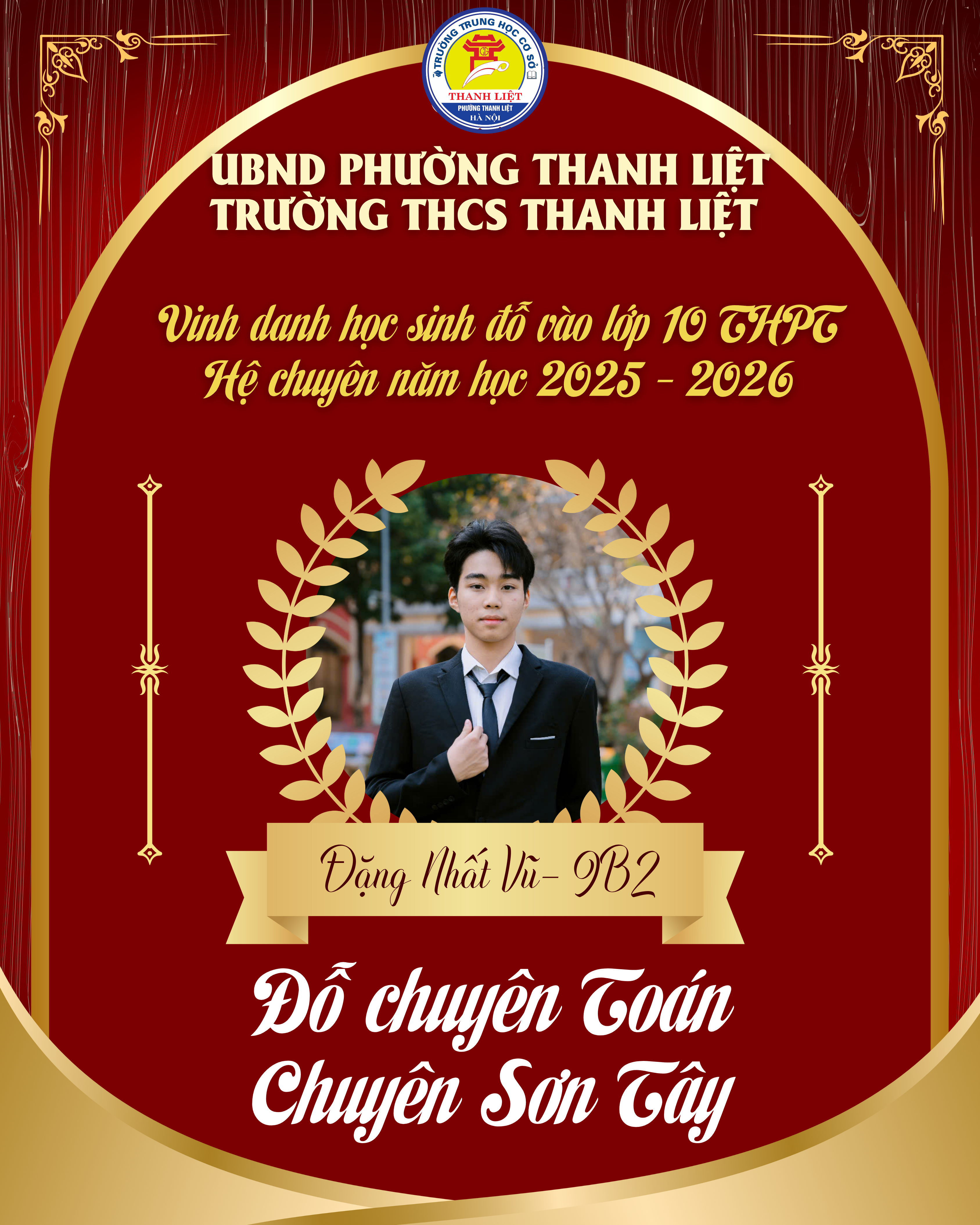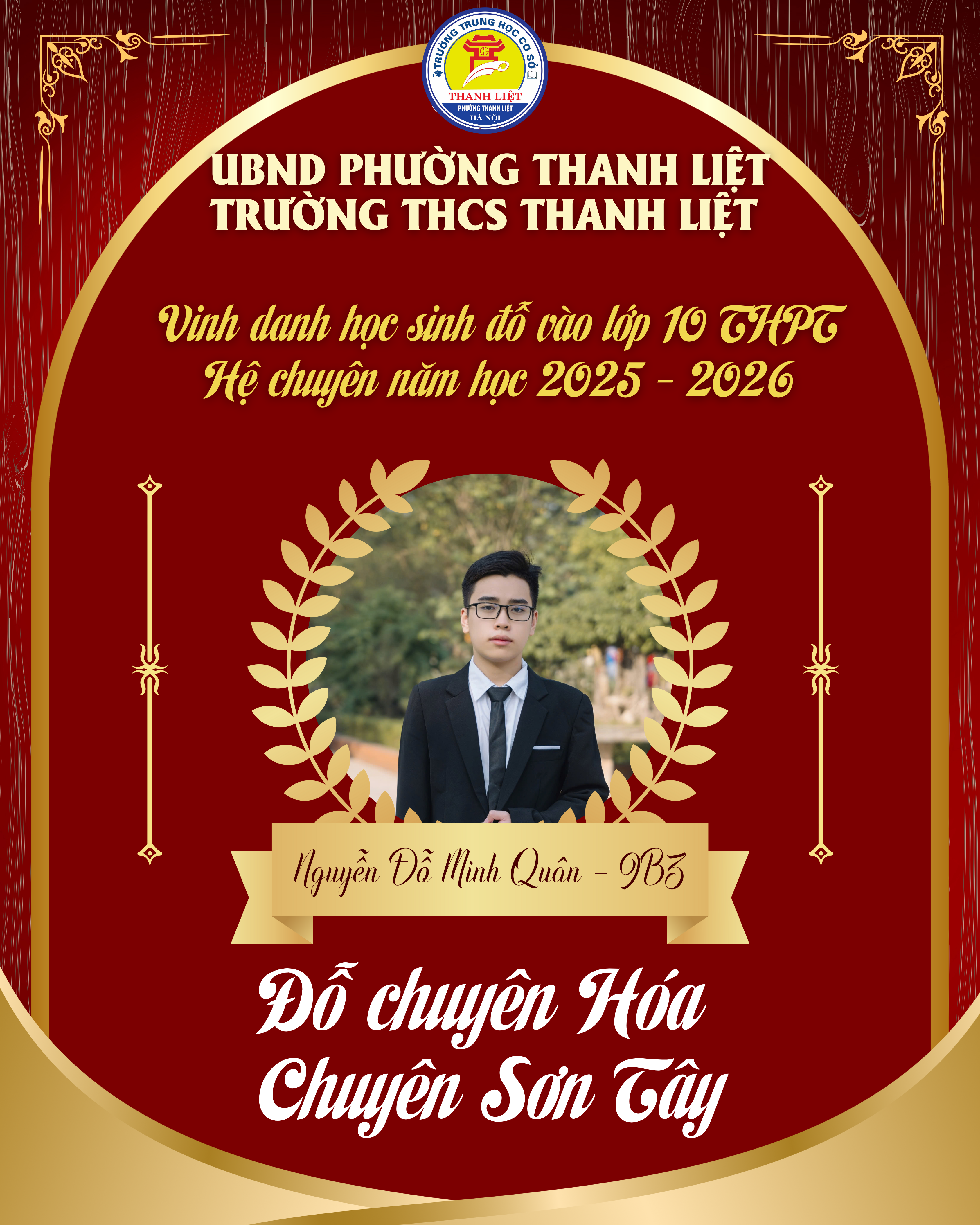 🔥 🔥 🔥 TIN VUI NỐI TIẾP TIN VUI! Nhà trường chúc mừng các em học sinh đã xuất sắc đỗ vào trường THPT Chuyên! Đây là một thành tích đáng tự hào, đánh dấu sự nỗ lực và cố gắng không ngừng của em trong suốt thời gian học tập. 🥰 🥰 🥰