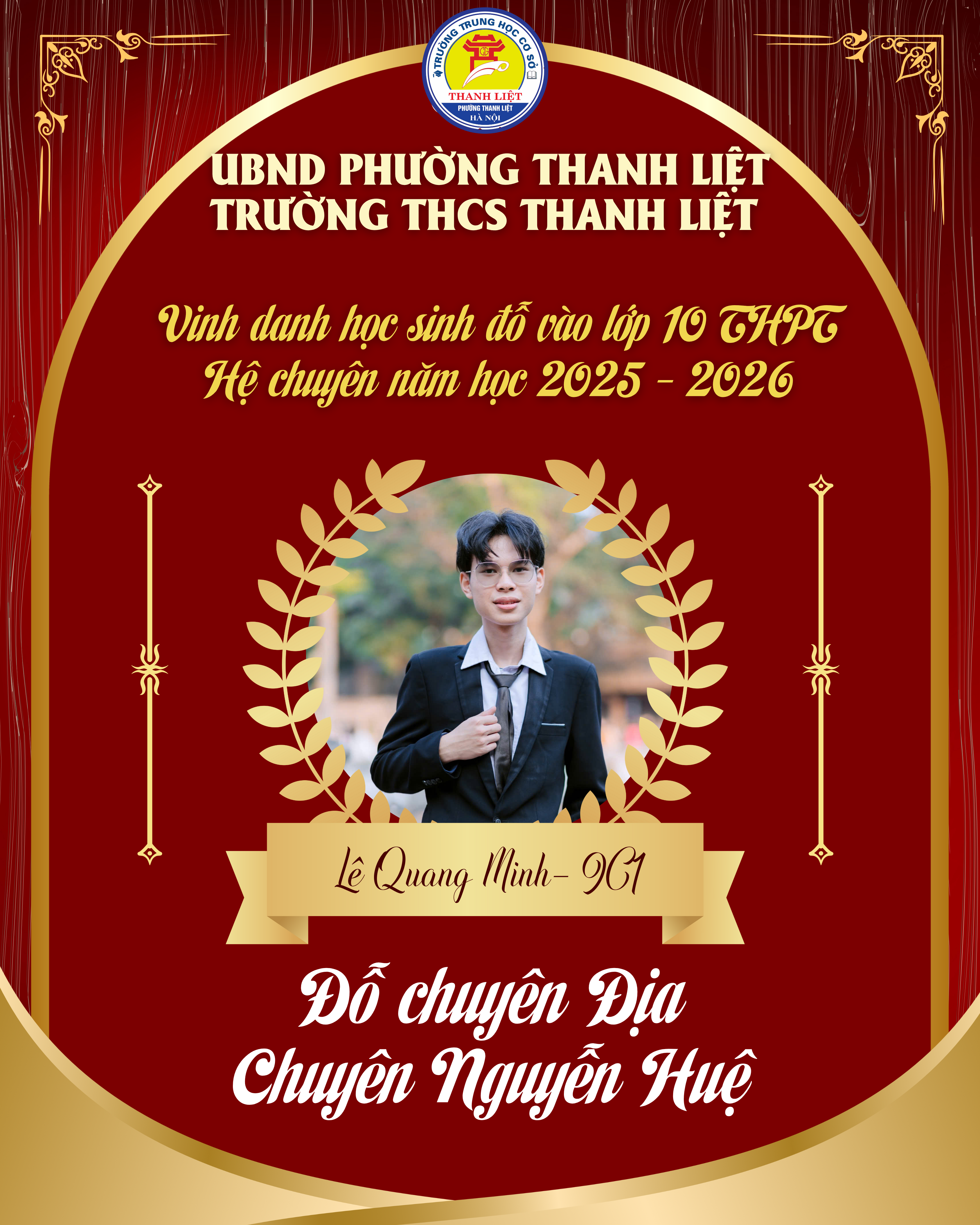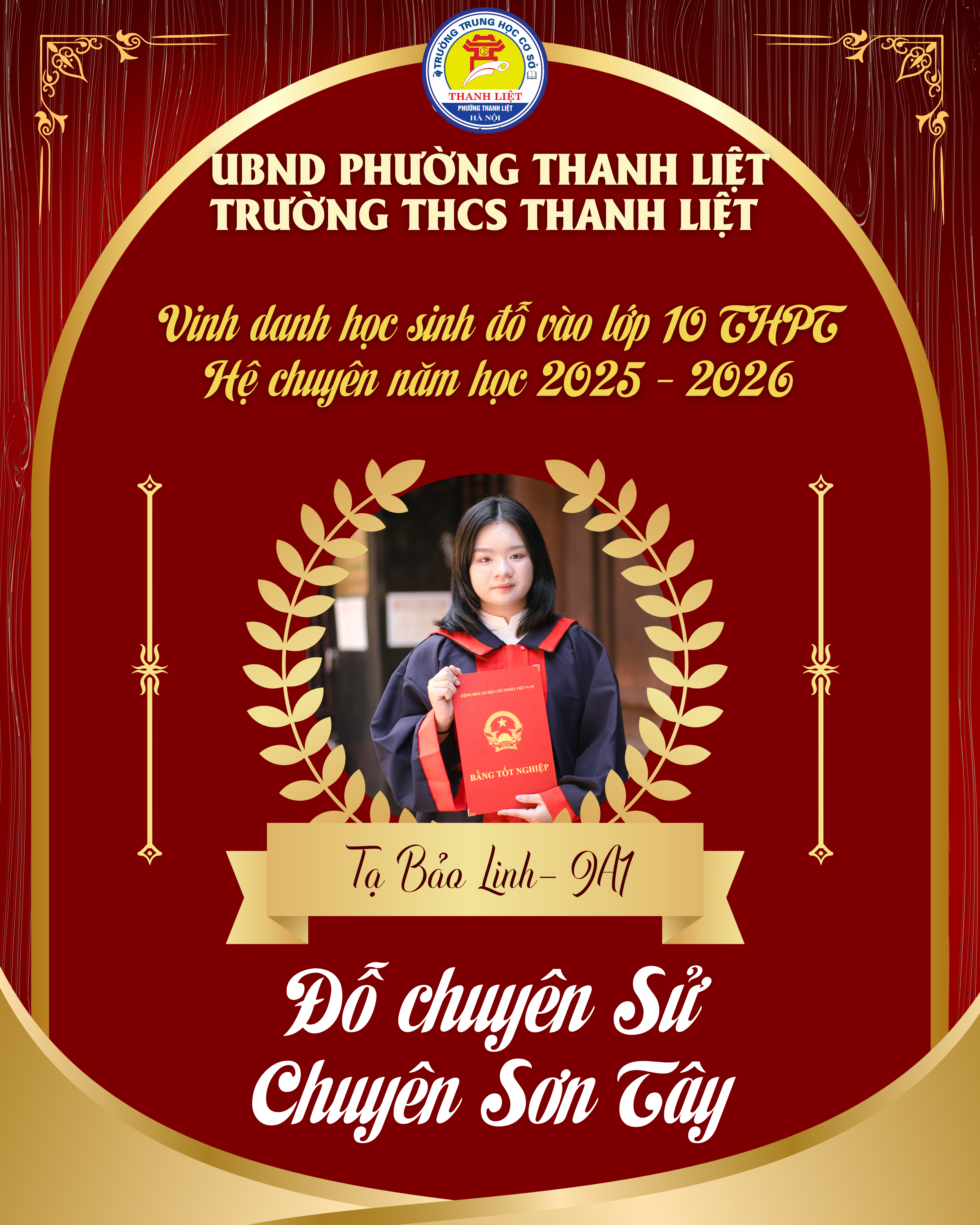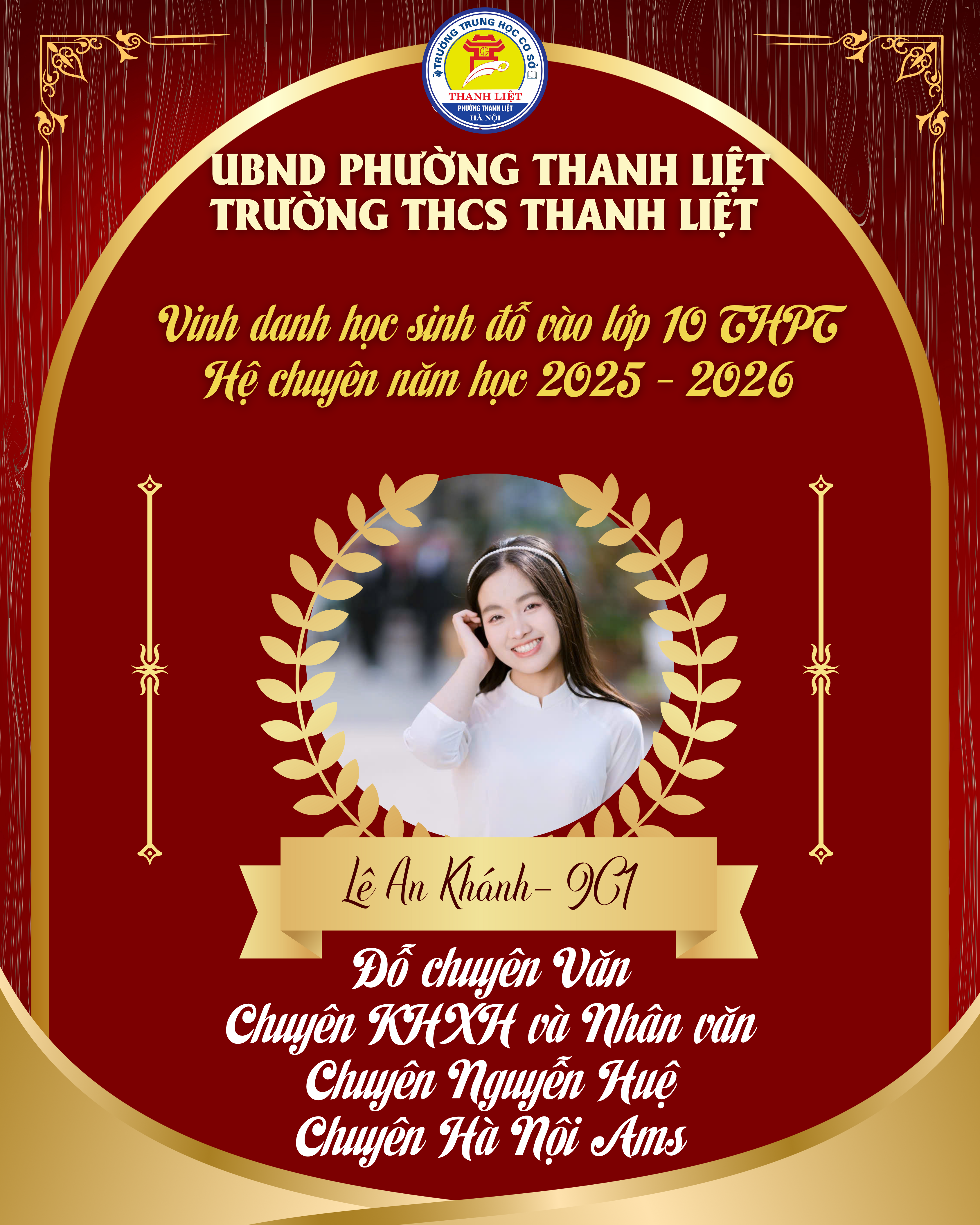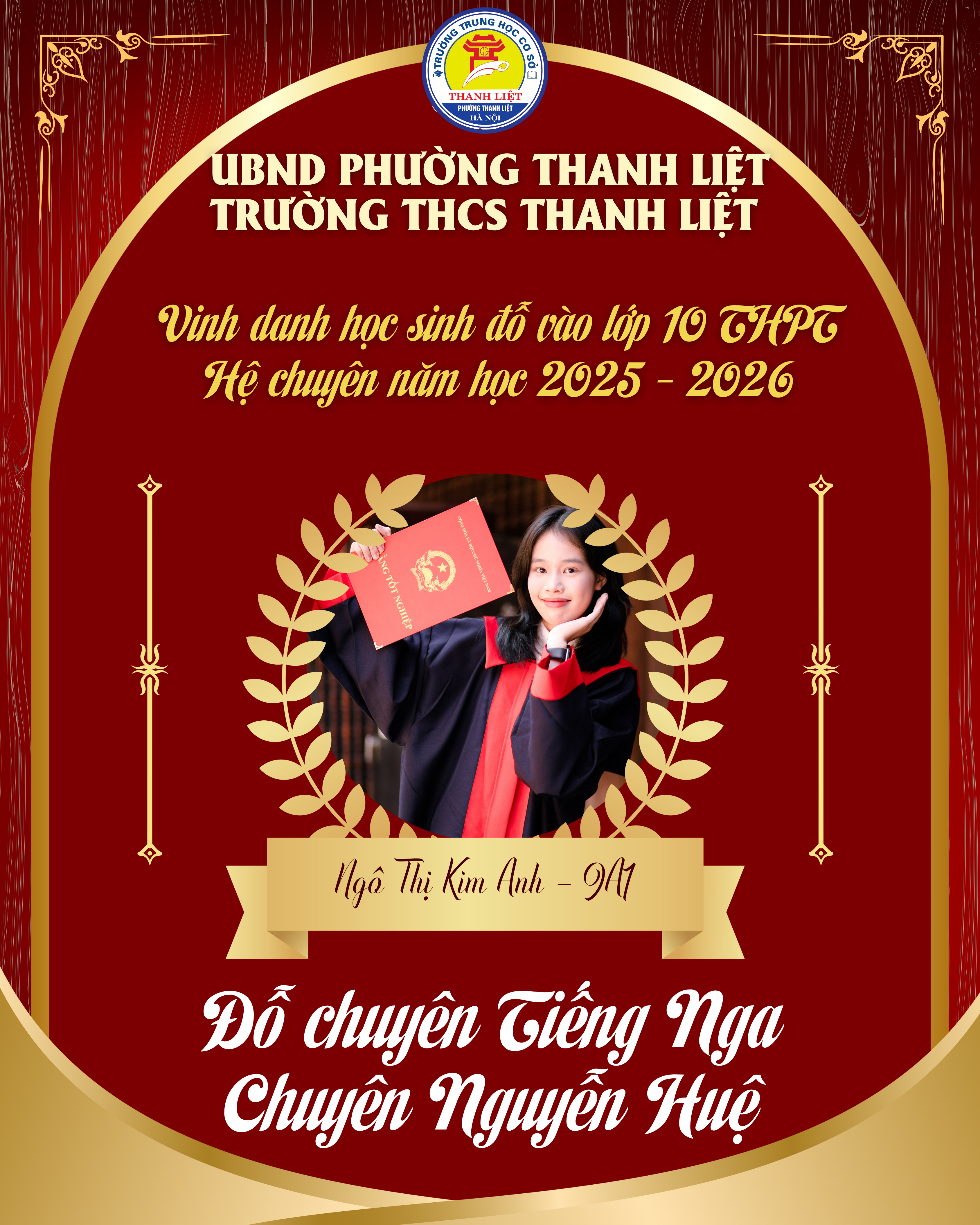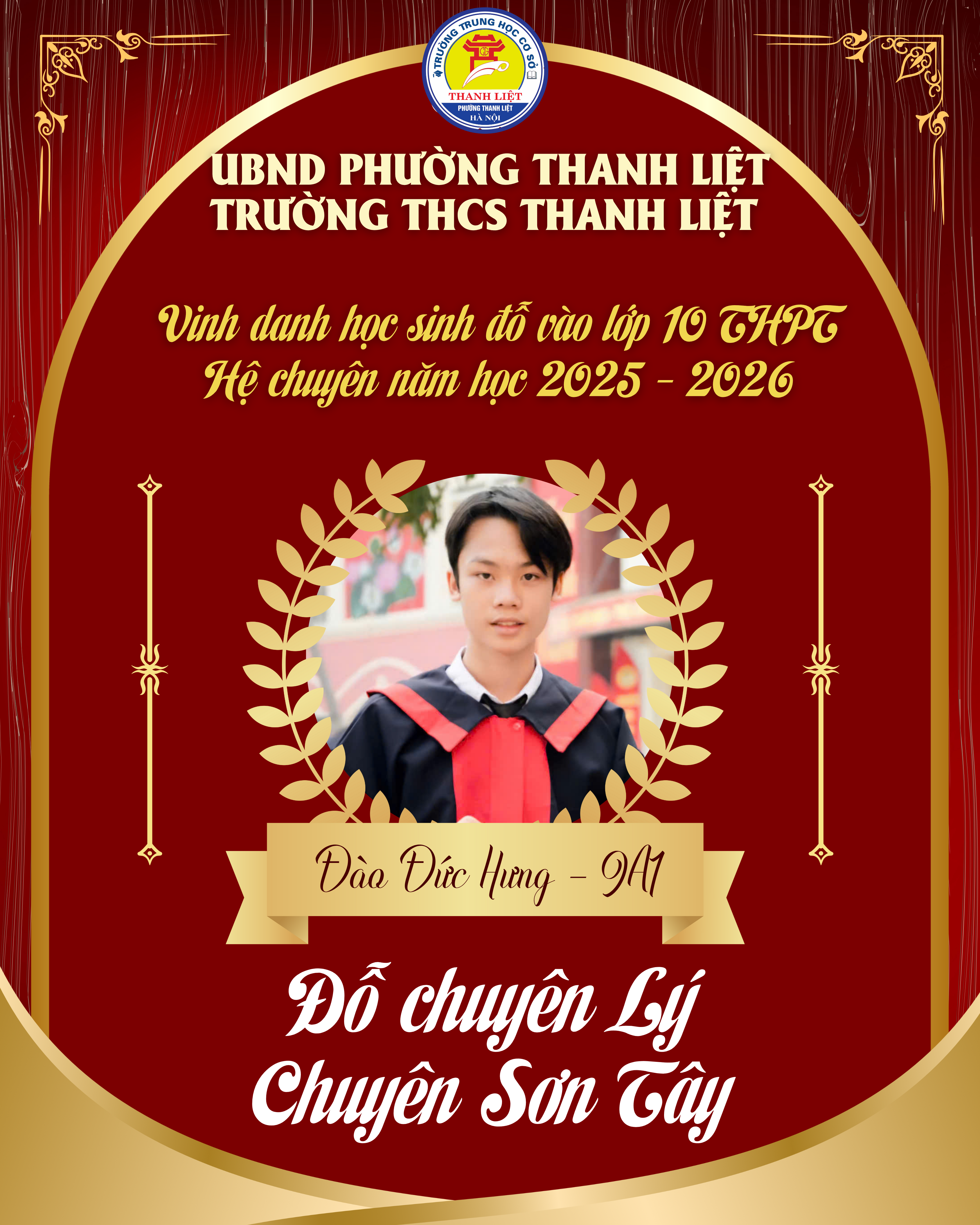🔥 🔥 🔥 TIN VUI NỐI TIẾP TIN VUI! Nhà trường chúc mừng các em học sinh đã xuất sắc đỗ vào trường THPT Chuyên! Đây là một thành tích đáng tự hào, đánh dấu sự nỗ lực và cố gắng không ngừng của em trong suốt thời gian học tập. 🥰 🥰 🥰