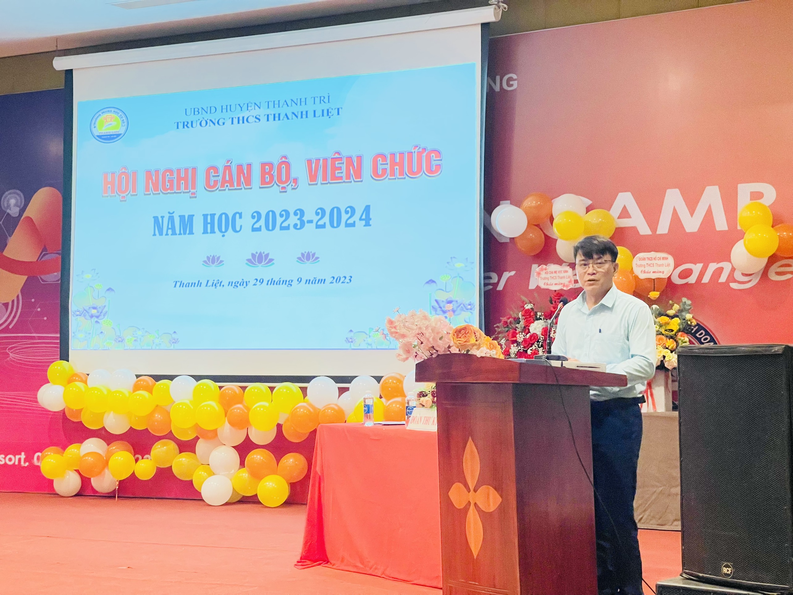 *Hội nghị cán bộ, giáo viên, nhân viên năm học 2023 - 2024 của trường THCS Thanh Liệt đã thành công tốt đẹp! Hội nghị đã thông qua Nghị quyết đồng thời phát động thi đua trong toàn thể CB-GV-NV phát huy những thành tích đã đạt được, phấn đấu thực hiện thắng lợi nhiệm vụ năm học 2023-2024, tích cực đóng góp công sức, trí tuệ xây dựng chất lượng nhà trường ngày càng phát triển
