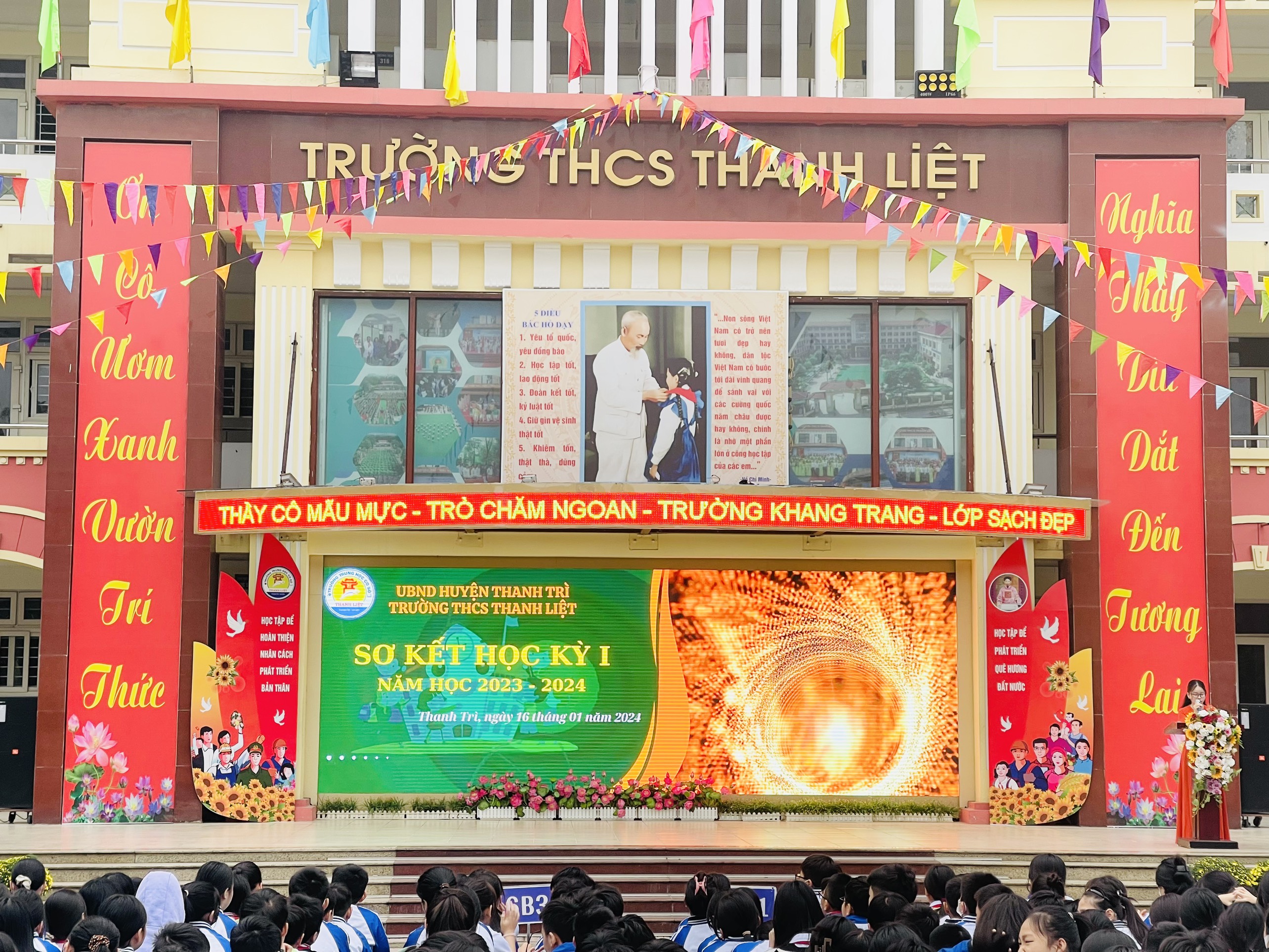 Trong không khí vui tươi của nhân dân cả nước chào mừng năm mới 2024, sáng ngày 16/01/2024, thầy và trò trường THCS Thanh Liệt tổ chức Lễ sơ kết học kì I, năm học 2023 -2024. Lễ sơ kết học kỳ I nhằm đánh giá lại nửa chặng đường của một năm học mà thầy và trò nhà trường đã, đang và tiếp tục nỗ lực phấn đấu, thực hiện tốt các nhiệm vụ trọng tâm của năm học.