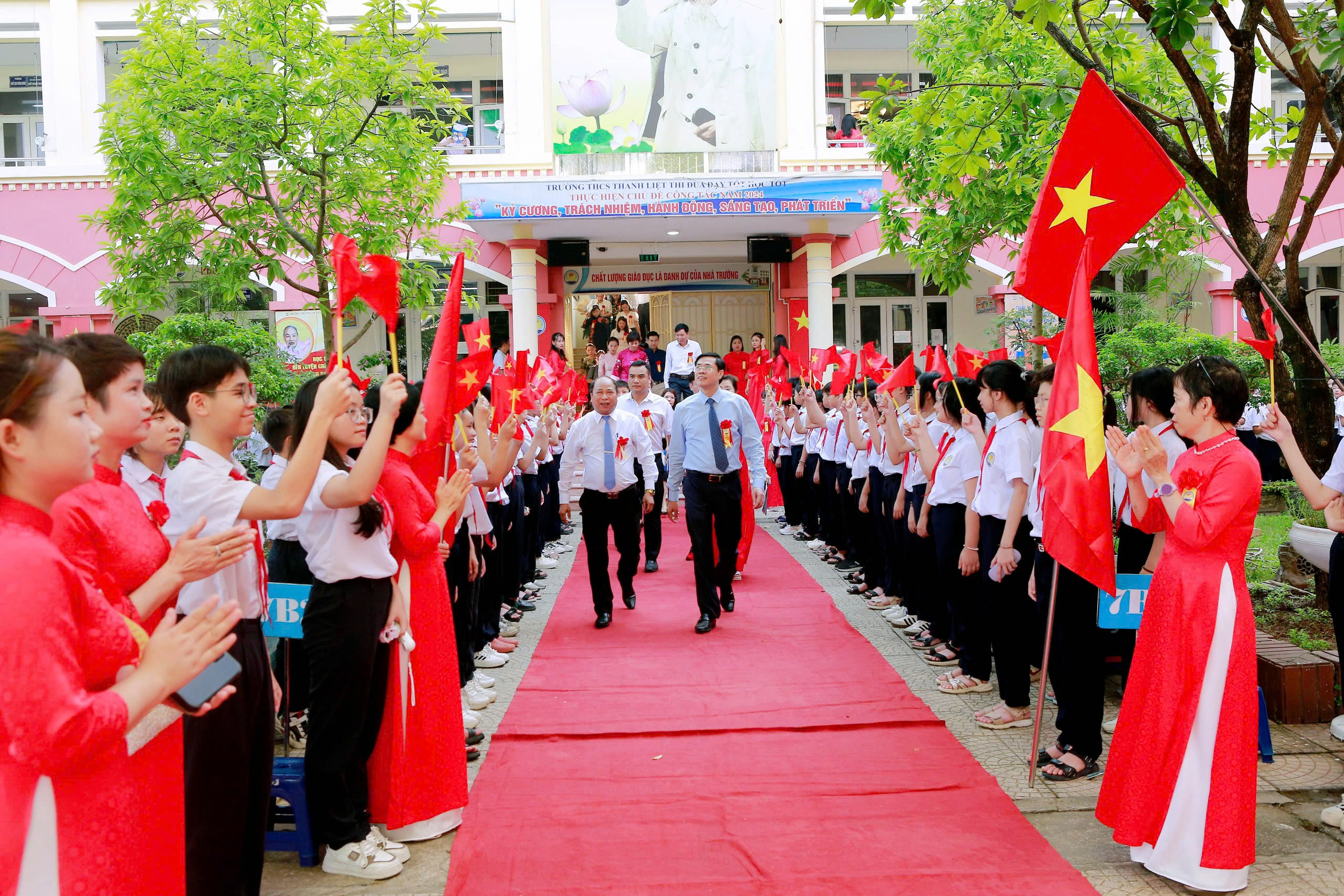 Cùng toàn thể các thầy cô giáo đang công tác và giảng dạy tại trường, đặc biệt là sự có mặt của hơn 2000 em học sinh của trường THCS Thanh Liệt.