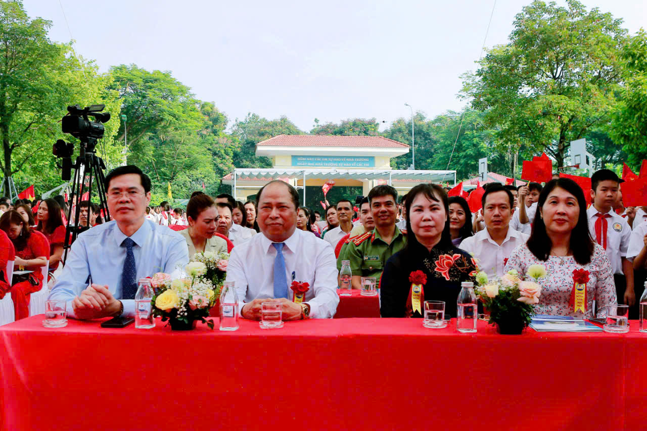 * Tại lễ khai giảng, đại diện nhà trường đã trân trọng đọc thư của Tổng bí thư, Chủ tịch nước Tô Lâm gửi cán bộ, giáo viên, học sinh nhân dịp khai trường. Cũng tại buổi lễ, cô giáo Trần Mai Hương – Bí thư chi bộ, Hiệu trưởng nhà trường phát biểu khai giảng năm học mới thể hiện sự quyết tâm của thầy và trò sẽ quyết tâm được nhiều thắng lợi mới trong năm học 2024-2025. Điều đặc biệt hơn trong buổi lễ khai giảng, cũng là niềm vinh dự và tự hào của nhà trường khi ông Nguyễn Xuân Phong -Phó bí thư huyện ủy, Chủ tịch UBND huyện đánh tiếng trống khai trường hứa hẹn nhiều điều may mắn và tốt đẹp đến với các thầy giáo, cô giáo và các em học sinh nhà trường.