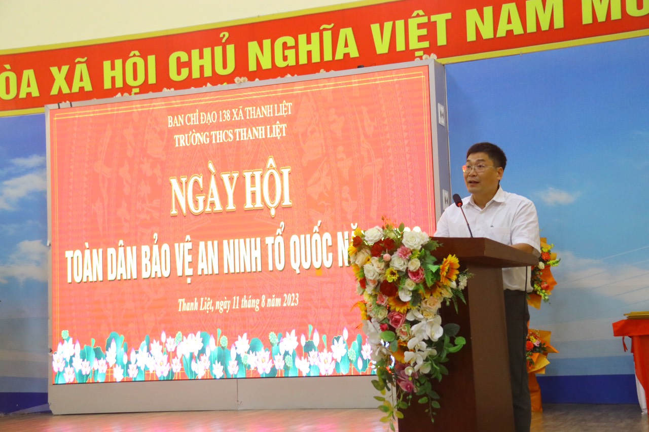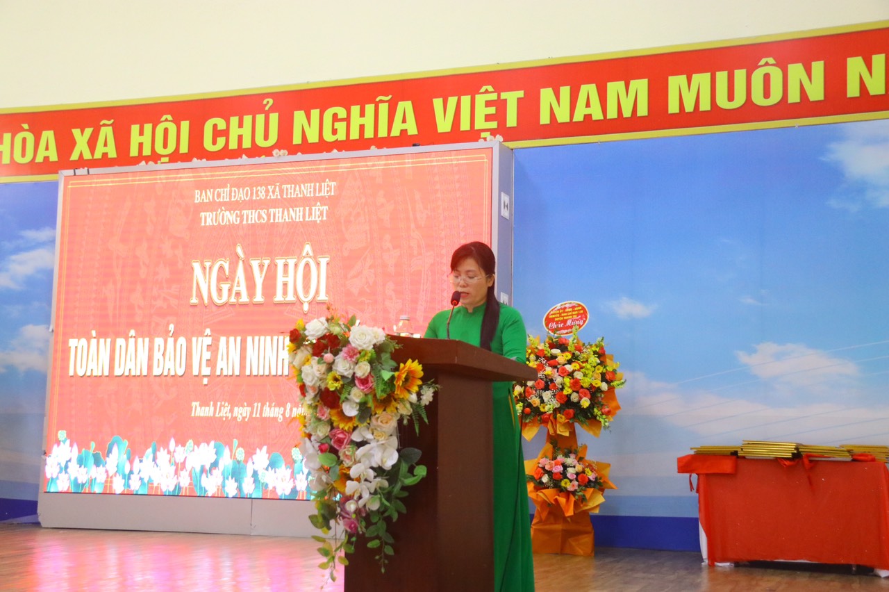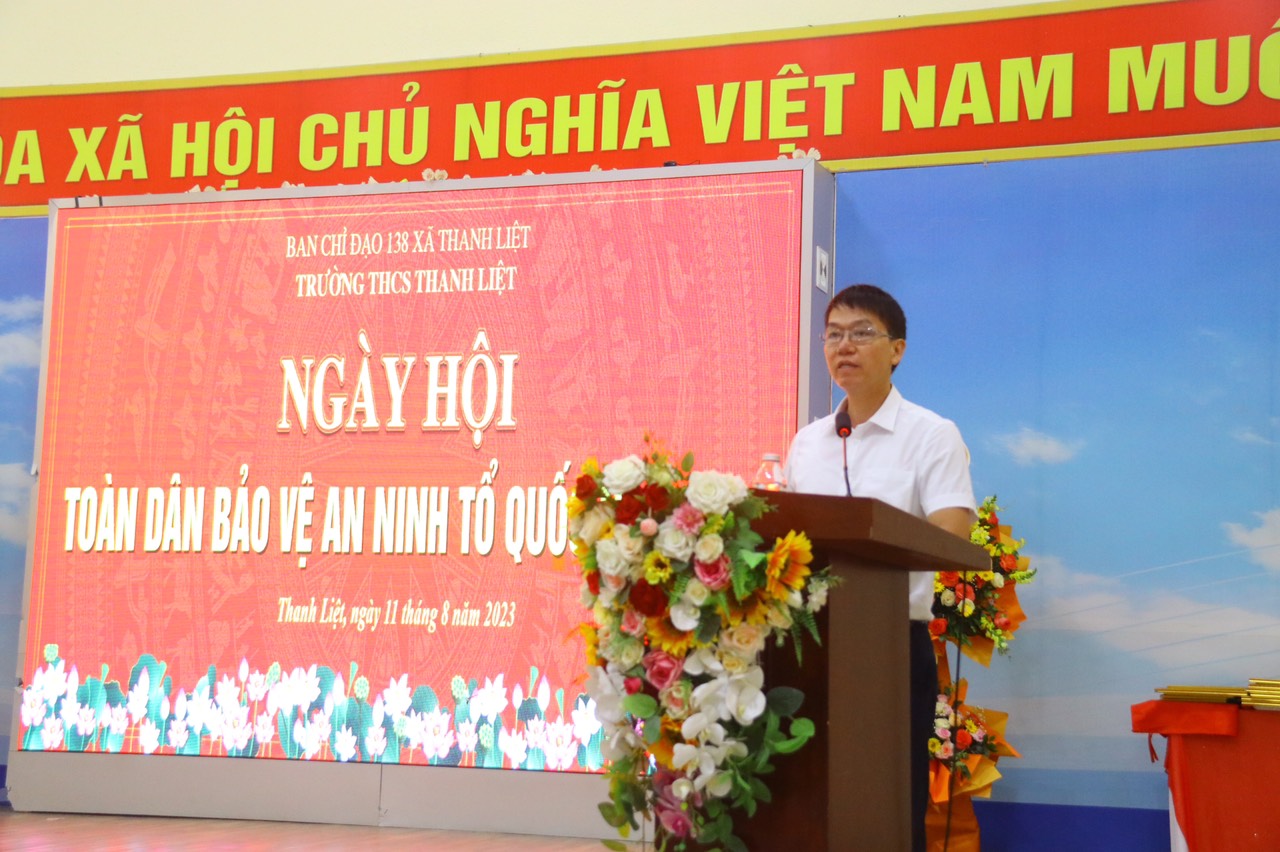 Phát biểu tại Ngày hội, đồng chí Nguyễn Văn Hưởng, Chủ tịch UBND xã Thanh Liệt - trưởng ban chỉ đạo 138 huyện đánh giá cao kết quả đạt được của trường THCS Thanh Liệt trong tuyên truyền, vận động và phát động triển khai Phong trào toàn dân bảo vệ an ninh Tổ quốc; khẳng định ý nghĩa quan trọng của phong trào đối với an ninh trật tự tại nhà trường cũng như địa phương; qua phong trào khơi dậy được trách nhiệm của mỗi cán bộ giáo viên, học sinh và người dân trong phong trào “Toàn dân bảo vệ An Ninh tổ quốc ", huy động sức mạnh của toàn dân để phong trào phát triển rộng khắp, góp phần giữ vững ANTT, tạo môi trường ổn định cho phát triển kinh tế - xã hội của địa phương.