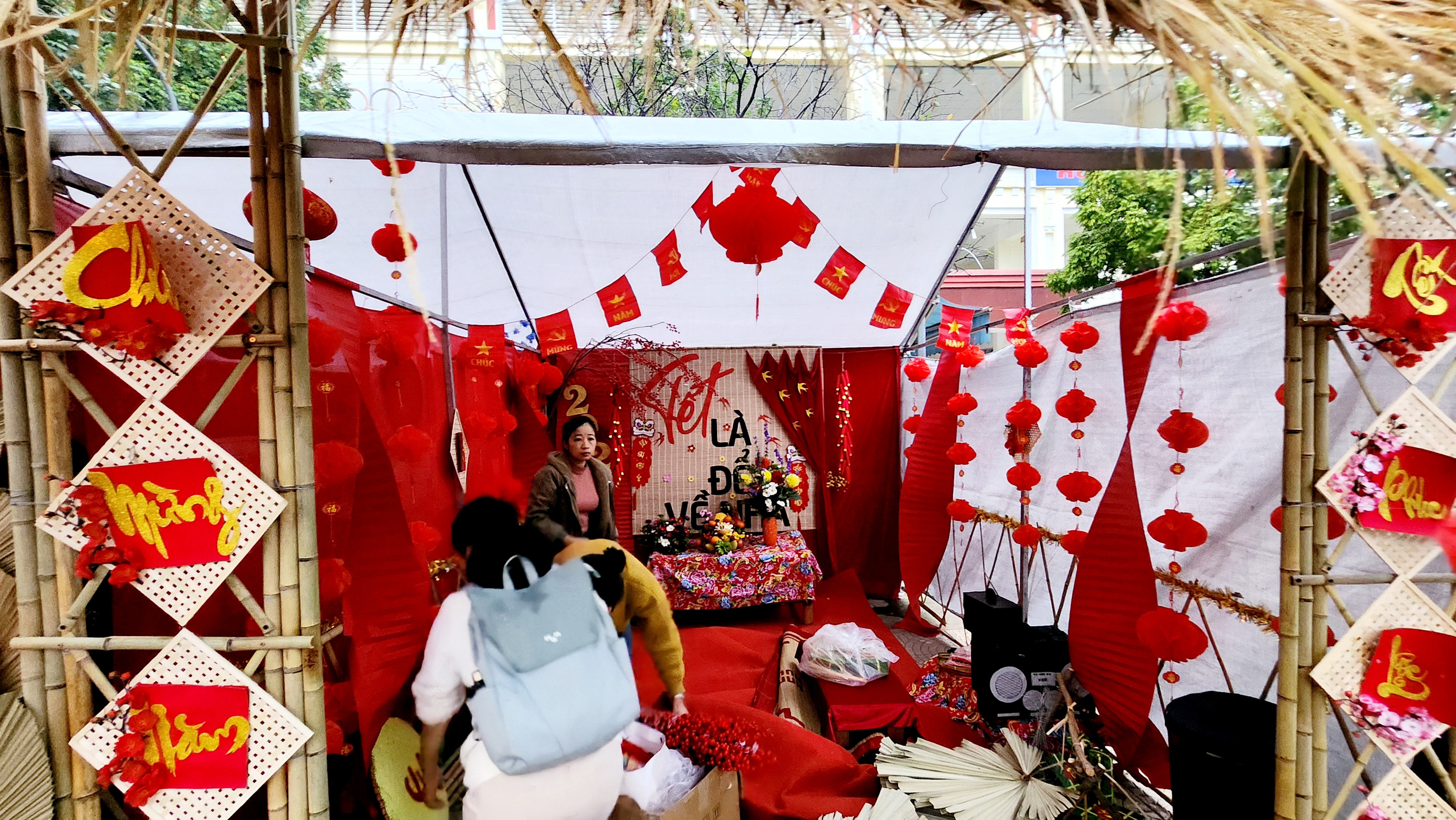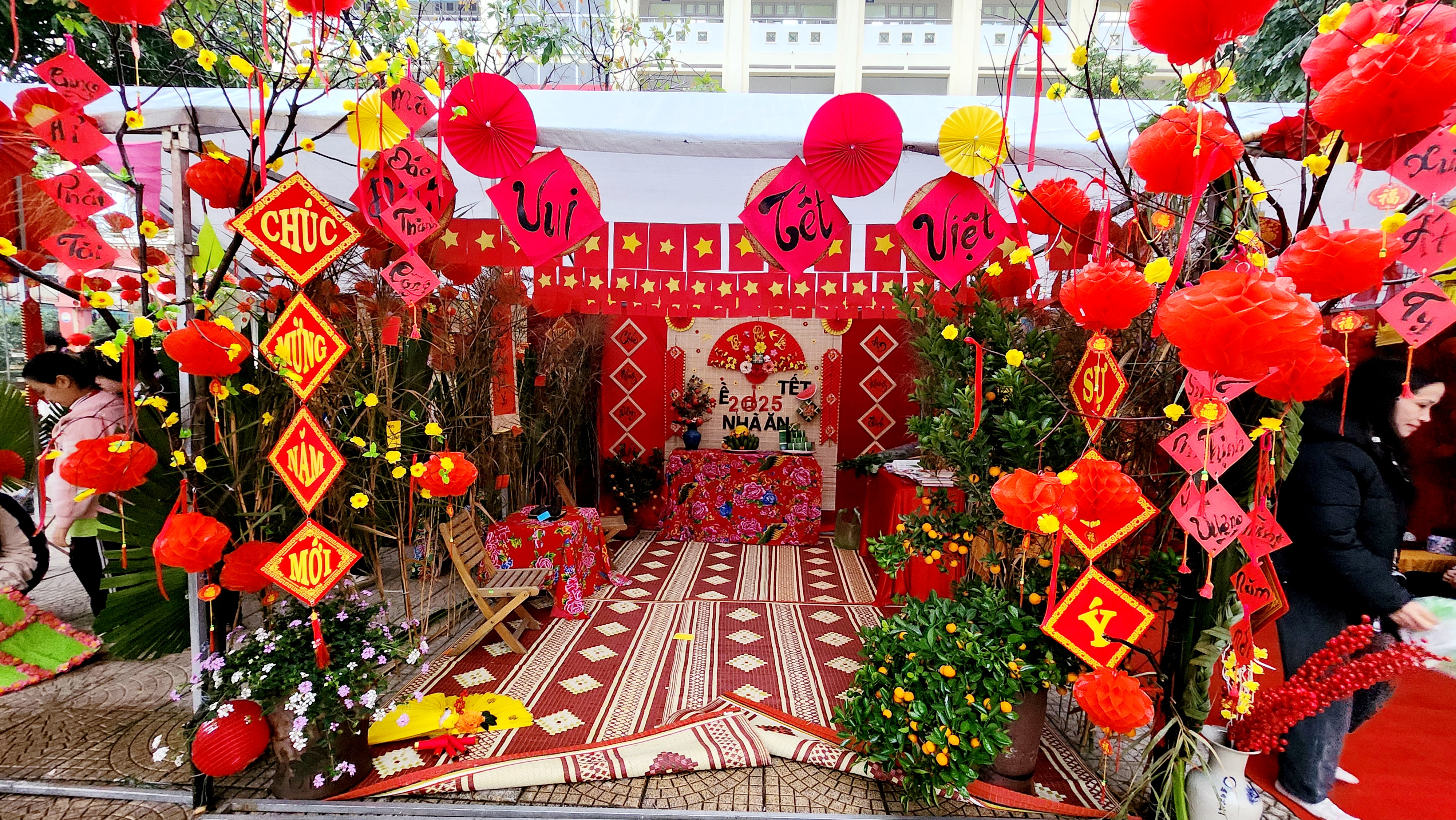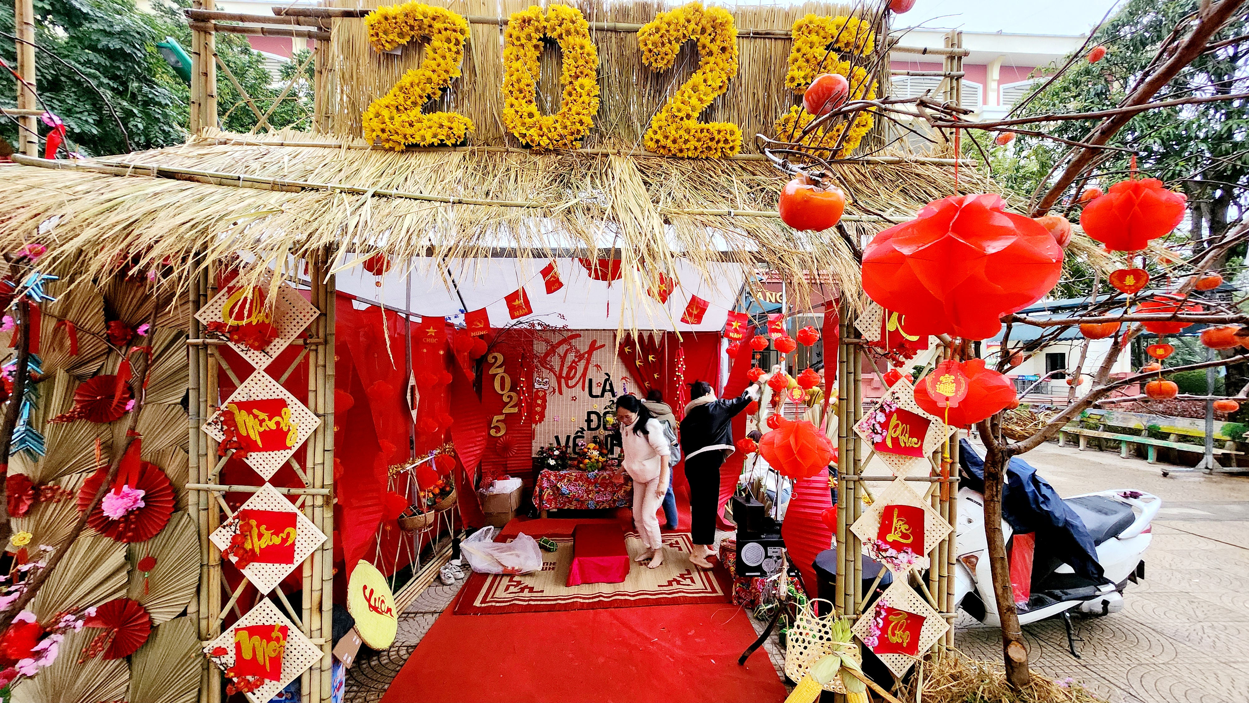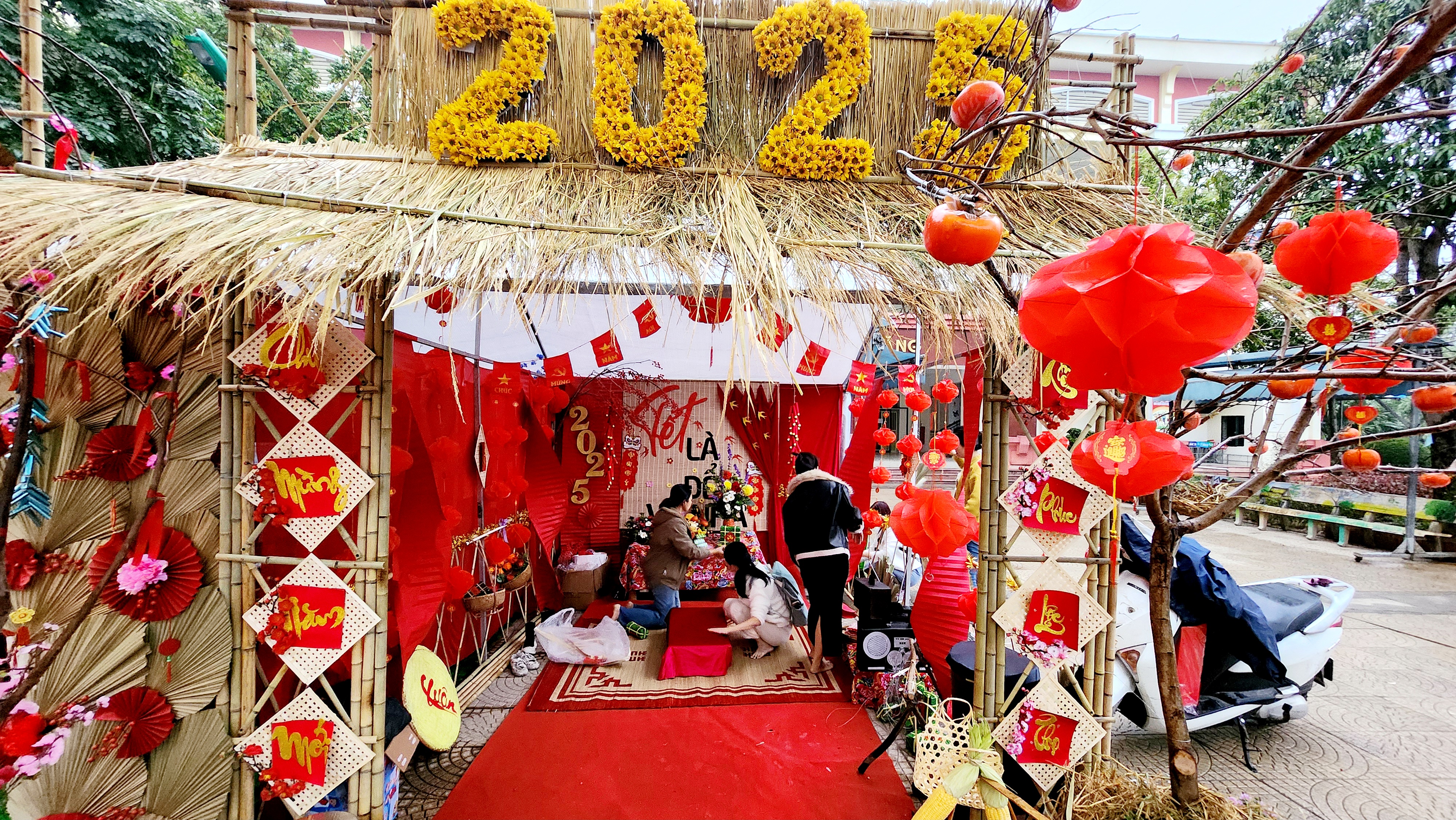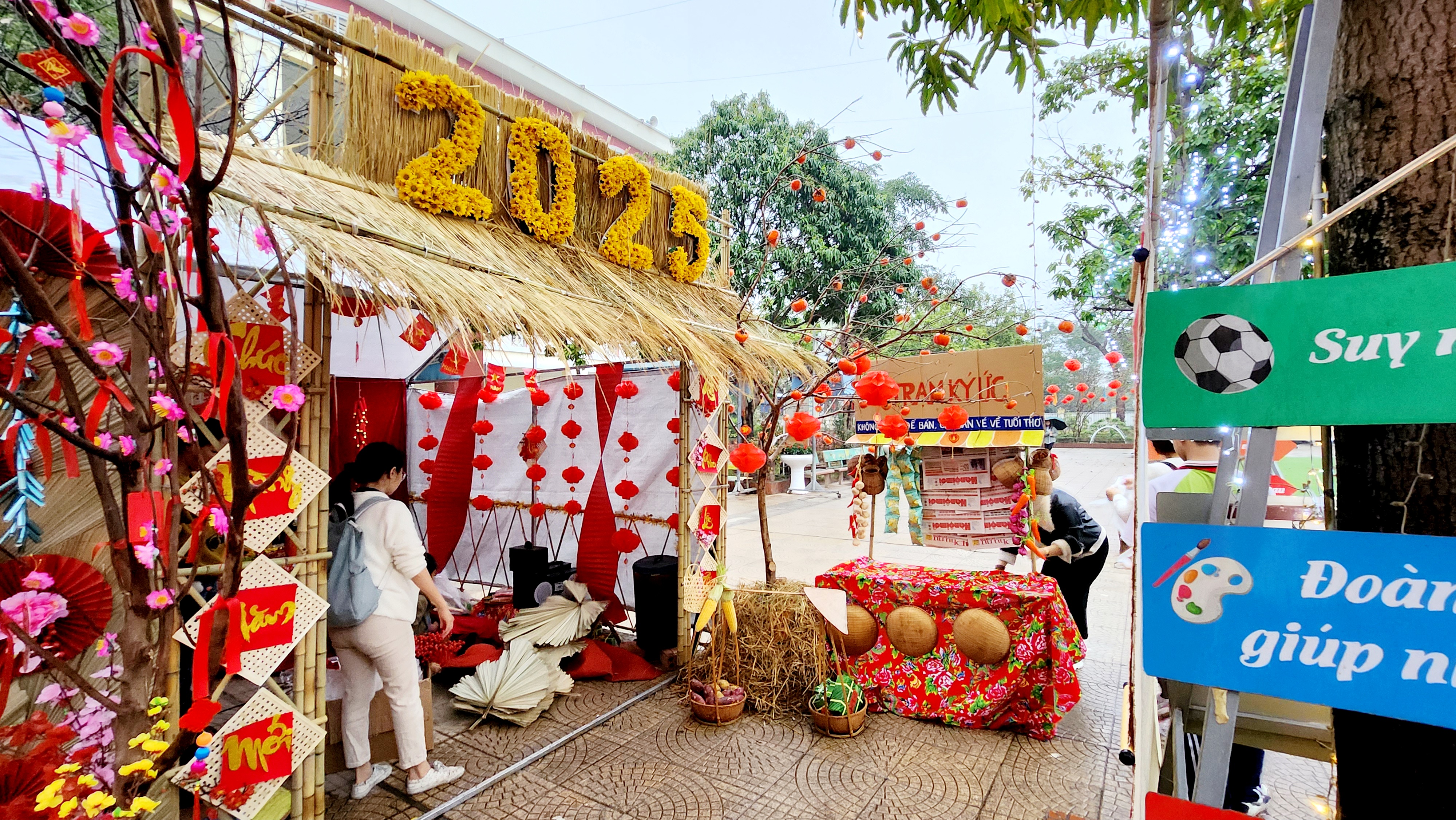 Cũng trong ngày hội xuân, các em học sinh còn được tham gia cùng các thầy cô giáo và các nghệ nhân trong hoạt động gói bánh chưng truyền thống, trang trí cành đào ngày tết.
