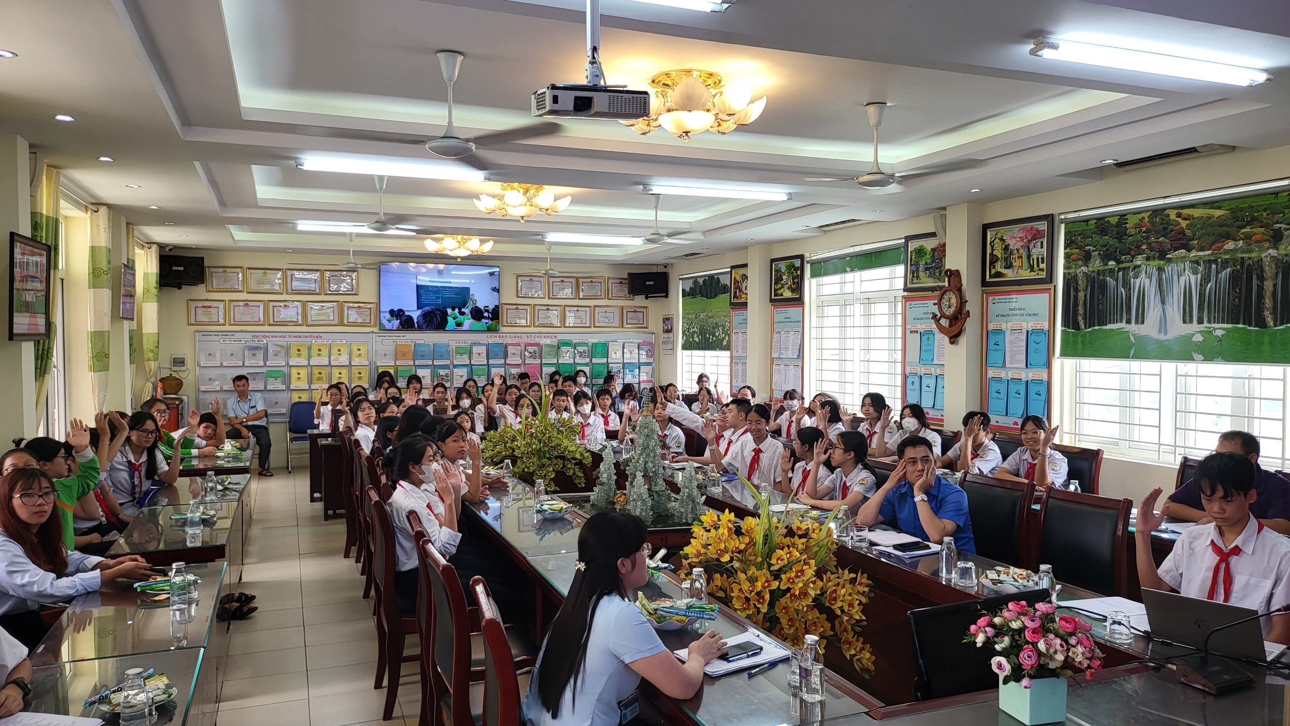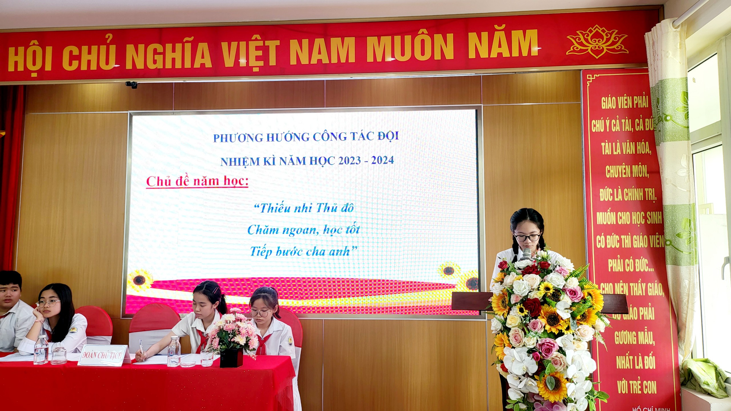 Cùng các thầy cô giáo đại diện chi đoàn trường và các em đội viên tiêu biểu đại diện cho đội viên 45 chi đội trong Liên đội đã về dự đông đủ.