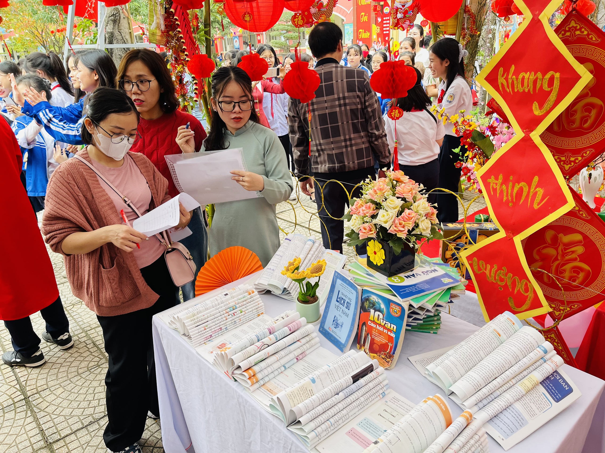 *Sự háo hức, niềm vui hân hoan là những cảm xúc của thầy và trò trường THCS Thanh Liệt trong ngày hội đọc sách.