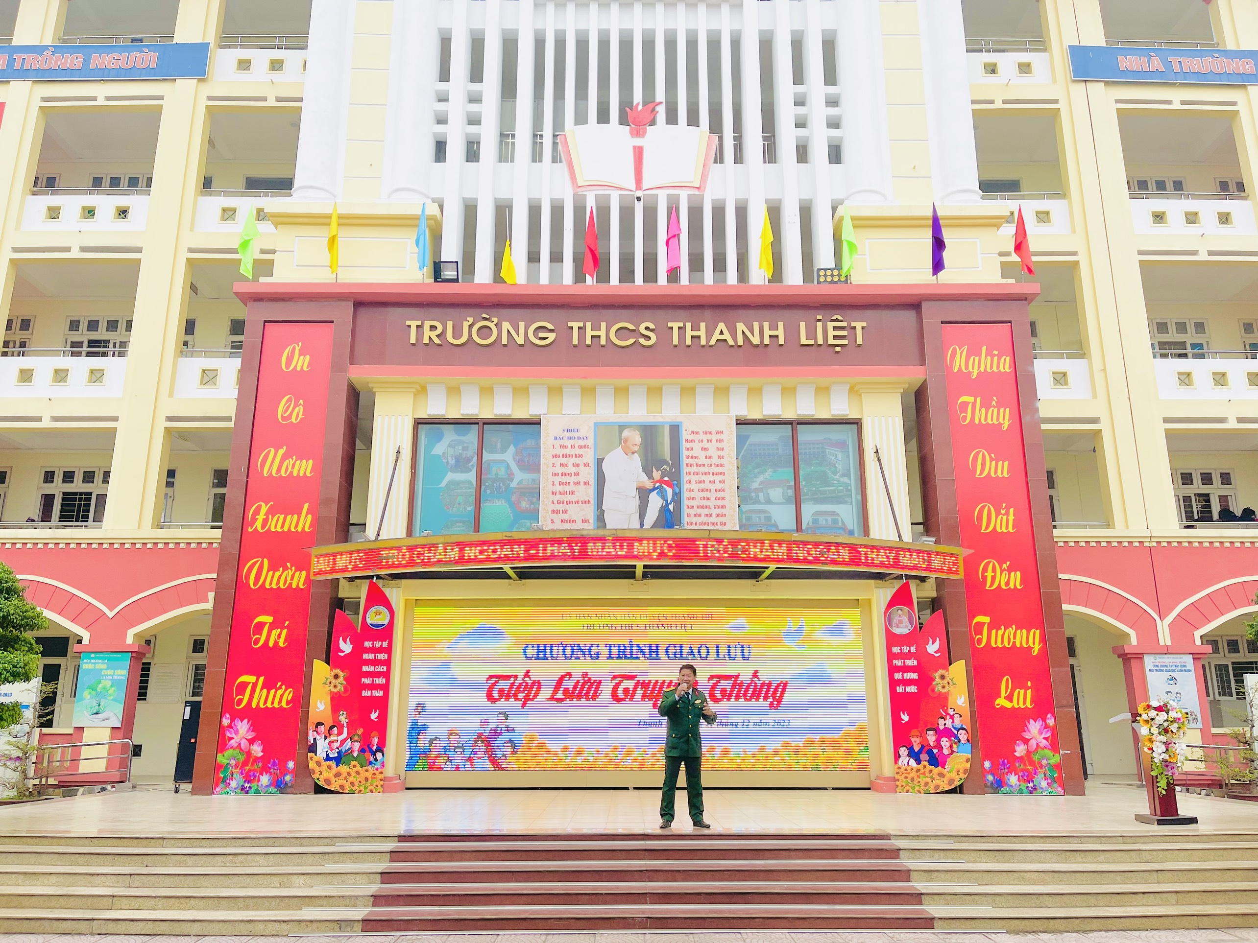 Hòa trong không khí chào mừng các ngày lễ lớn của Thủ đô, nhằm giáo dục truyền thống yêu nước, lòng tự hào dân tộc, truyền thống đấu tranh của quân và dân ta. Ngày 11/12/2023, trường THCS Thanh Liệt long trọng tổ chức chương trình sinh hoạt chủ điểm “Tiếp lửa truyền thống” chào mừng kỉ niệm 79 năm ngày thành lập QĐND Việt Nam (22/12/1944 – 22/12/2023)