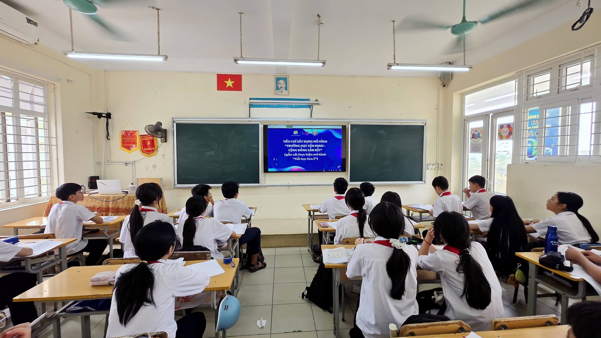 Không khí tại điểm cầu Trường THCS Chu Văn An diễn ra nghiêm túc nhưng không kém phần hào hứng, các em học sinh chăm chú theo dõi, tích cực tương tác và tiếp thu nhiều kiến thức bổ ích.