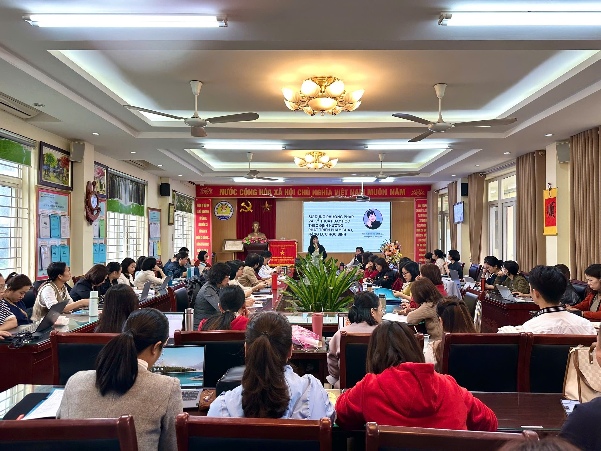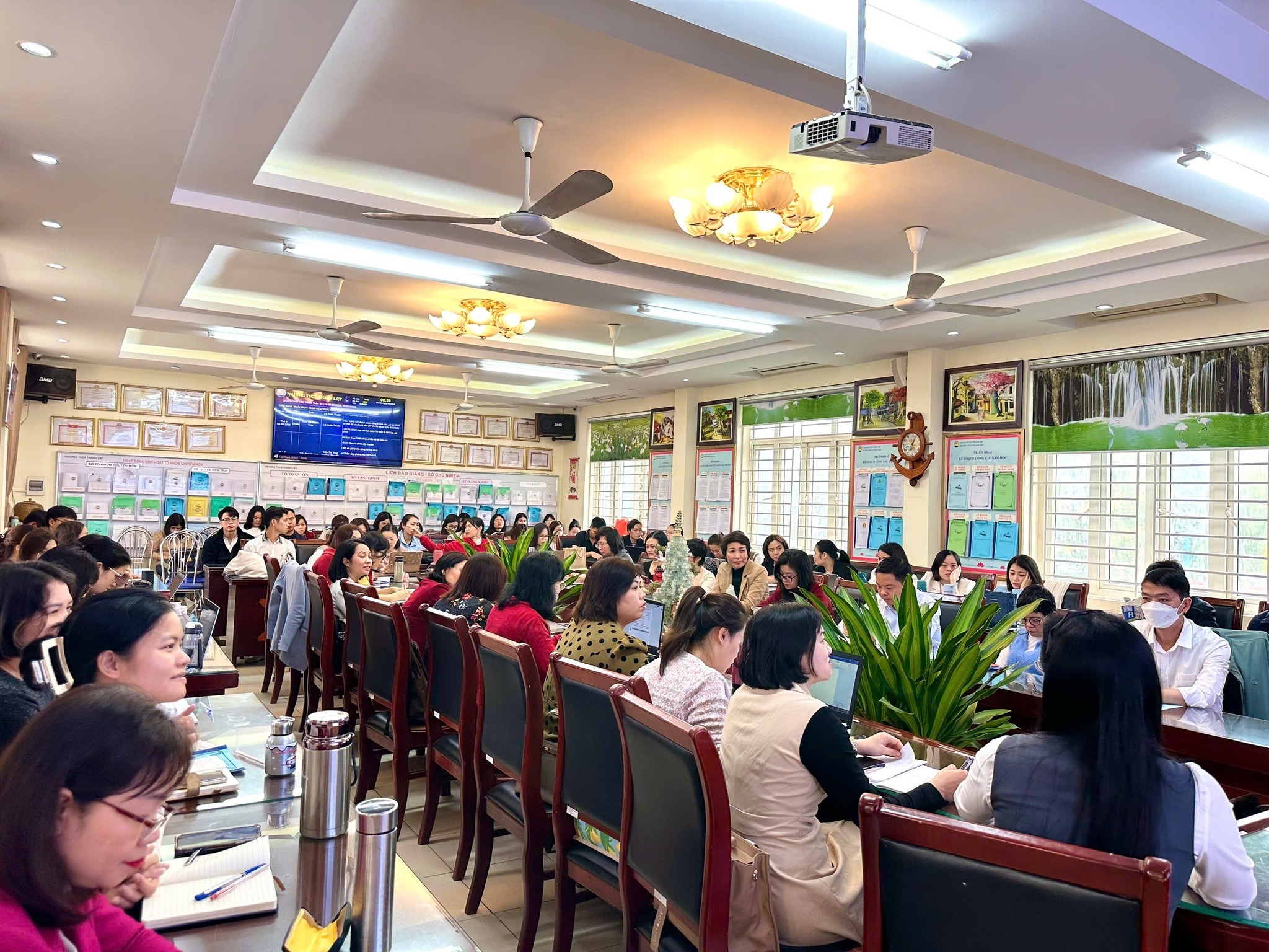 Buổi tập huấn ứng dụng CNTT và chuyển đổi số trong giáo dục 2025 thành công tốt đẹp và đạt hiệu quả cao. Các nội dung tập huấn gắn liền với yêu cầu thực tiễn, cán bộ, giáo viên và nhân viên nhà trường được trang bị các kỹ năng cần thiết nhằm phục vụ việc triển khai có hiệu quả ứng dụng công nghệ thông tin, chuyển đổi số trong giáo dục của nhà trường. Việc áp dụng công nghệ không chỉ tạo điều kiện thuận lợi cho công tác quản lý và giảng dạy mà còn giúp nâng cao chất lượng học tập của học sinh. Đây là một bước tiến quan trọng trong hành trình xây dựng môi trường giáo dục hiện đại, vững mạnh, đáp ứng yêu cầu của thời đại số hóa.