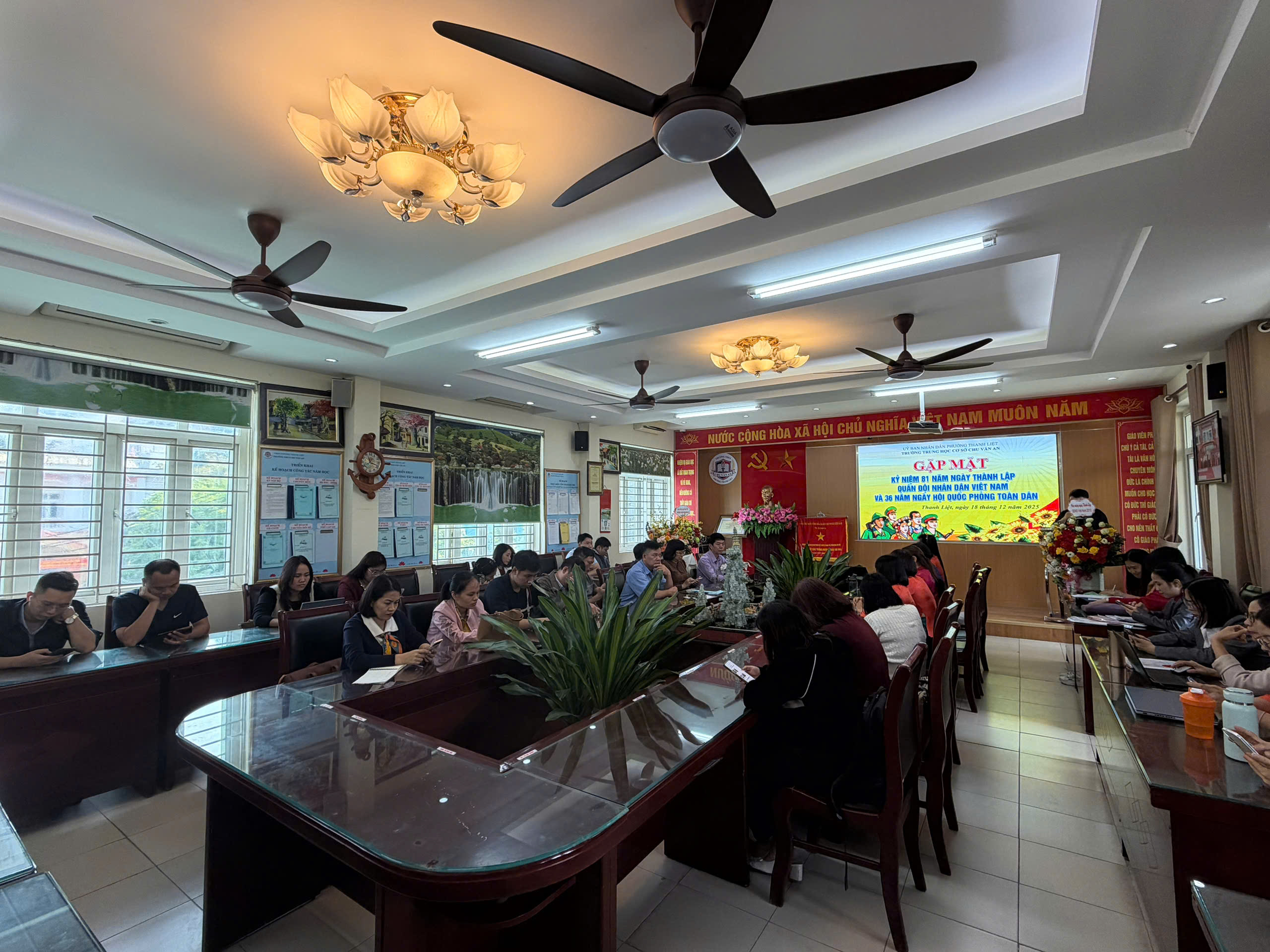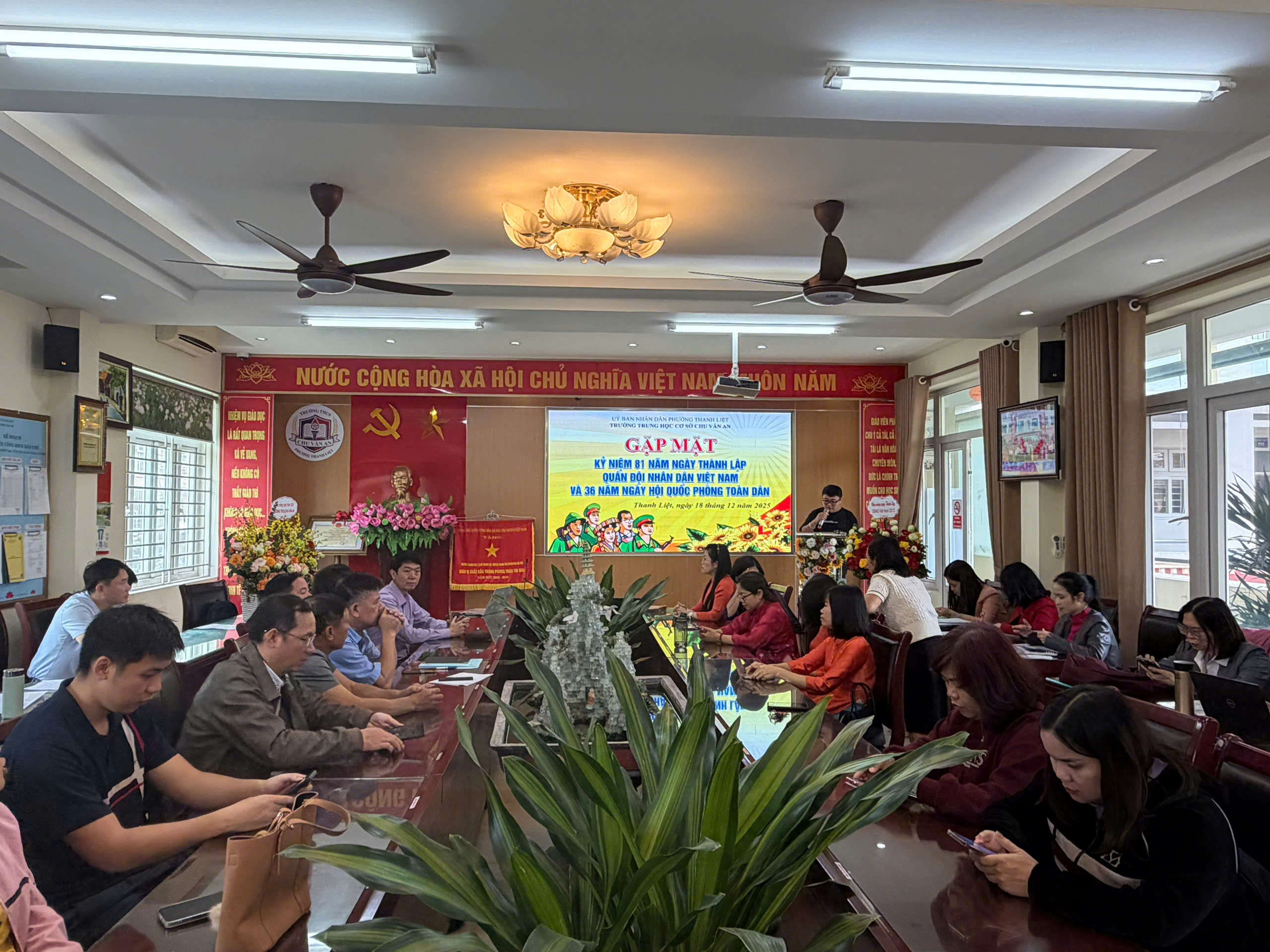 💐 Nhằm tri ân, ghi nhận những đóng góp thiêng liêng ấy, đồng thời khơi dậy niềm tự hào, ý thức trách nhiệm trong mỗi cán bộ, giáo viên, nhân viên, ngày 18/12/2025, Trường THCS Chu Văn An đã long trọng tổ chức Lễ kỉ niệm 81 năm Ngày thành lập Quân đội Nhân dân Việt Nam.