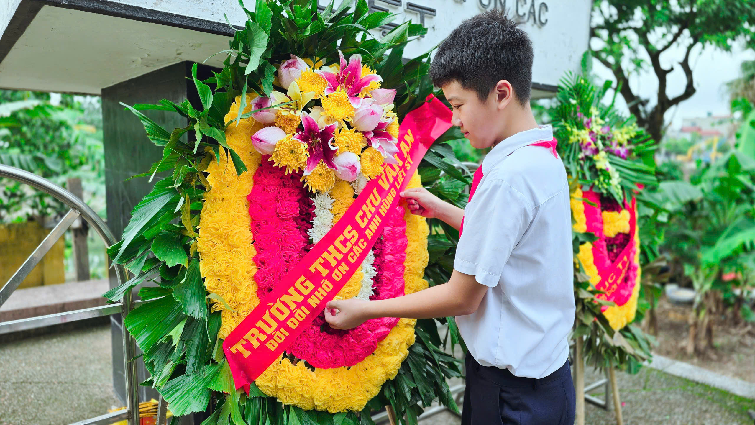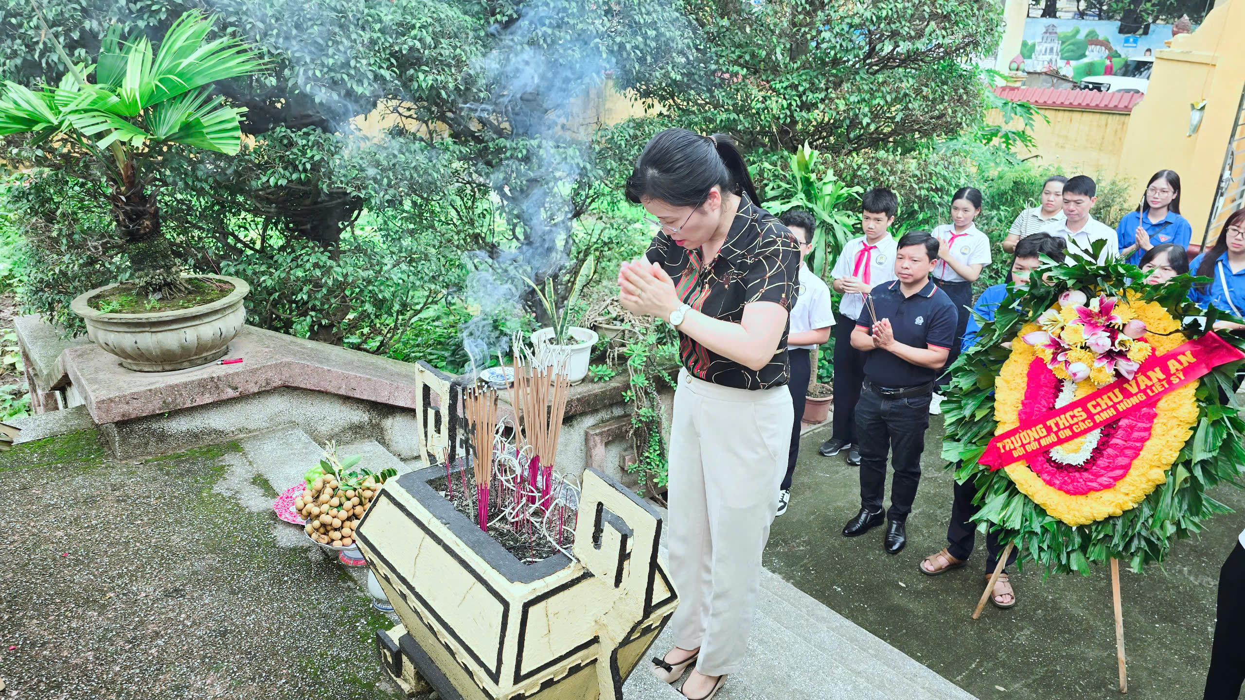 Sáng nay, Thứ 5 ngày 24/07/2025 tập thể cán bộ, giáo viên, nhân viên, chi đoàn trường và các em học sinh Trường THCS Chu Văn An đã cùng nhau dâng hương, chăm sóc, dọn dẹp tại Nghĩa trang liệt sĩ Phường Thanh Liệt.