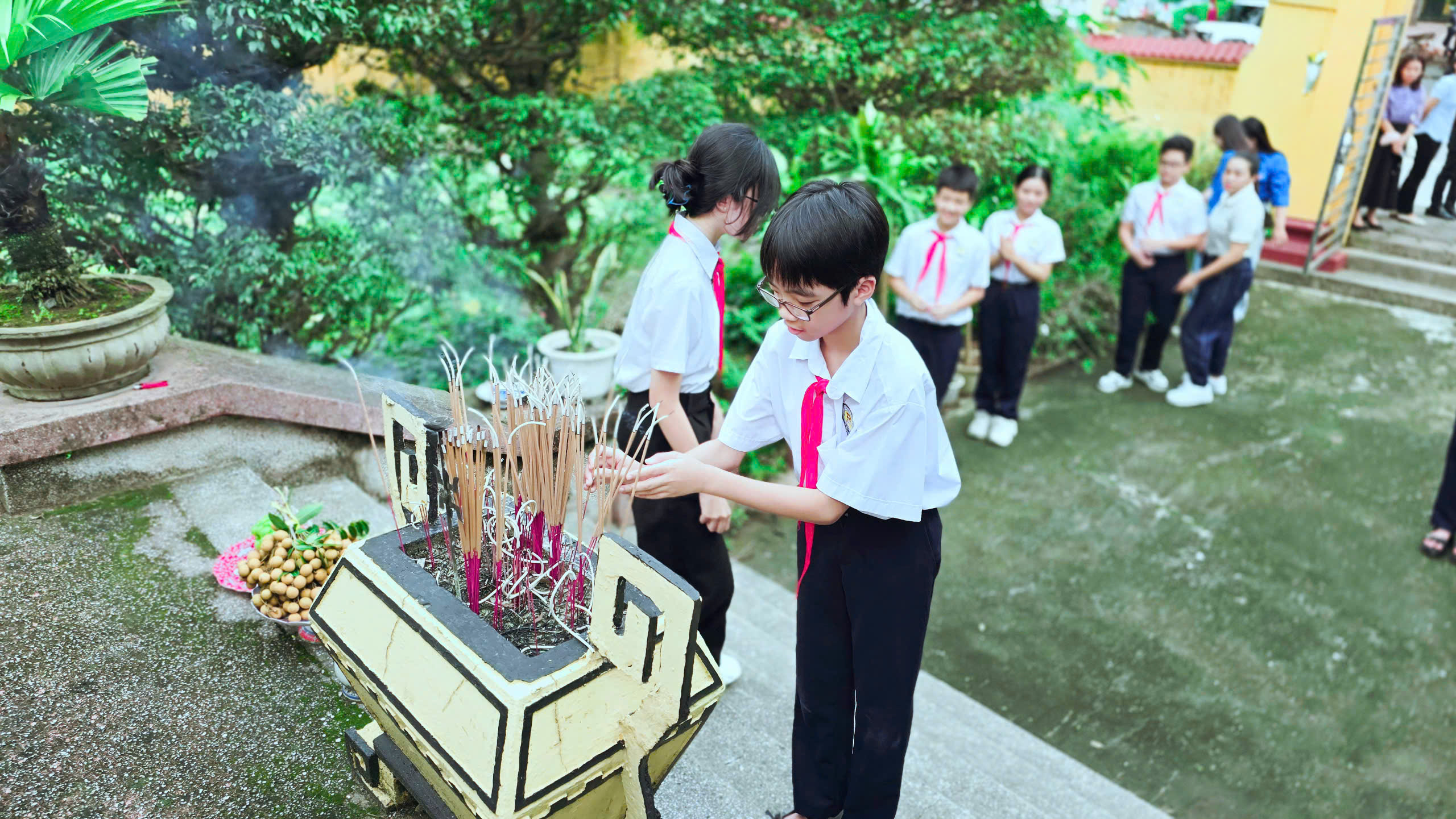 Mỗi nén hương thơm, mỗi bó hoa tươi là lời hứa của thầy và trò nhà trường: