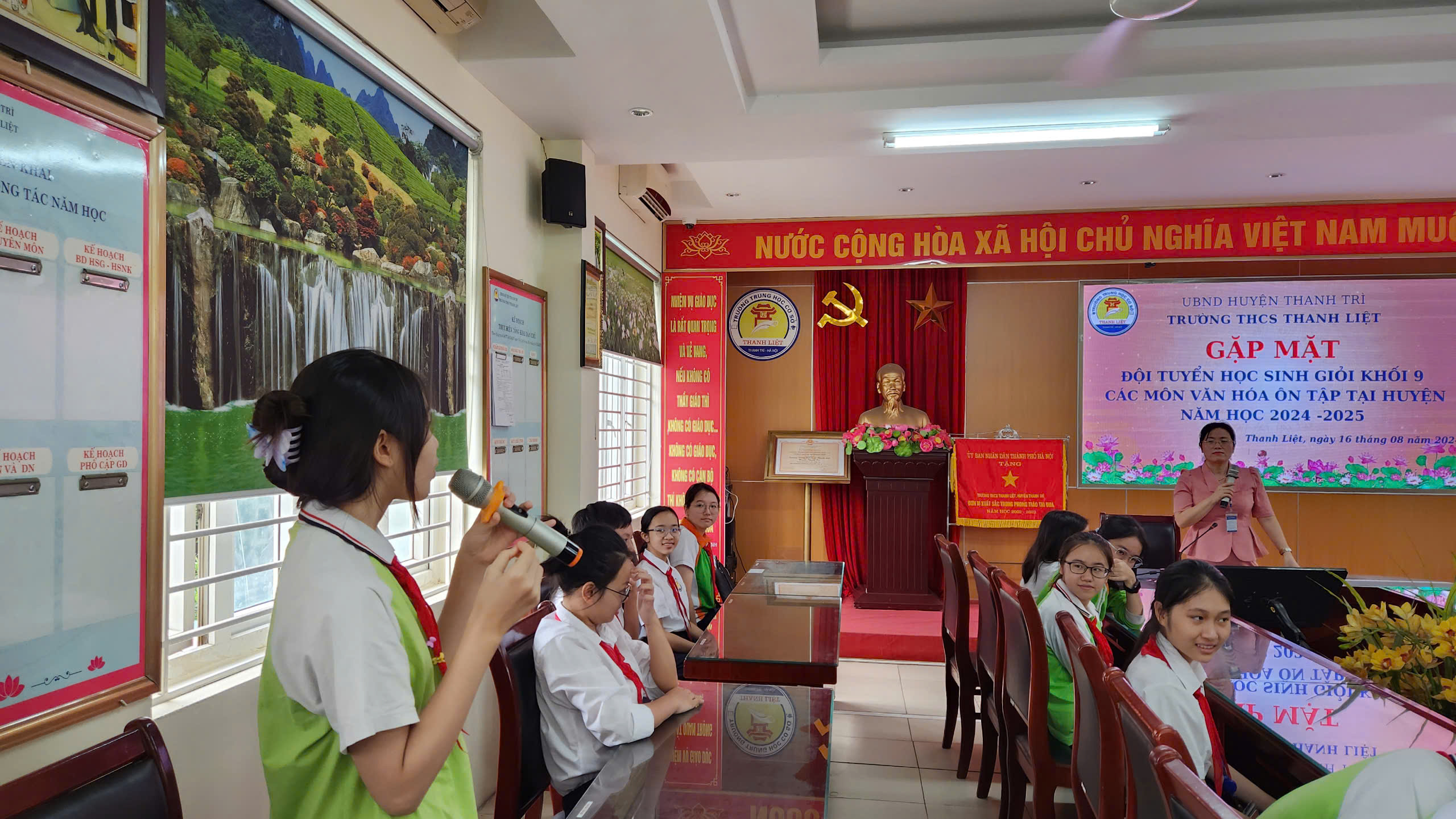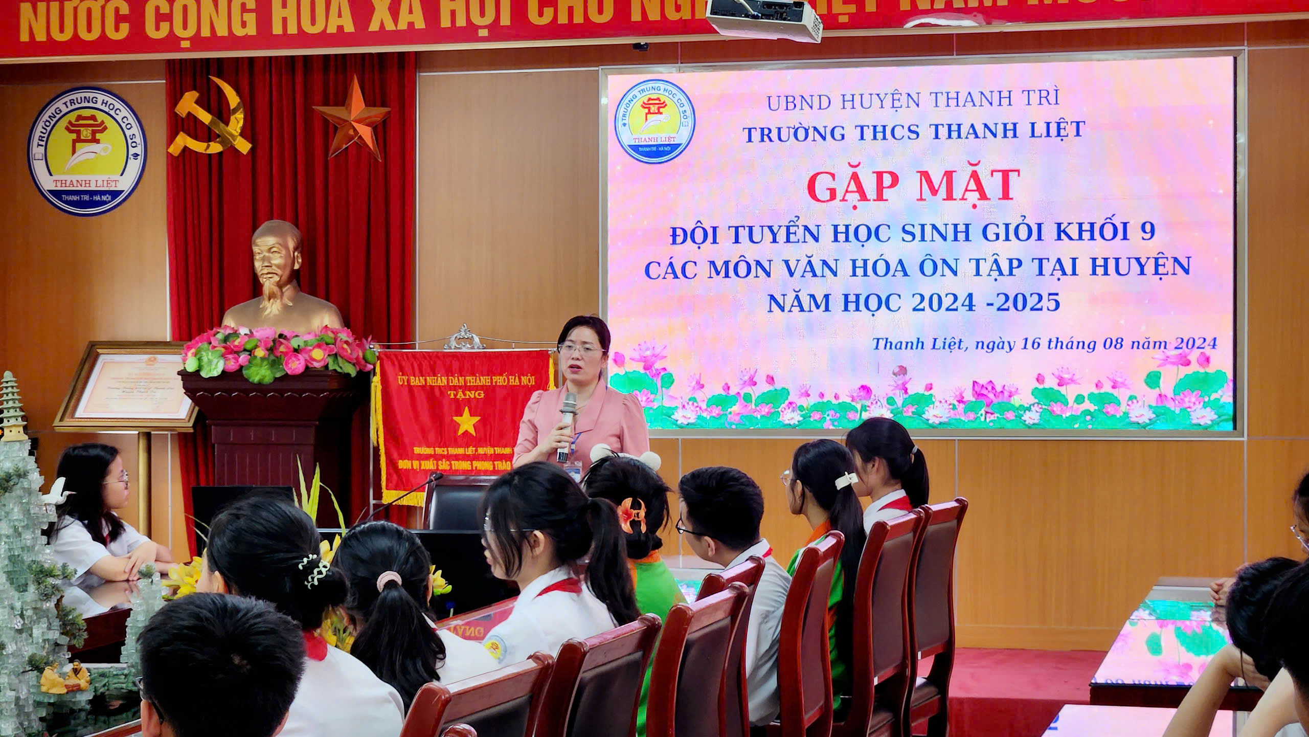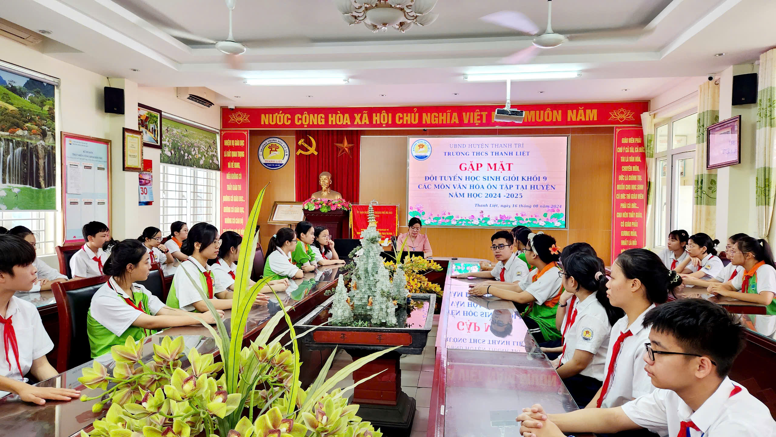 Thực hiện công văn bồi dưỡng đồi tuyển học sinh giỏi khối 9 cấp huyện năm học 2024-2025 của Phòng GD&ĐT huyện Thành Trì, nhà trường lựa chọn được 58 học sinh tiêu biểu xuất sắc đủ điều kiện học bồi dưỡng tại trường THCS Chu Văn An. Sáng ngày 16/08/2024, Ban Giám hiệu trường THCS Thanh Liệt đã có buổi gặp mặt đội tuyển học sinh giỏi khối 9 các môn văn hóa bồi dưỡng tại huyện năm học 2024 -2025