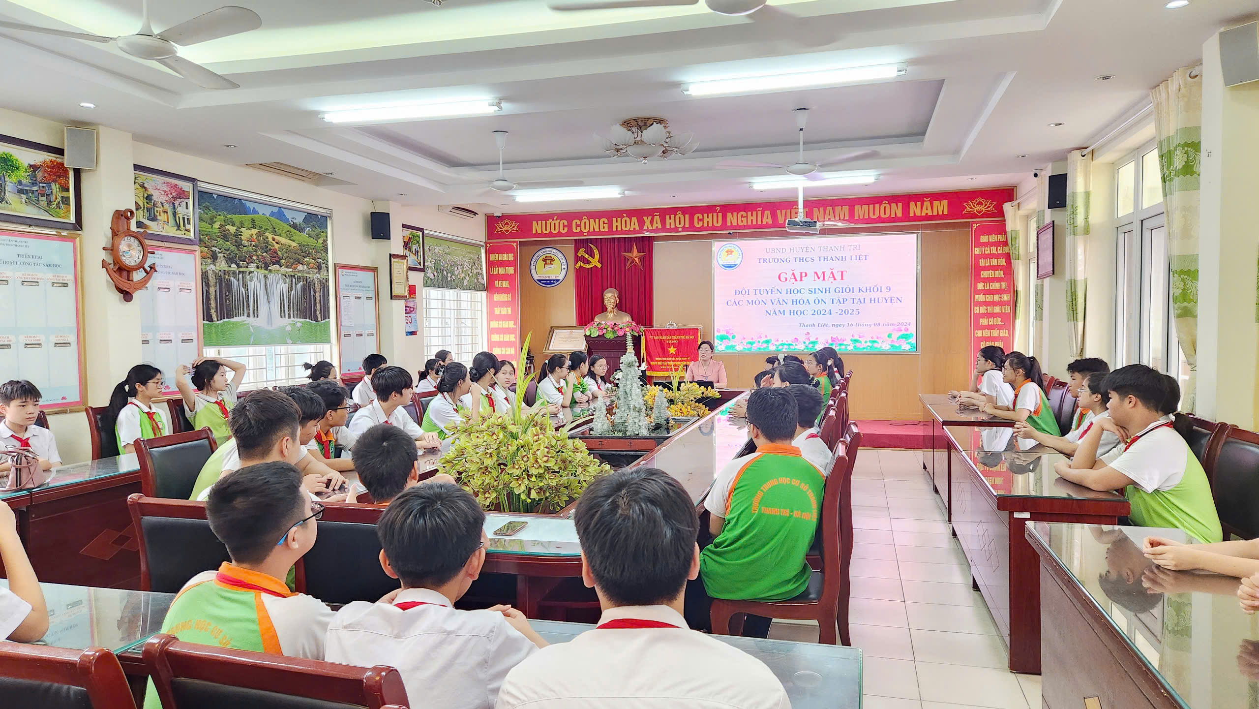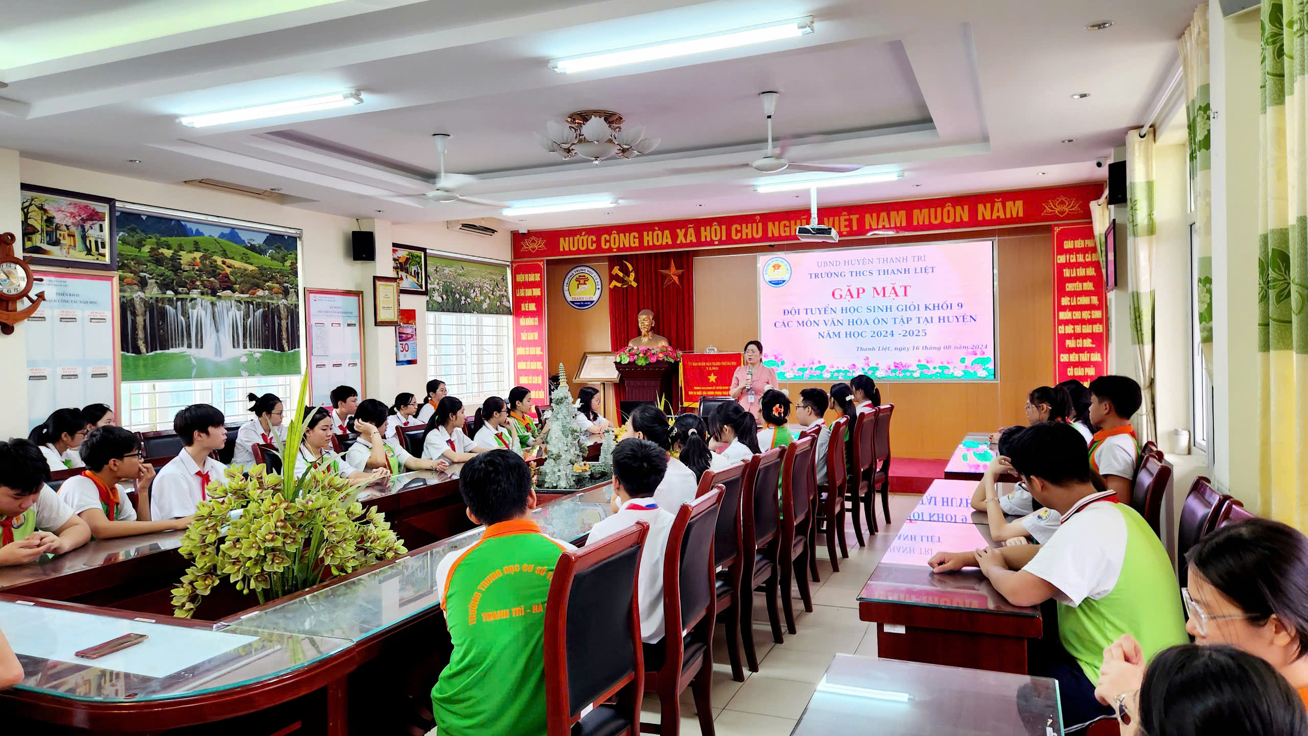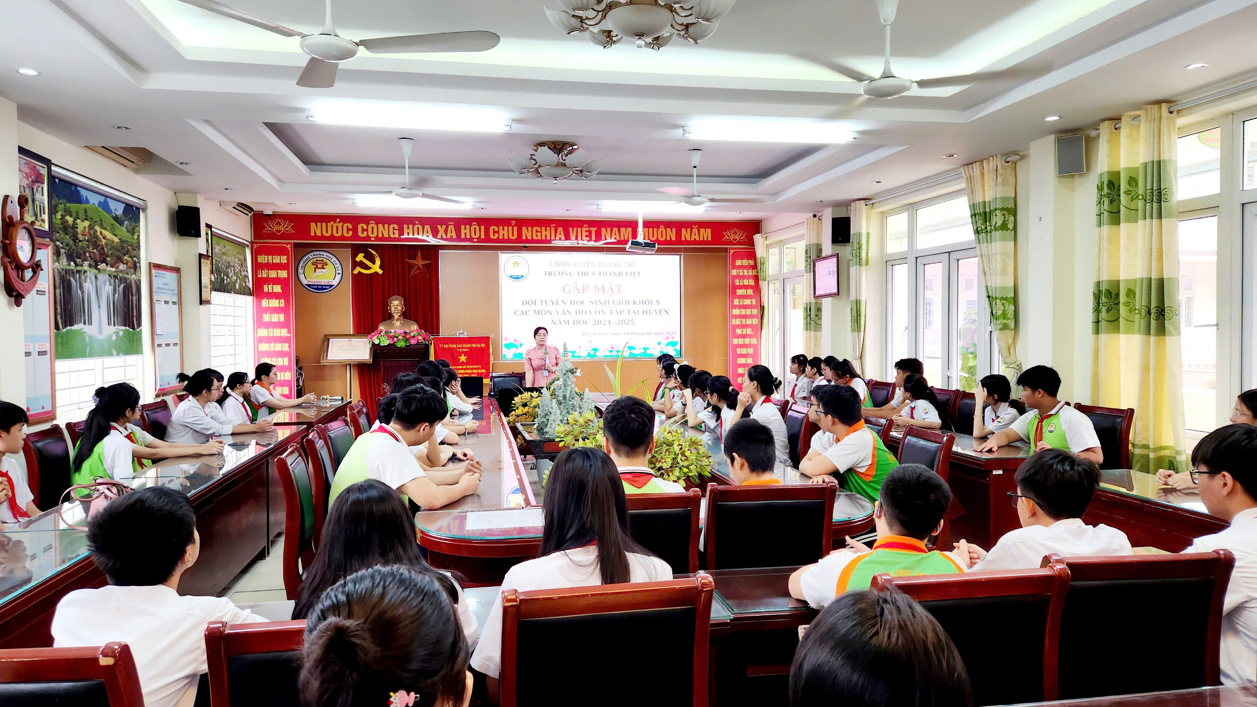 Thực hiện công văn bồi dưỡng đồi tuyển học sinh giỏi khối 9 cấp huyện năm học 2024-2025 của Phòng GD&ĐT huyện Thành Trì, nhà trường lựa chọn được 58 học sinh tiêu biểu xuất sắc đủ điều kiện học bồi dưỡng tại trường THCS Chu Văn An. Sáng ngày 16/08/2024, Ban Giám hiệu trường THCS Thanh Liệt đã có buổi gặp mặt đội tuyển học sinh giỏi khối 9 các môn văn hóa bồi dưỡng tại huyện năm học 2024 -2025