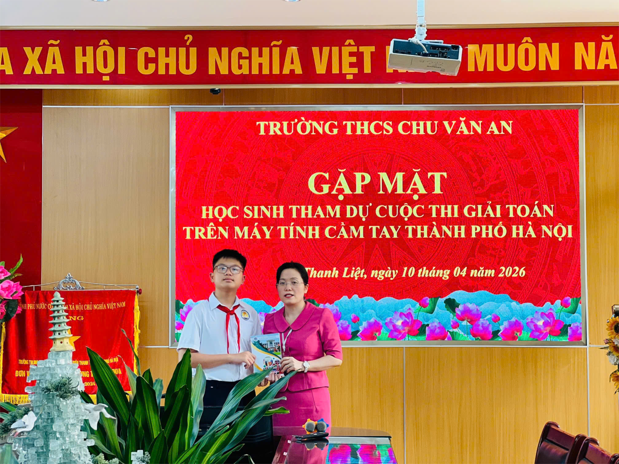 Ngày 10 tháng 4 năm 2026, Ban Giám hiệu trường THCS Chu Văn An - Thanh Liệt đã có buổi gặp mặt thân mật để động viên, khích lệ em Nguyễn Tuấn Hải – học sinh lớp 8A1 trước khi em lên đường tham dự cuộc thi giải Toán trên máy tính cầm tay cấp Thành phố.