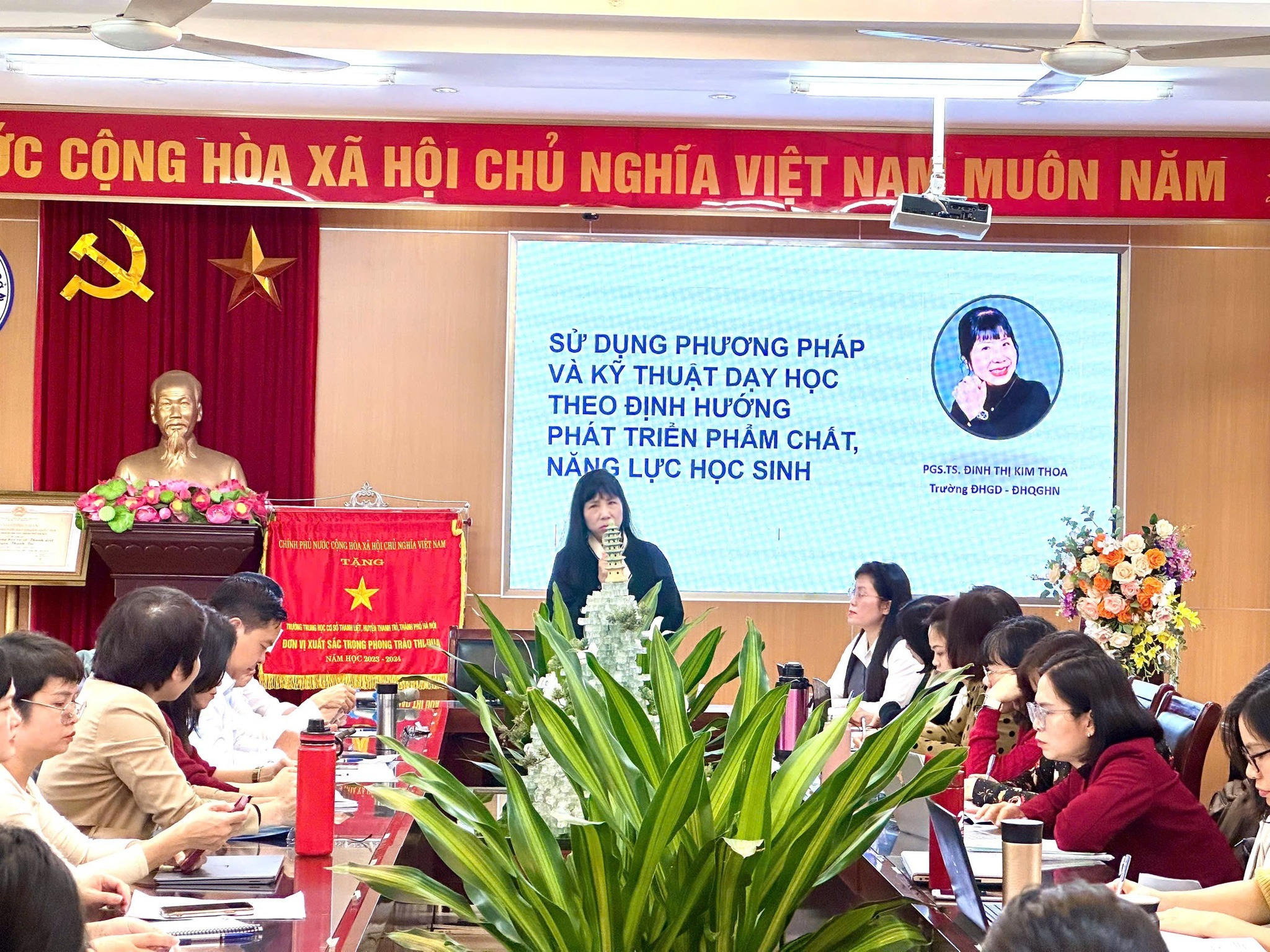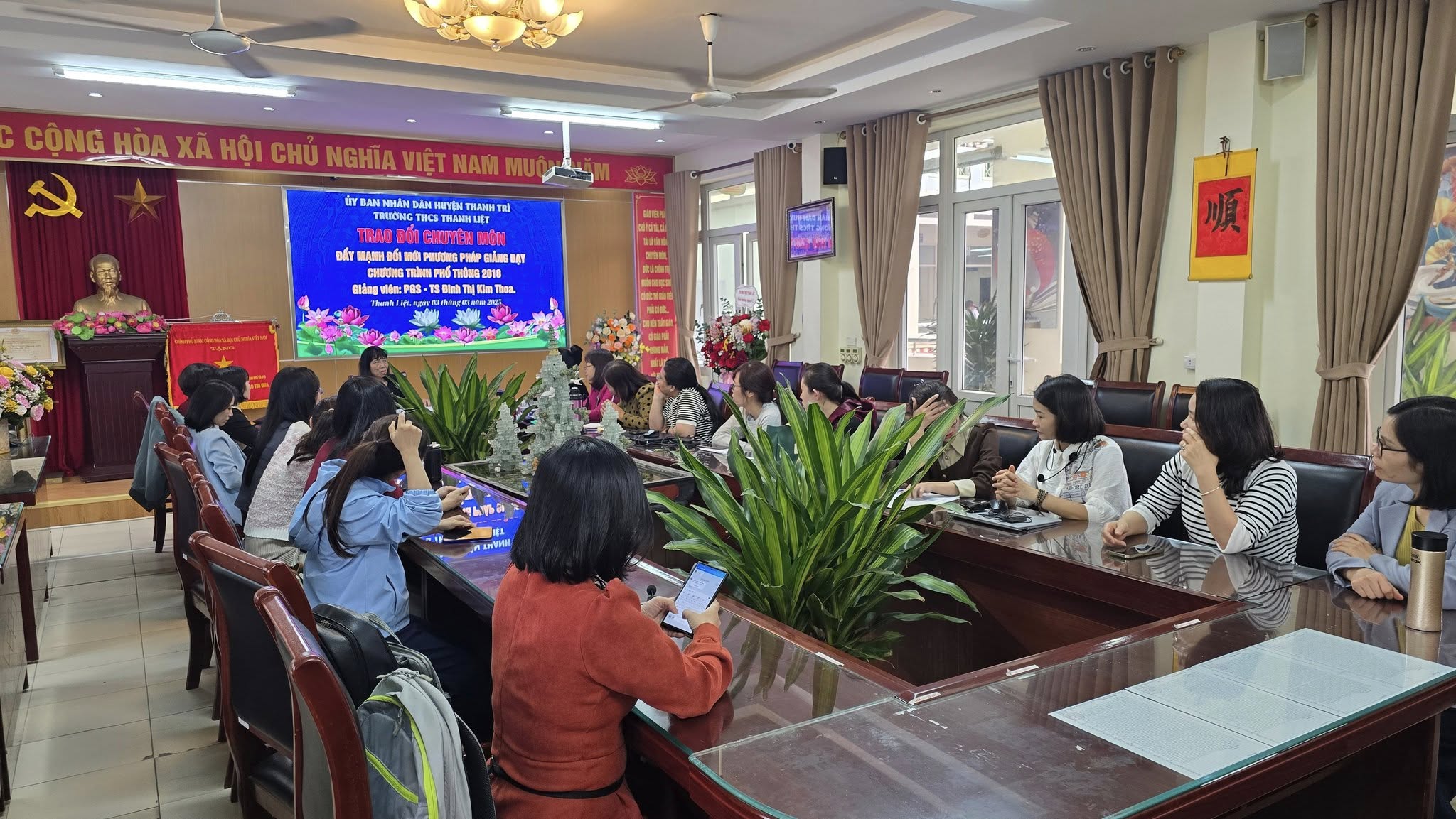 *Ngày 3/3/2025, BGH và các giáo viên trường THCS Thanh Liệt đã tham gia buổi tập huấn “Nâng cao Sử dụng phương pháp và kĩ thuật dạy học theo định hướng phát triển phẩm chất, năng lực học sinh” với sự hướng dẫn của PGS. TS Đinh Thị Kim Thoa ( Giảng viên trường ĐHGD-ĐHQGHN).