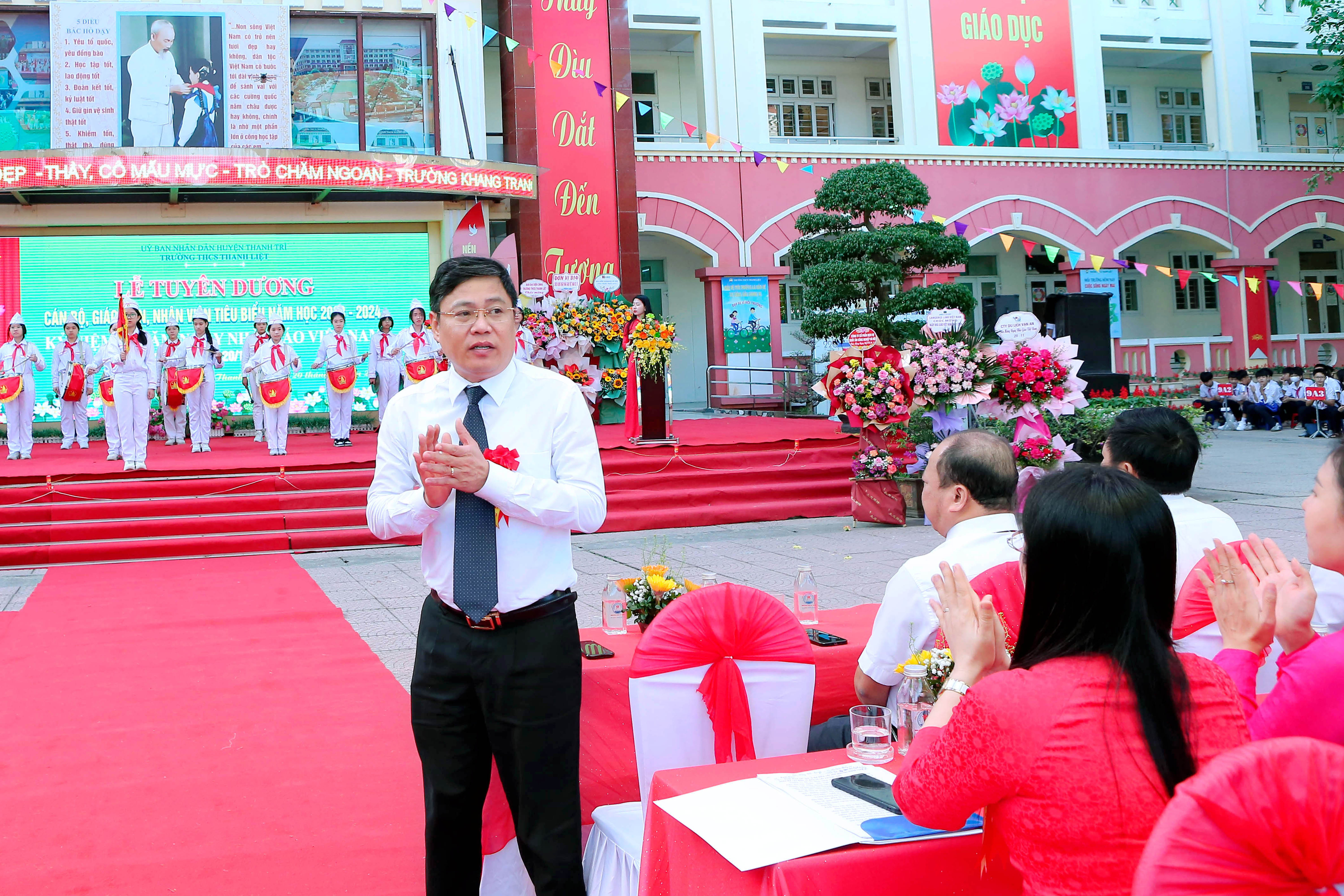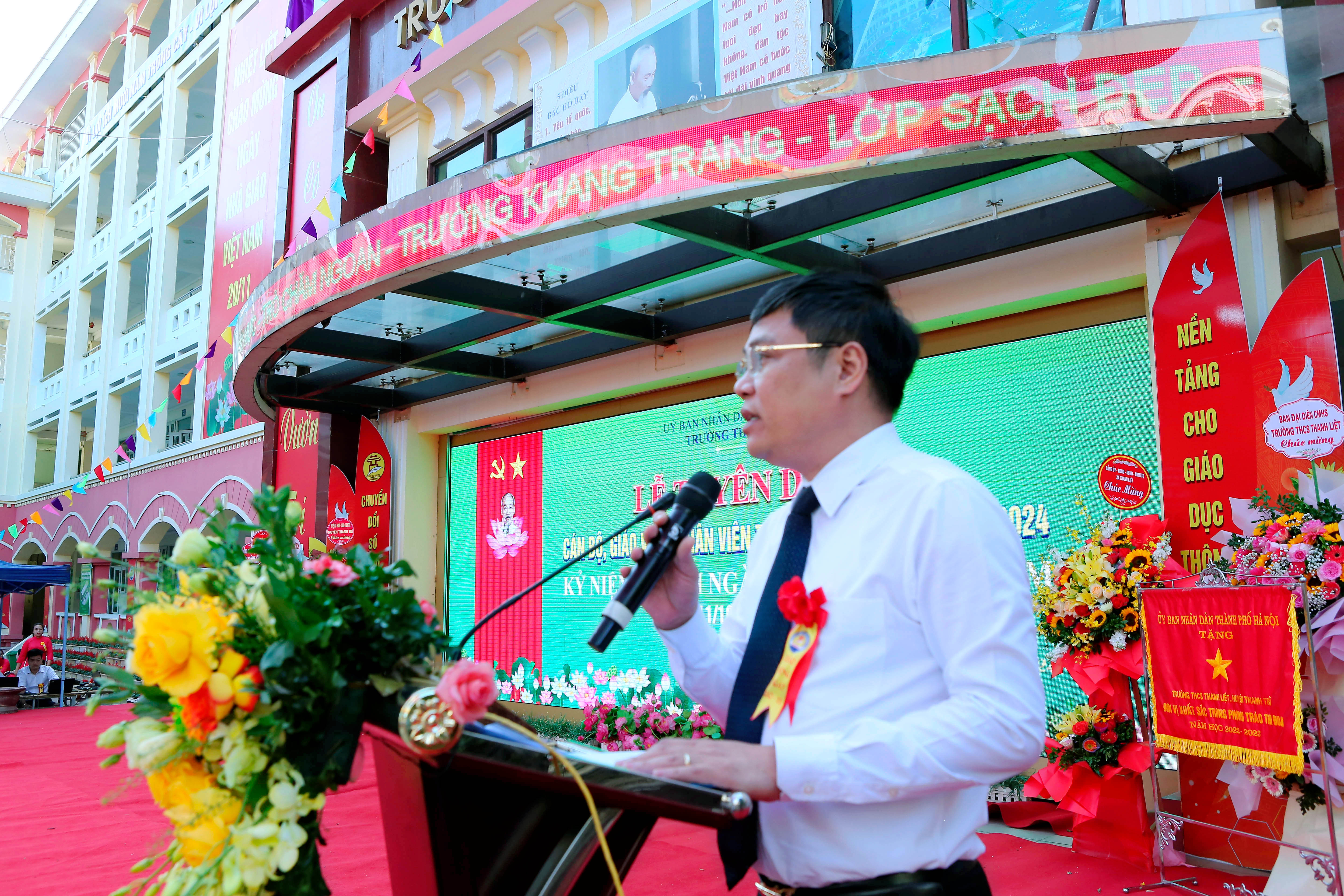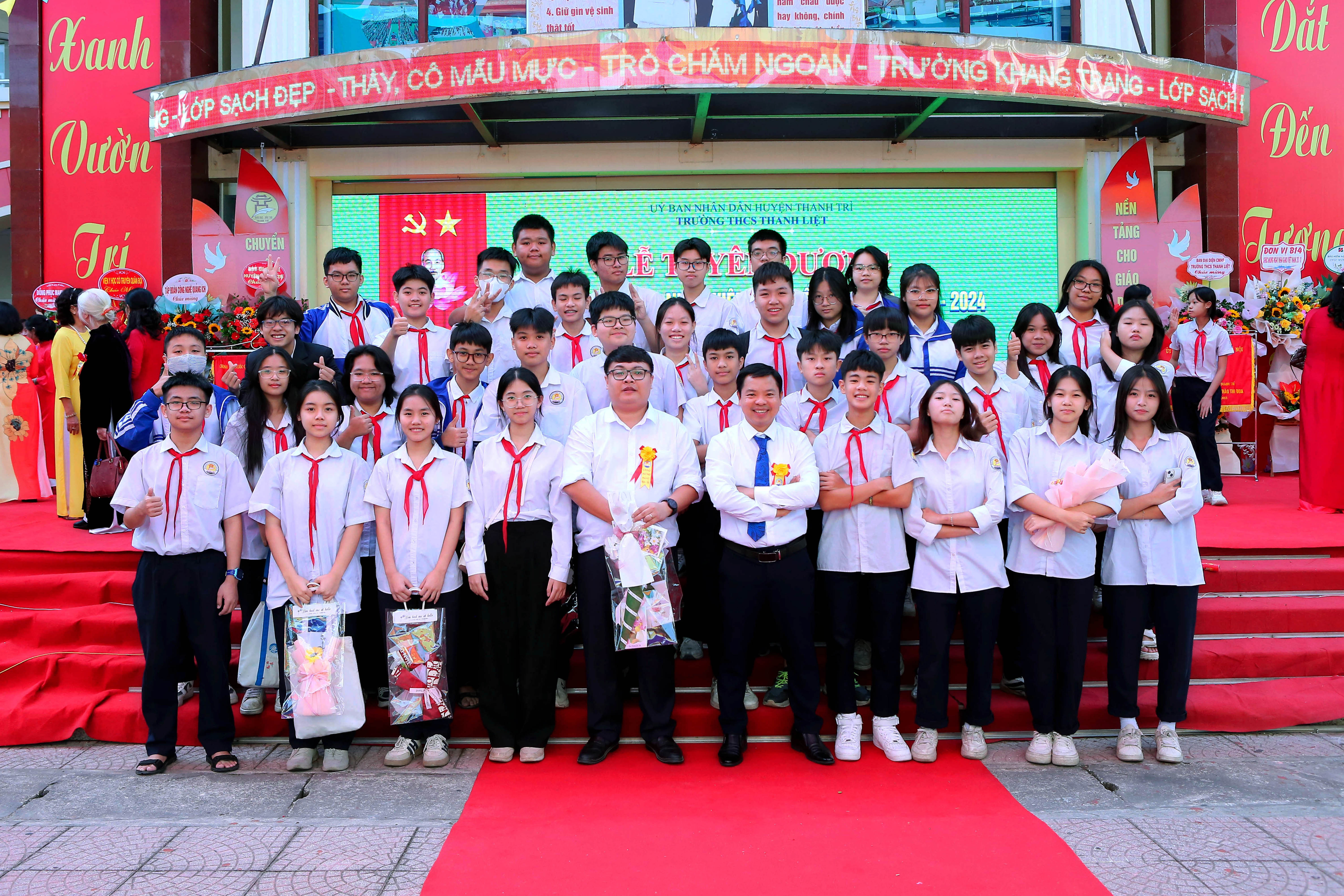 cùng toàn thể các thầy cô giáo đang công tác, giảng dạy tại trường và đặc biệt là sự có mặt của hơn 2000 em học sinh của trường THCS Thanh Liệt tạo nên không khí ấm áp và đầy ý nghĩa.