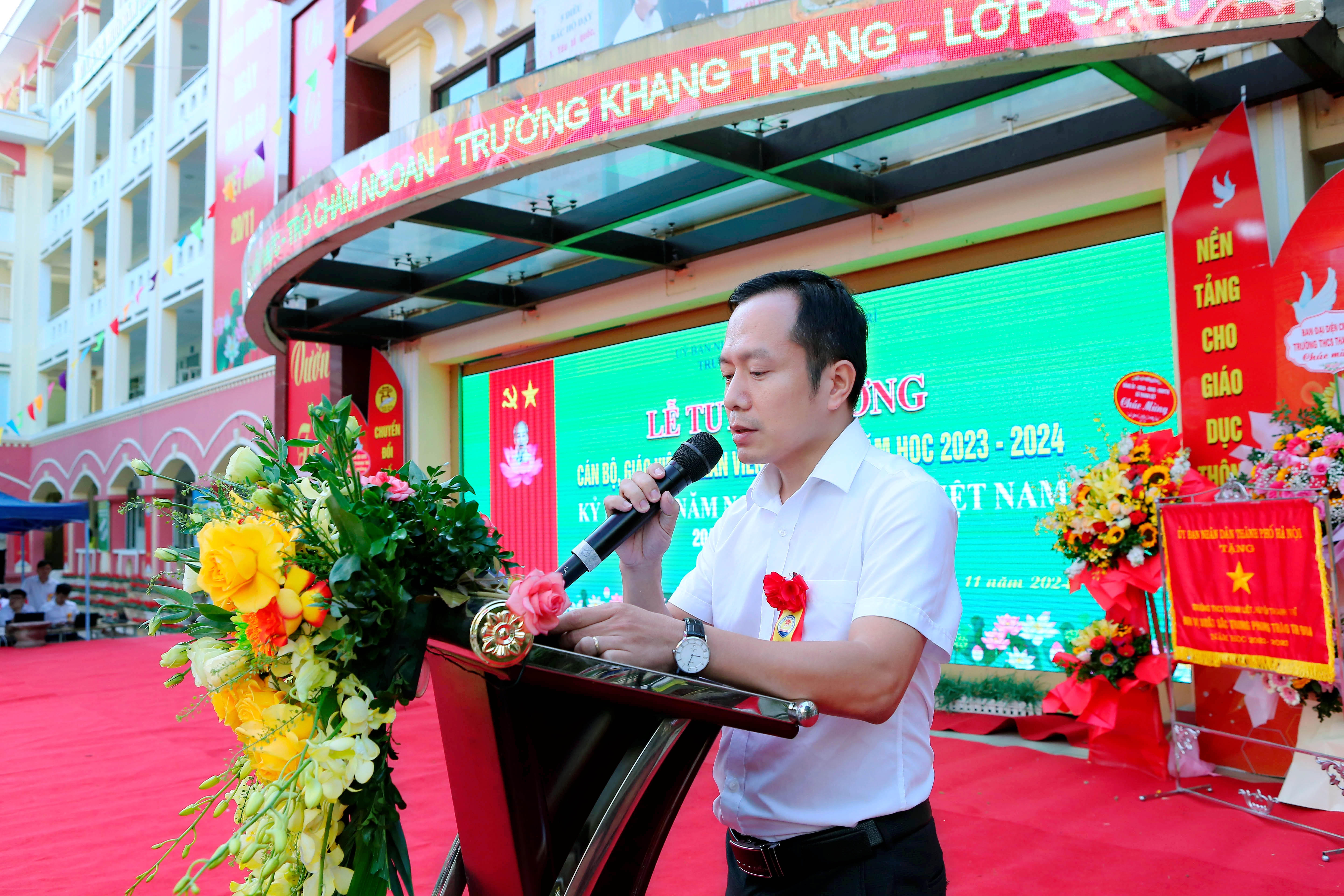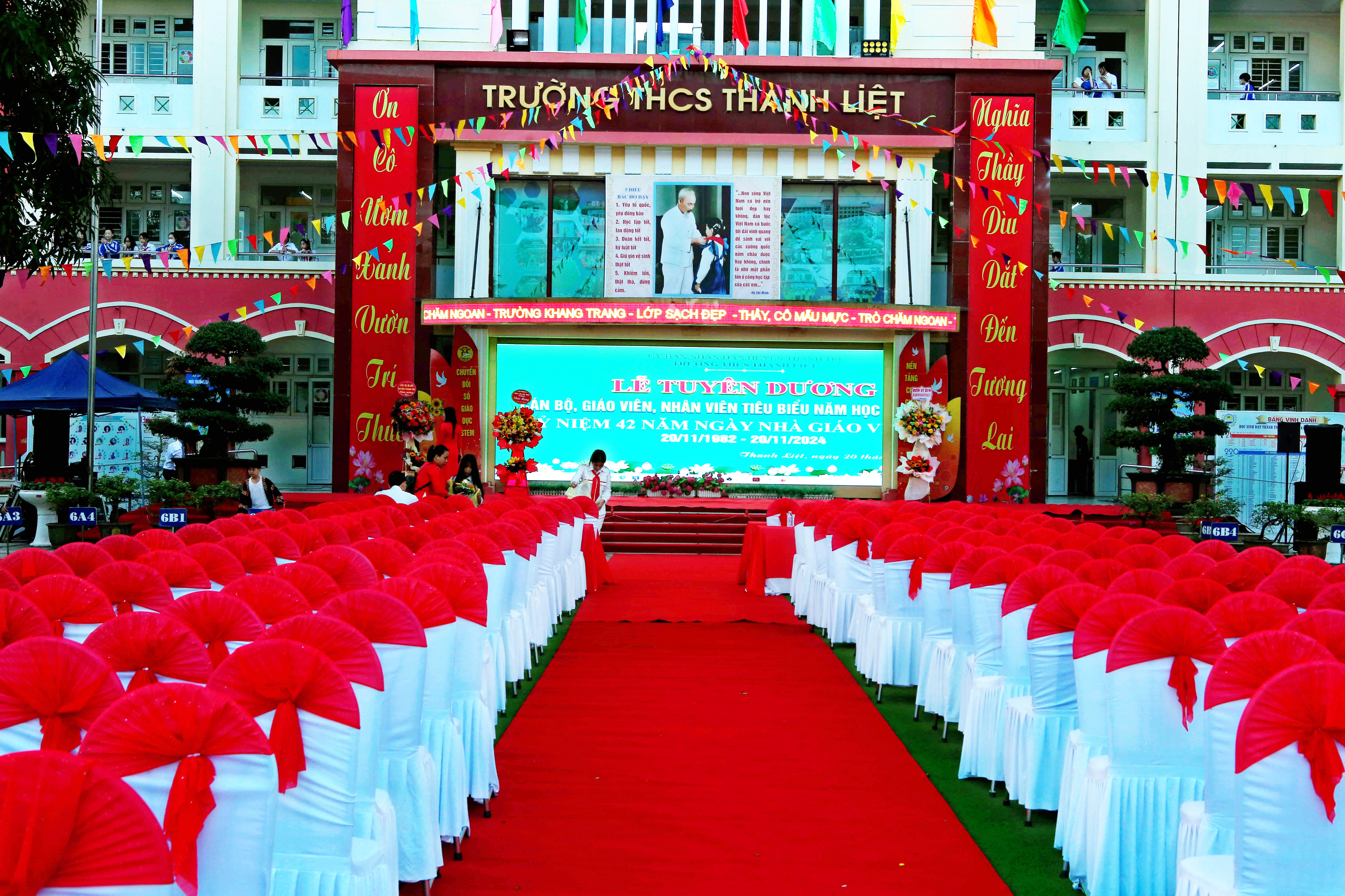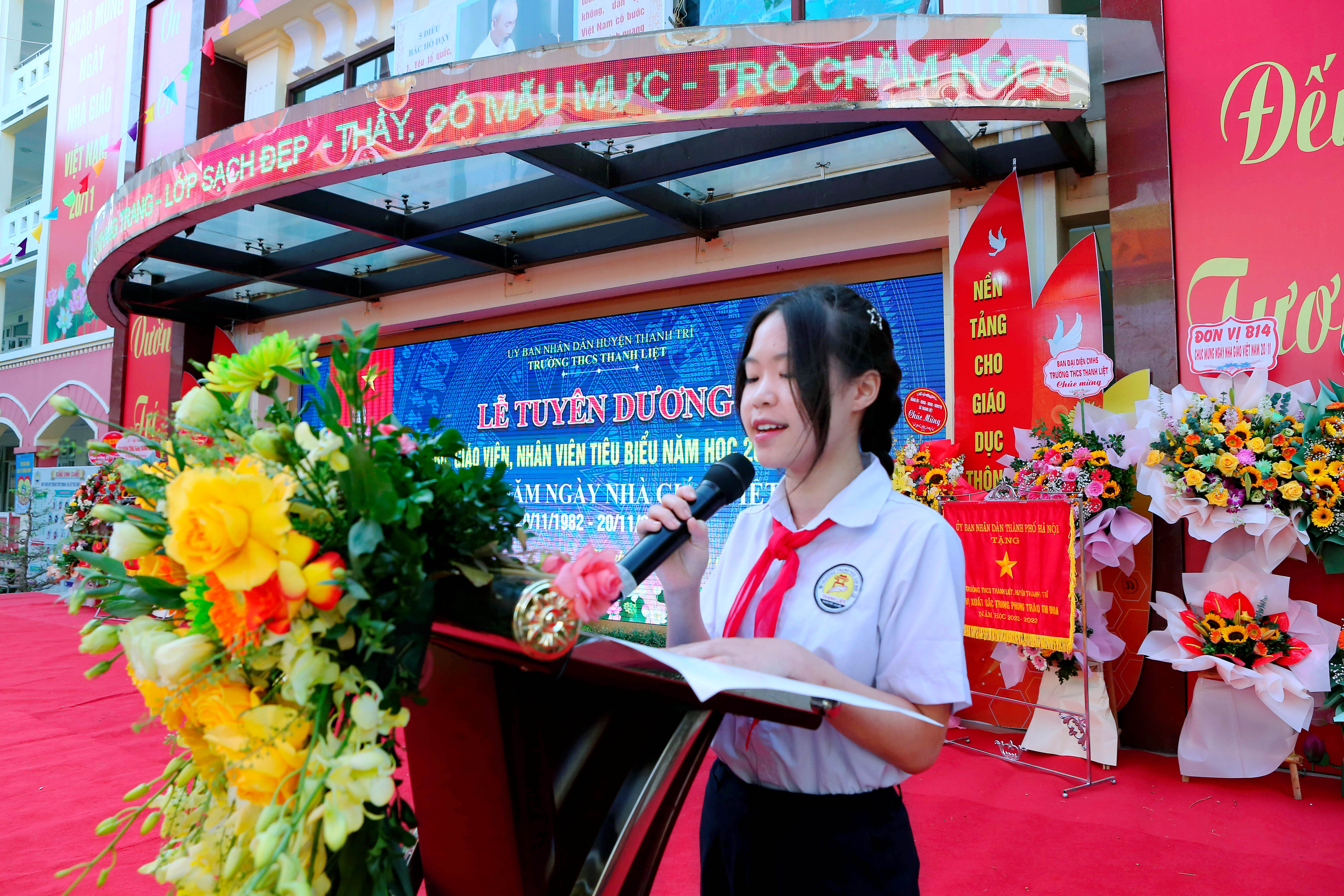 cùng toàn thể các thầy cô giáo đang công tác, giảng dạy tại trường và đặc biệt là sự có mặt của hơn 2000 em học sinh của trường THCS Thanh Liệt tạo nên không khí ấm áp và đầy ý nghĩa.