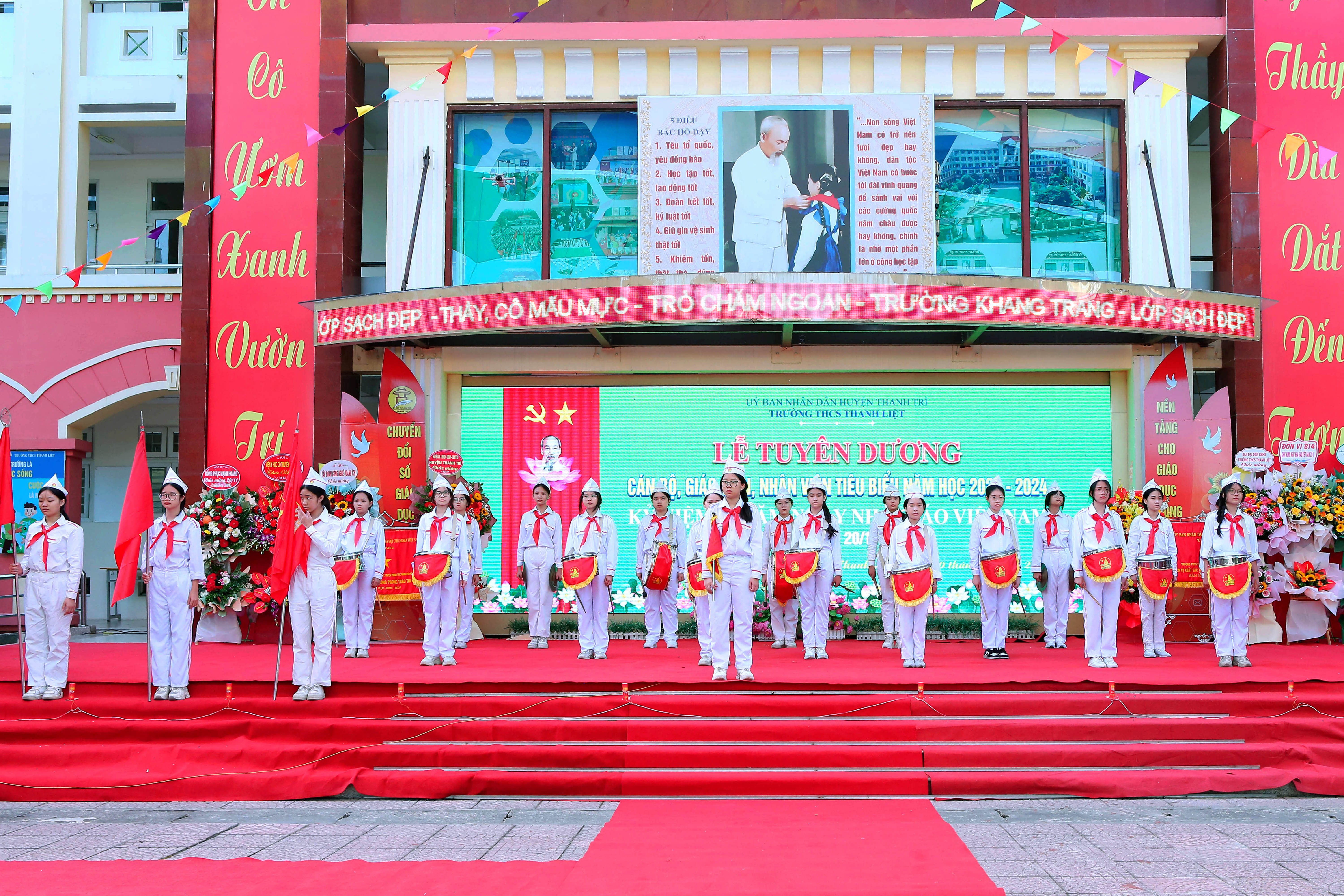 THCS Thanh Liệt long trọng tổ chức chương trình chào mừng 70 năm thành lập ngành Giáo dục và Đào tạo Thủ đô (1954-2024), 42 năm ngày Nhà giáo Việt Nam (20/11/1982-20/11/2024) và đón nhận cờ thi đua của Chính phủ.