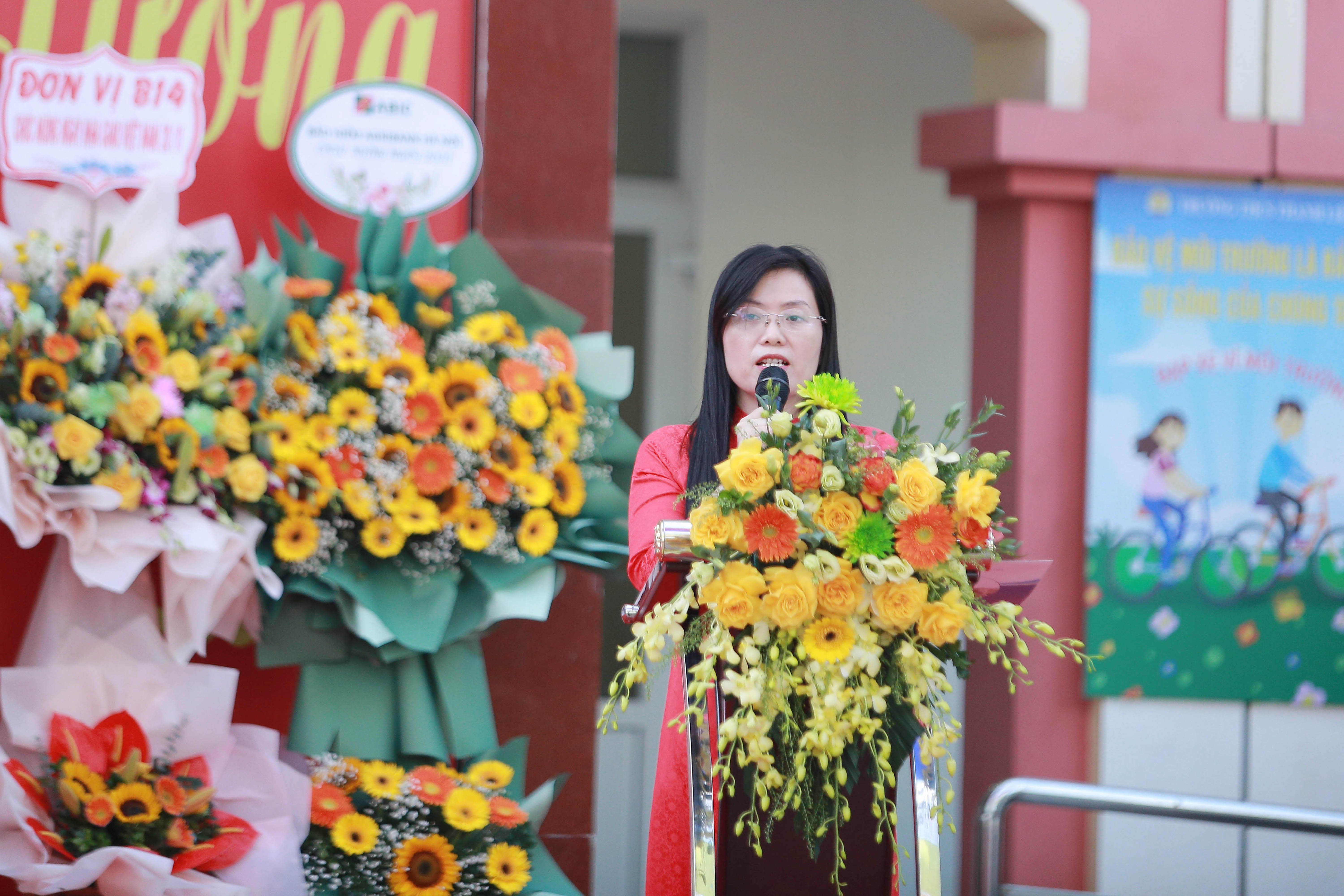 *Tại buổi lễ, cô giáo Trần Mai Hương – Bí thư chi bộ, Hiệu trưởng nhà trường đã ôn lại truyền thống 42 năm ngày Nhà giáo Việt Nam; truyền thống tôn sư, trọng đạo và quá trình 61 năm xây dựng, phát triển của nhà trường; biểu dương những thành tích tập thể nhà trường đã đạt được trong năm học vừa qua.