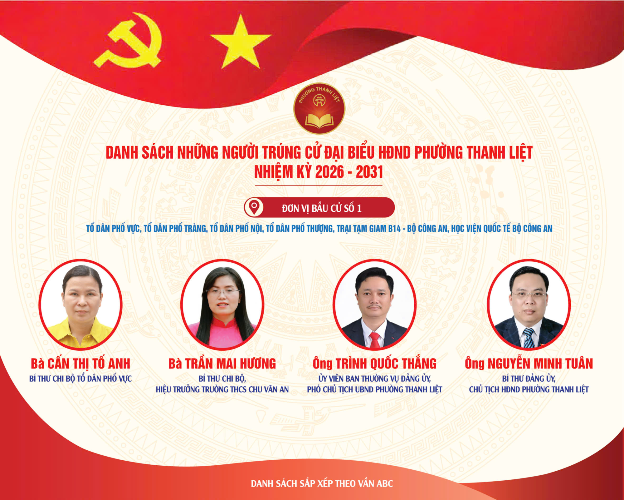Sự ủng hộ quý báu của quý vị cử tri chính là tiền đề và động lực to lớn để Cô Trần Mai Hương tiếp tục phát huy năng lực quản lý, tâm huyết với sự nghiệp giáo dục và tinh thần trách nhiệm với cộng đồng, góp phần xây dựng quê hương Thanh Liệt ngày càng văn minh, giàu đẹp.