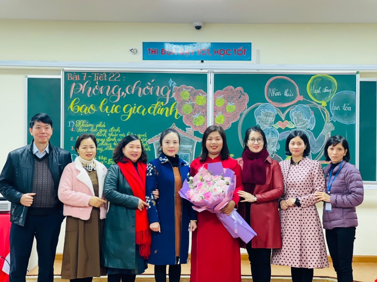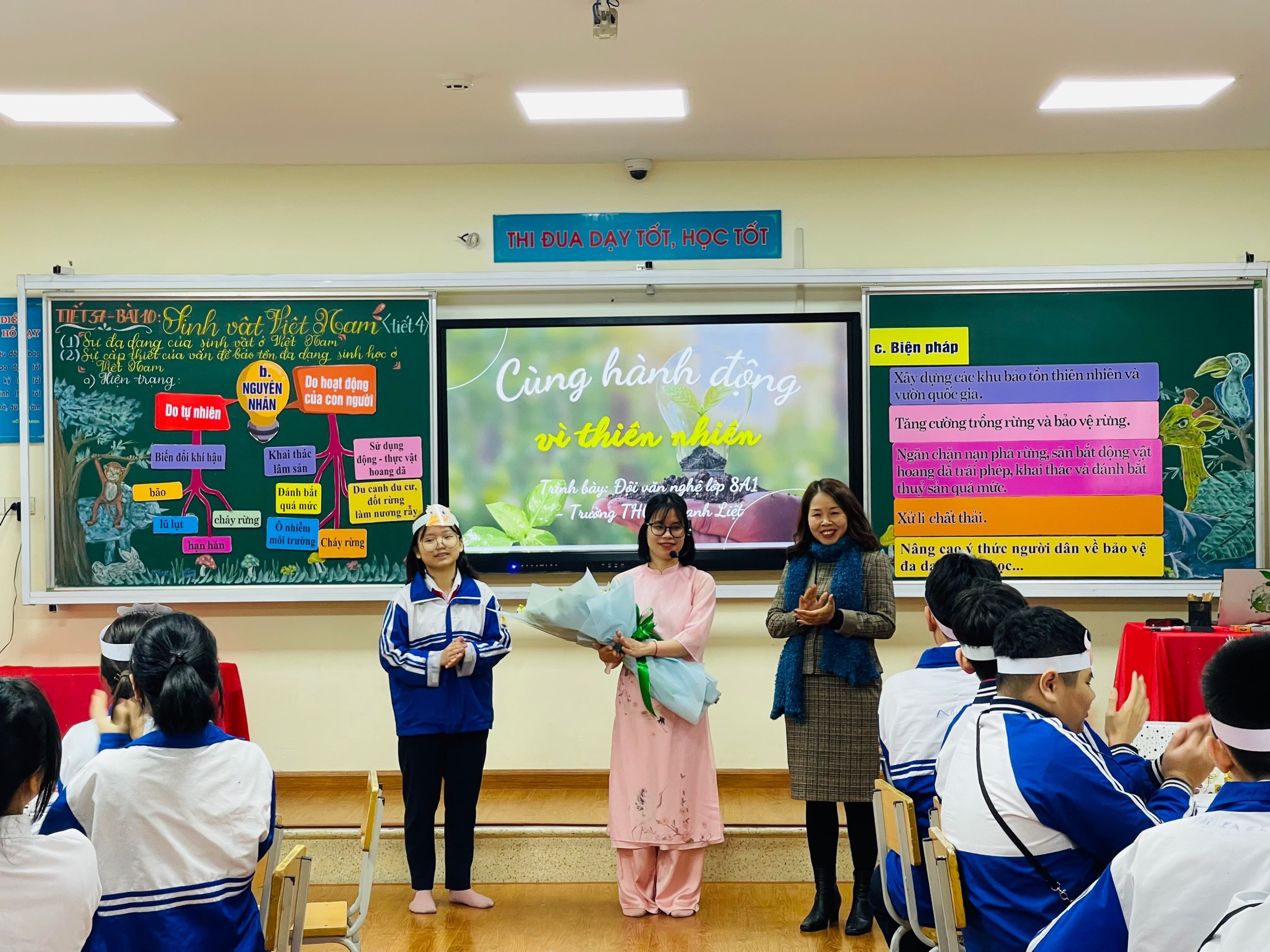 - Cô giáo Lê Thị Năm Thanh dự thi môn GDCD cùng tập thể lớp 8B1.