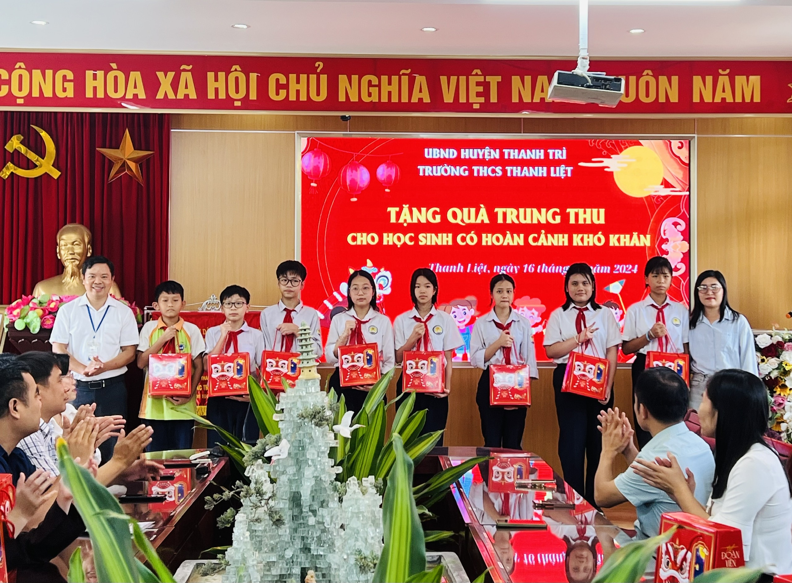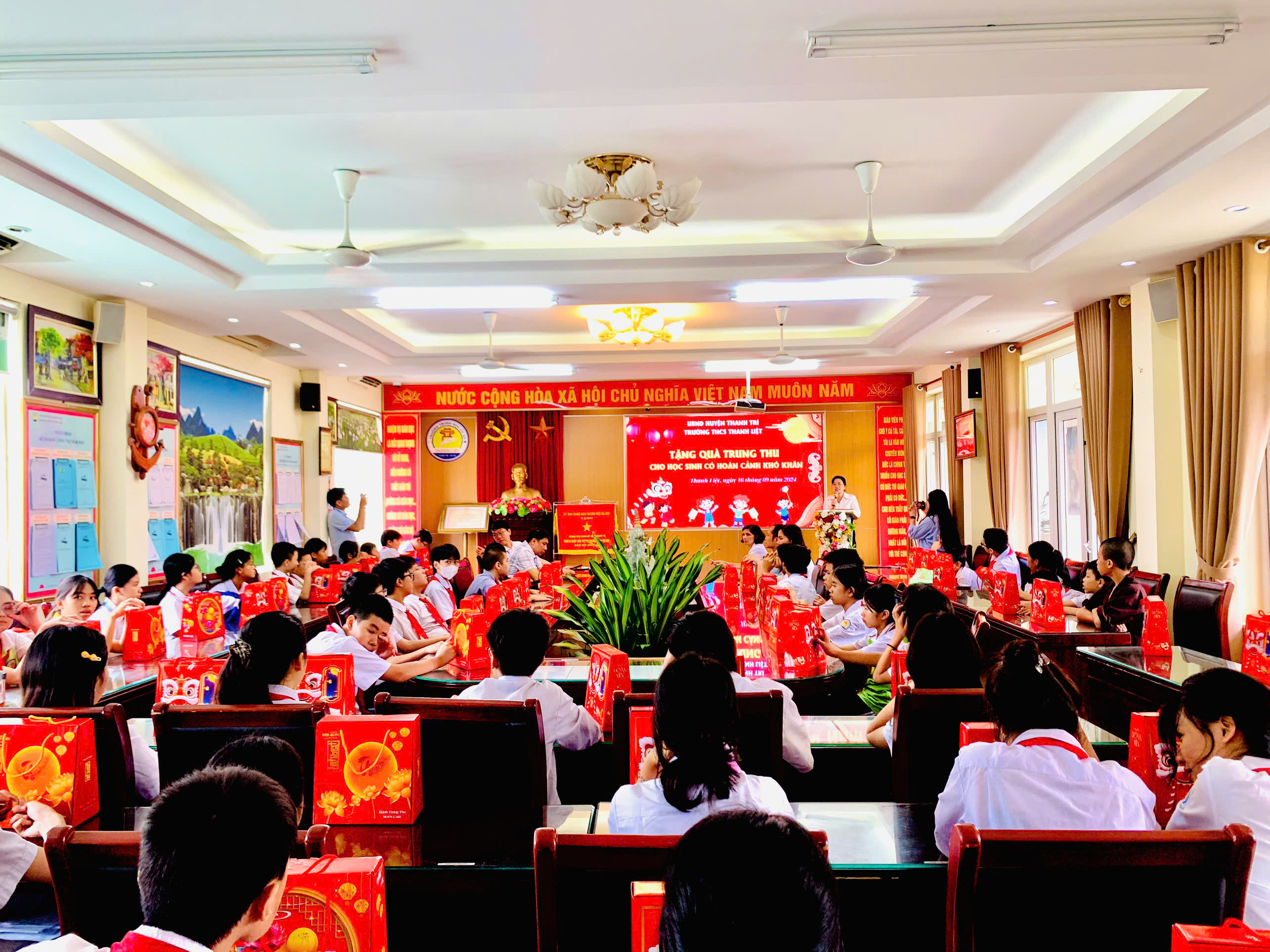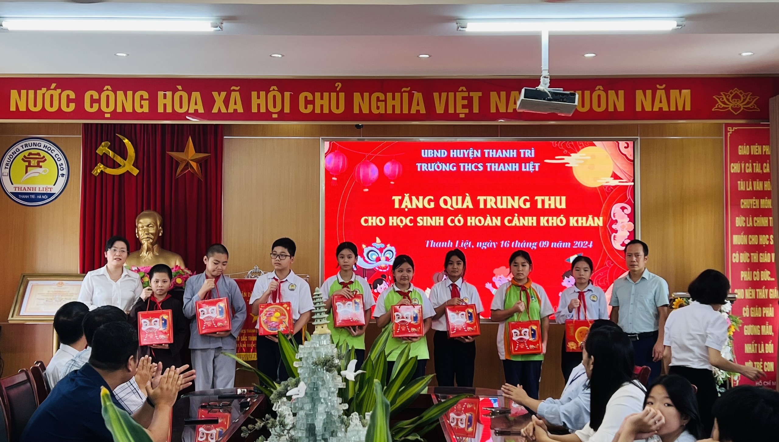 Nhập dịp tết trung thu 2024, trường THCS Thanh Liệt phối hợp với phụ huynh tặng 60 suất quà đến các em học sinh có hoàn cảnh khó khăn những luôn nỗ lực vươn lên trong học tập là các em thuộc diện chính sách, mồ côi, các em học sinh bị ảnh hưởng do cơn bão số 3 gây ra…. Được sự quan tâm của lãnh đạo các cấp, có 03 học sinh được nhận học bổng, mỗi xuất học bổng trị giá 2,000,000 đồng. Đây là những món quà vô cùng ý nghĩa với các em học sinh nhằm động viên tinh thần, tiếp thêm nghị lực cho các em nhanh chóng vượt qua khó khăn để nỗ lực cố gắng học tập tốt hơn nữa.