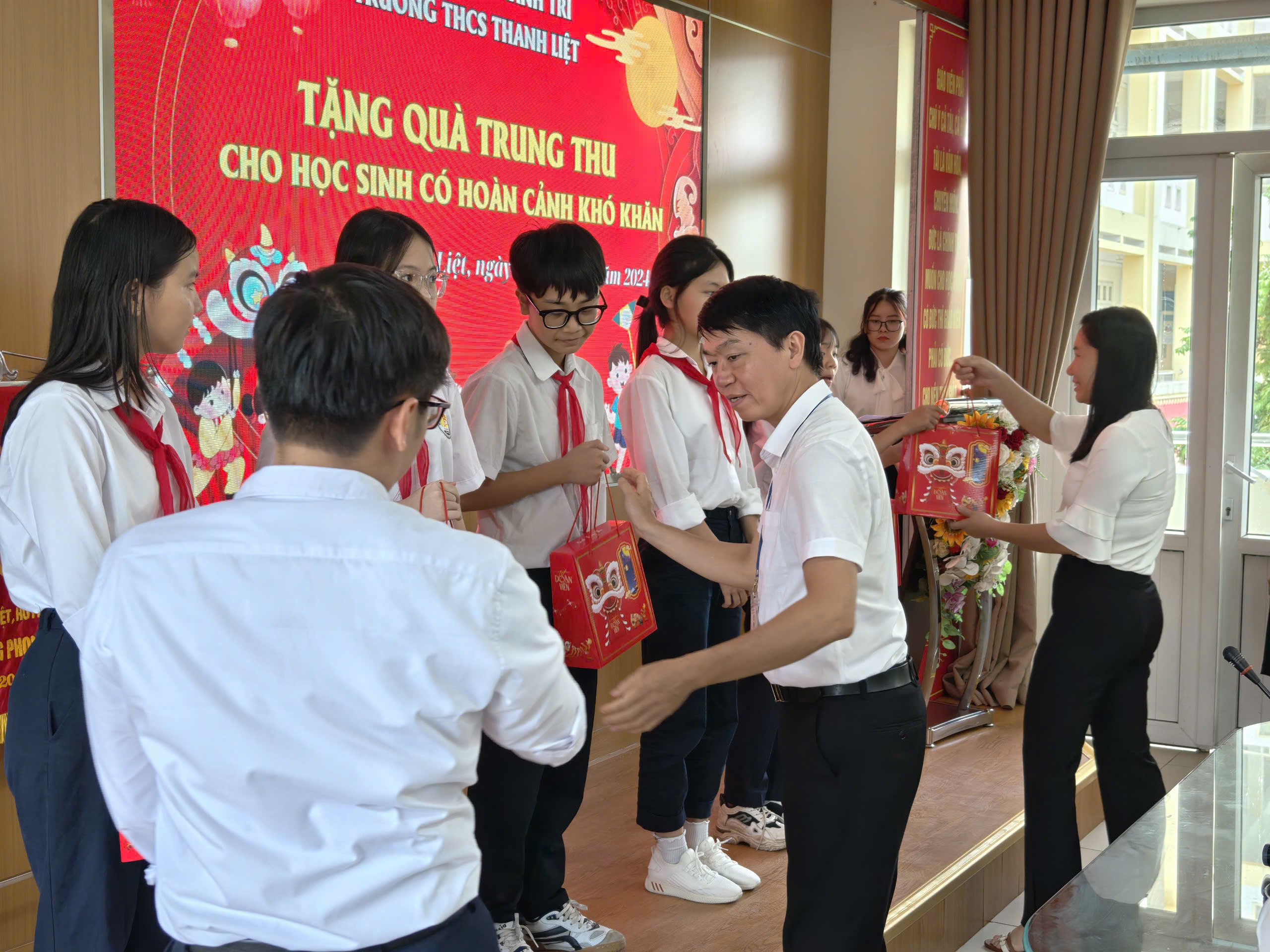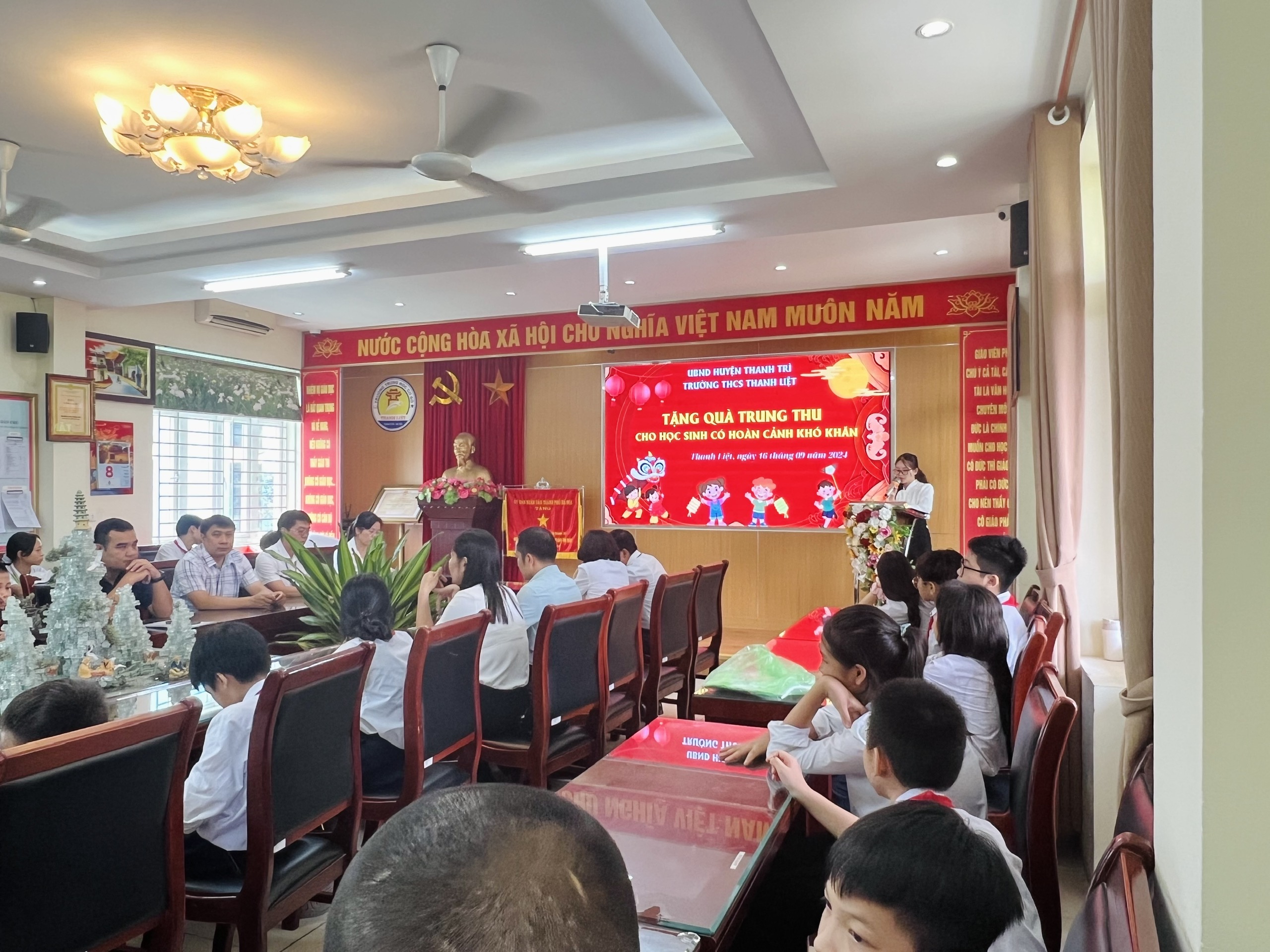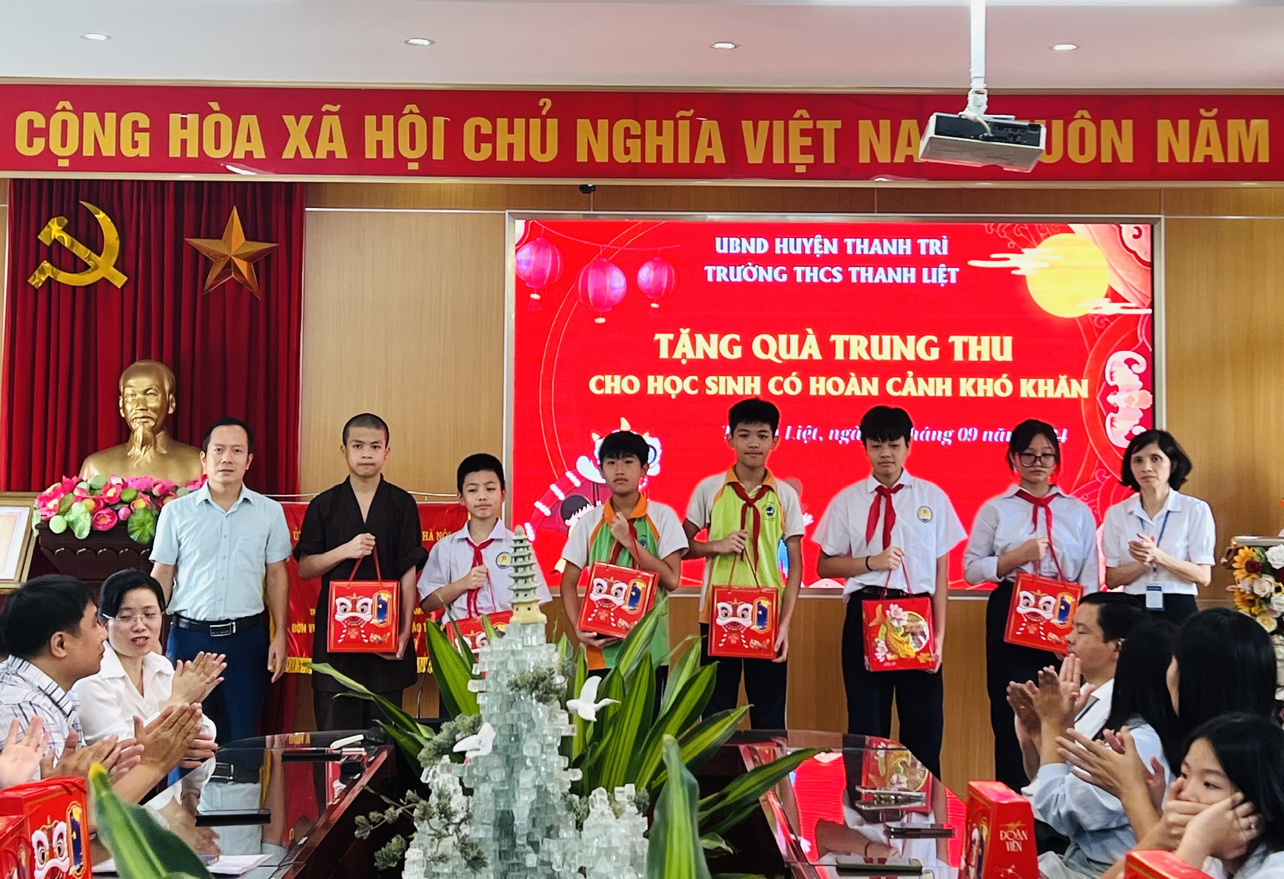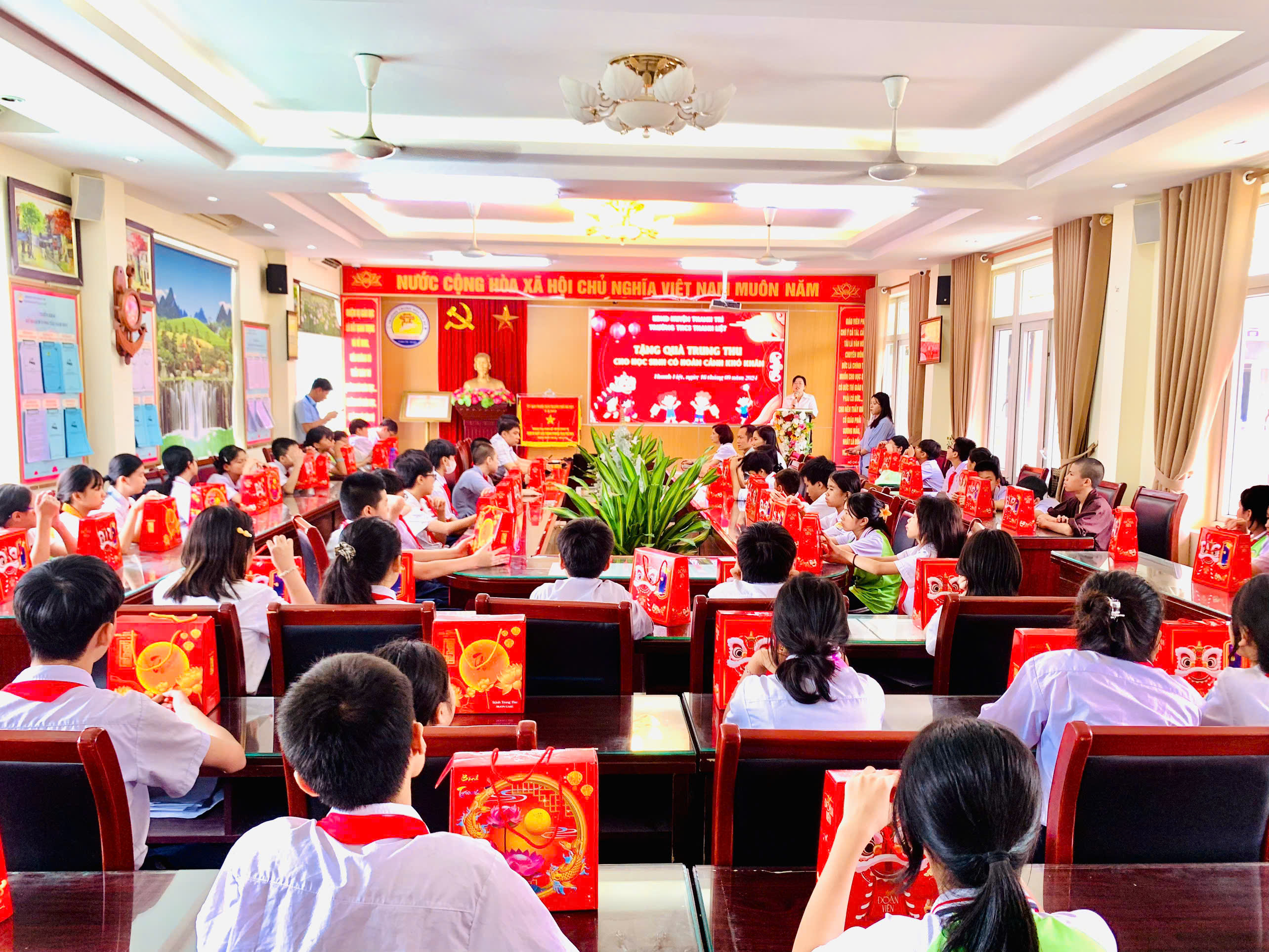 Nhập dịp tết trung thu 2024, trường THCS Thanh Liệt phối hợp với phụ huynh tặng 60 suất quà đến các em học sinh có hoàn cảnh khó khăn những luôn nỗ lực vươn lên trong học tập là các em thuộc diện chính sách, mồ côi, các em học sinh bị ảnh hưởng do cơn bão số 3 gây ra…. Được sự quan tâm của lãnh đạo các cấp, có 03 học sinh được nhận học bổng, mỗi xuất học bổng trị giá 2,000,000 đồng. Đây là những món quà vô cùng ý nghĩa với các em học sinh nhằm động viên tinh thần, tiếp thêm nghị lực cho các em nhanh chóng vượt qua khó khăn để nỗ lực cố gắng học tập tốt hơn nữa.