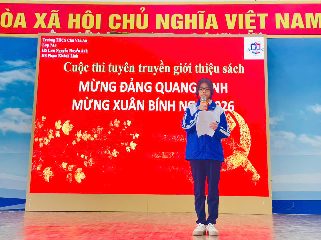 Thực hiện Kế hoạch số 04/KH ngày 06/01/2026 của Trường THCS Chu Văn An về việc hưởng ứng Tuần lễ Văn hóa đọc và tổ chức Ngày hội đọc sách với chủ đề “Mừng Đảng, mừng Xuân”, thiết thực chào mừng Xuân Bính Ngọ 2026 và kỷ niệm 96 năm Ngày thành lập Đảng Cộng sản Việt Nam (03/02/1930 – 03/02/2026)