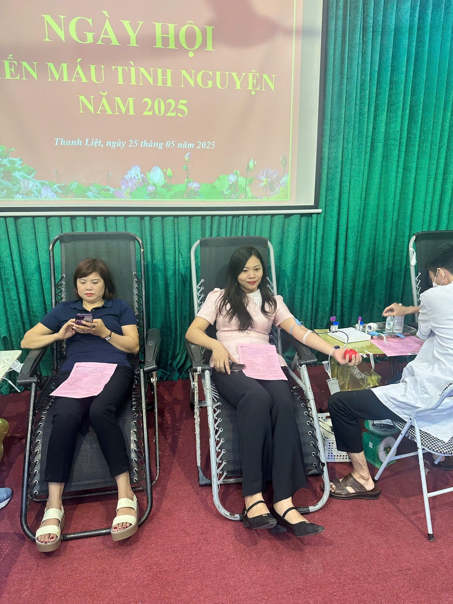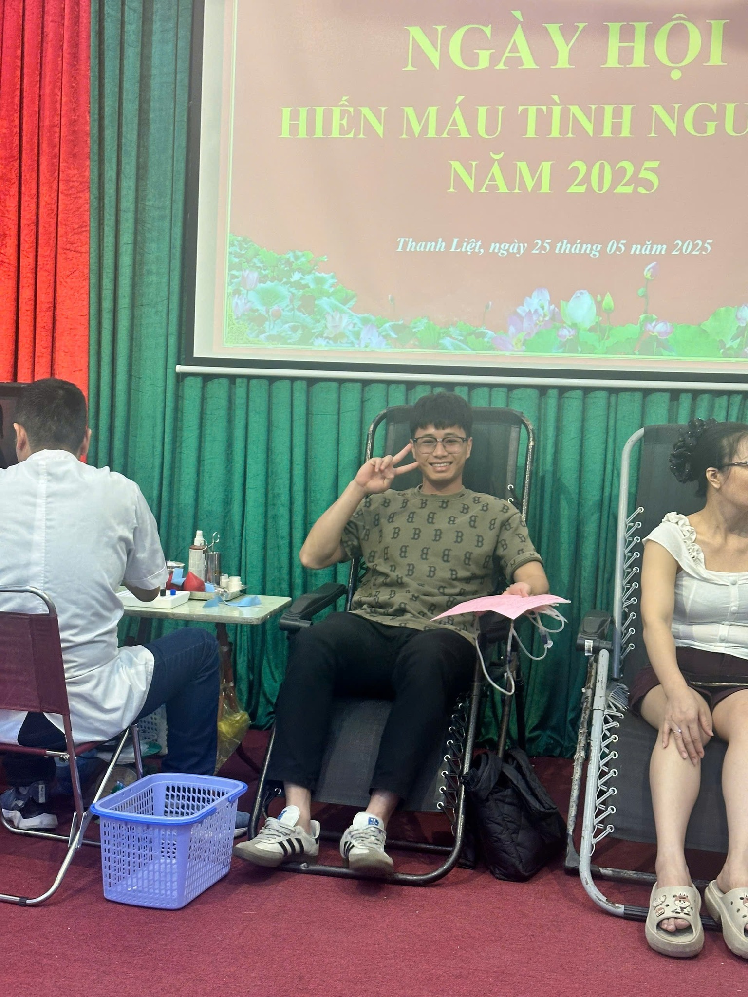 Hưởng ứng phong trào hiến máu tình nguyện năm 2025 của thành phố Hà Nội, sáng chủ nhật ngày 25/05/2025, các đồng chí giáo viên, công nhân viên trường THCS Thanh Liệt đã cùng với các đồng chí tình nguyện viên trên địa bàn tập trung tại hội trường UBND Xã Thanh Liệt để được tư vấn, kiểm tra sức khỏe và làm các thủ tục tham gia hiến máu tình nguyện. Sau khi kiểm tra và được tư vấn, trường THCS Thanh Liệt có nhiều đồng chí tham gia hiến máu nhân đạo như: Nguyễn Minh Đức, Trình Hải Thu Mai, Đỗ Hữu Hưởng, Chu Hạnh Phúc, Phạm Thị Trang... Đây cũng chính là một trong những hoạt động nhân đạo có ý nghĩa thường xuyên được công đoàn và chi Đoàn nhà trường hưởng ứng và tham gia rất tích cực hàng năm.