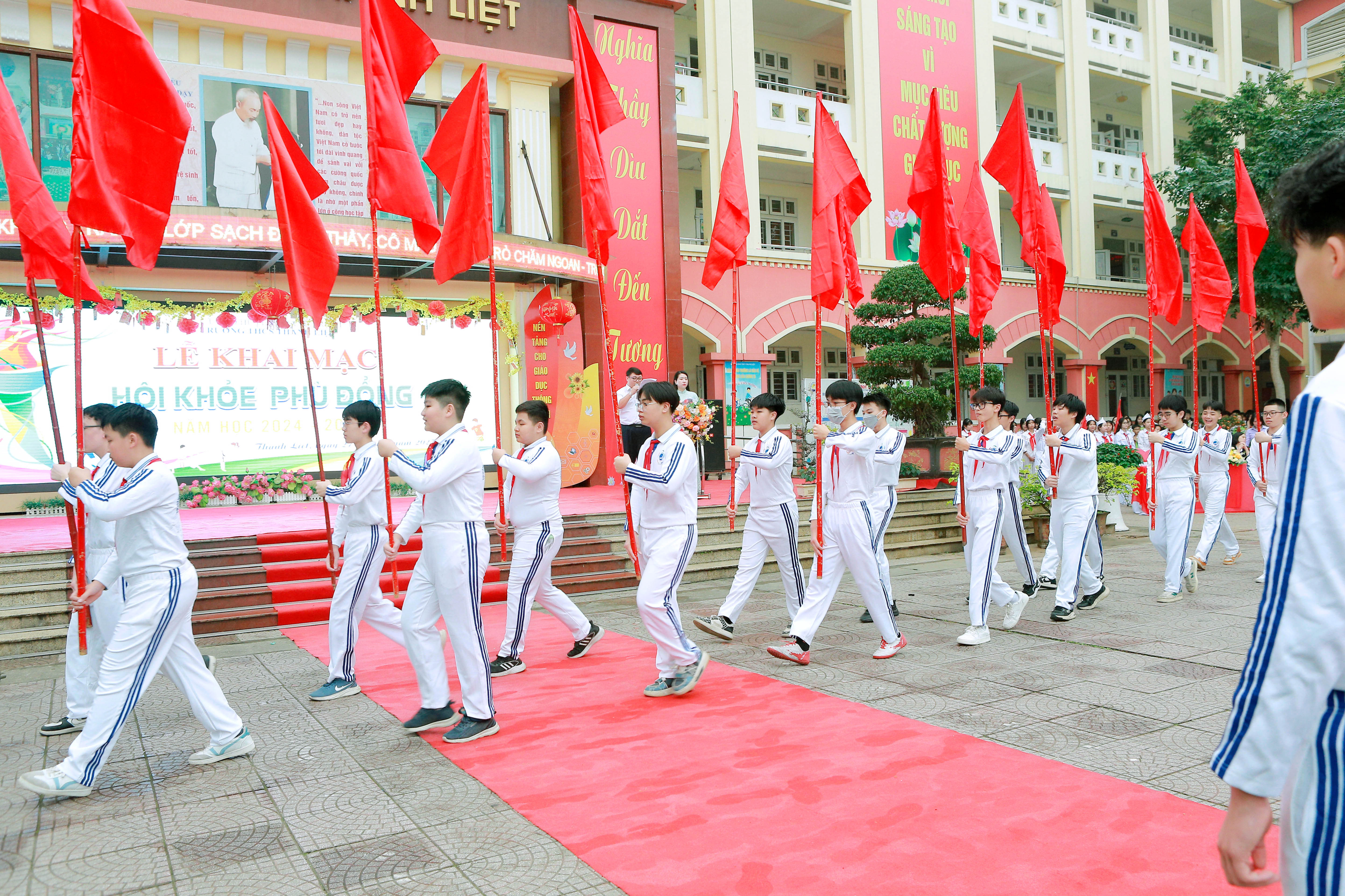 * Tại Hội khoẻ, diễn ra lễ diễu hành biểu dương lực lượng của các VĐV tiêu biểu các khối 6,7,8,9; tổ trọng tài và lễ rước đuốc. Ngọn lửa thiêng được rước từ nghĩa trang xã về đài đuốc Hội khoẻ Phù Đổng, thắp sáng và lan toả tinh thần thể thao đến tất cả các em học sinh nhà trường.