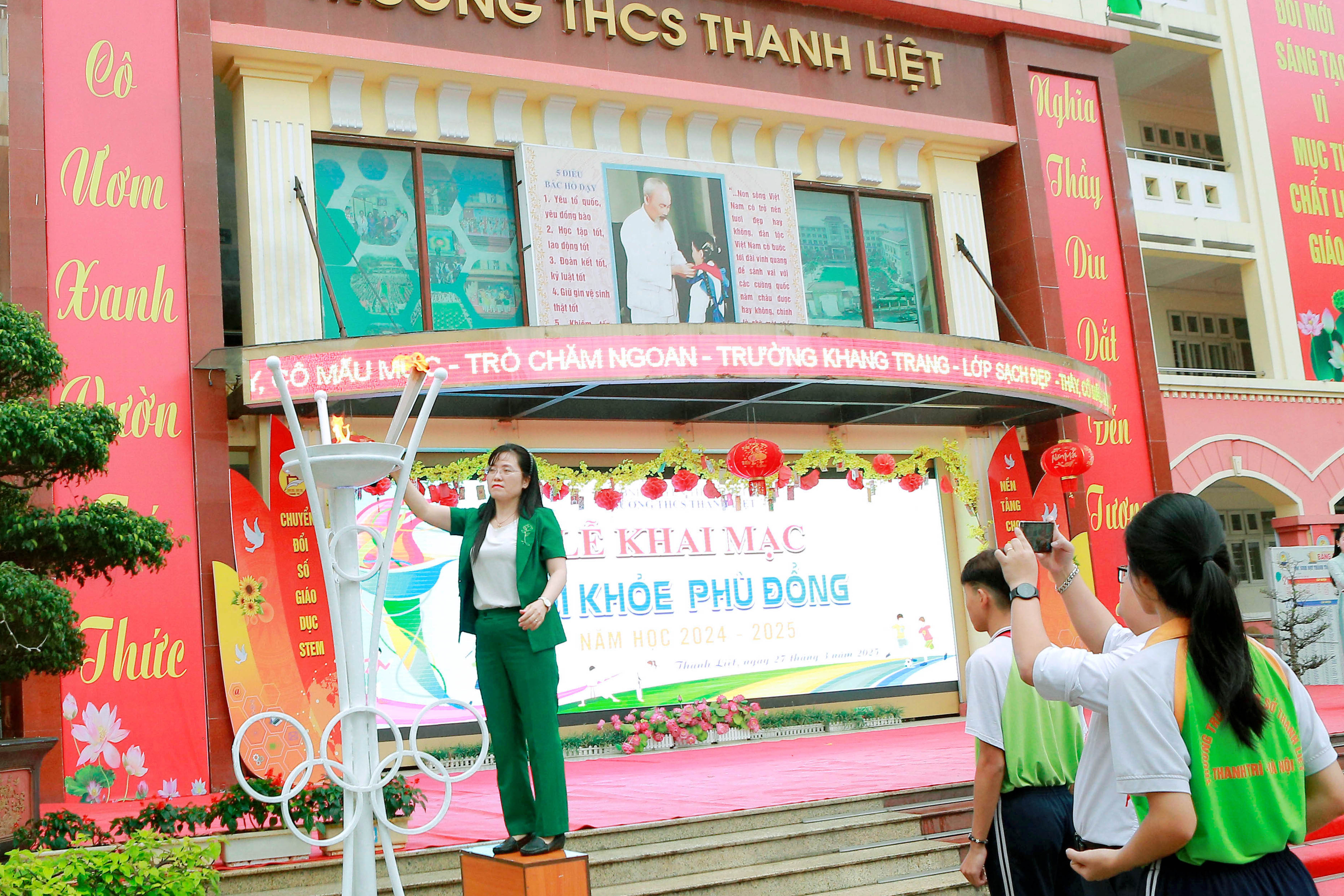 * Thực hiện nhiệm vụ năm học 2024-2025 của trường THCS Thanh Liệt, thực hiện chỉ đạo của PGD&ĐT huyện Thanh Trì về việc tổ chức Hội khoẻ Phù Đổng cấp cơ sở; Hưởng ứng phong trào “Rèn luyện thân thể theo gương Bác Hồ vĩ đại” mọi thế hệ đều ra sức rèn luyện thân thể, luyện tập thể thao. Sáng hôm nay (27/03/2025) nhà trường long trọng tổ chức “ Khai mạc Hội khoẻ Phù Đổng” năm học 2024-2025 nhằm đánh giá kết quả phấn đấu rèn luyện và phát triển giáo dục, thể chất của nhà trường .