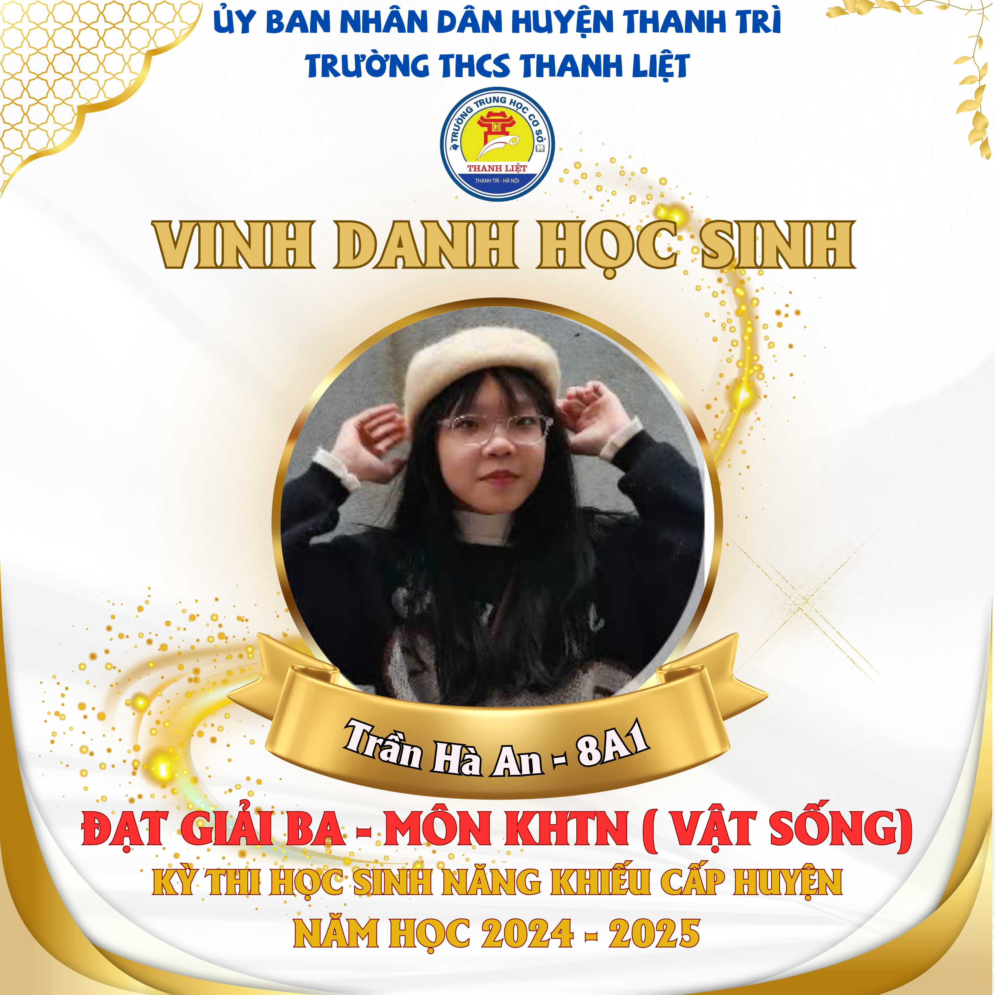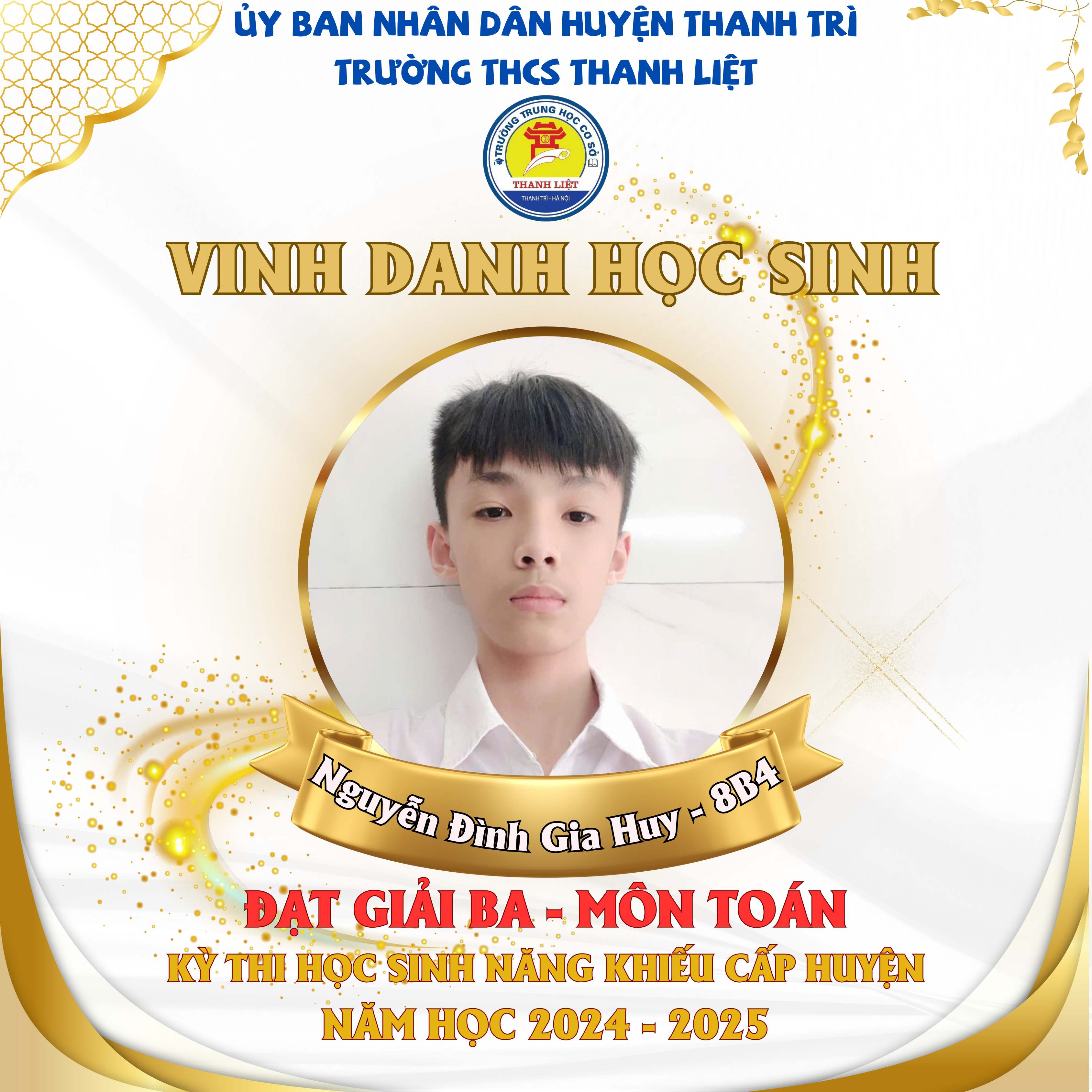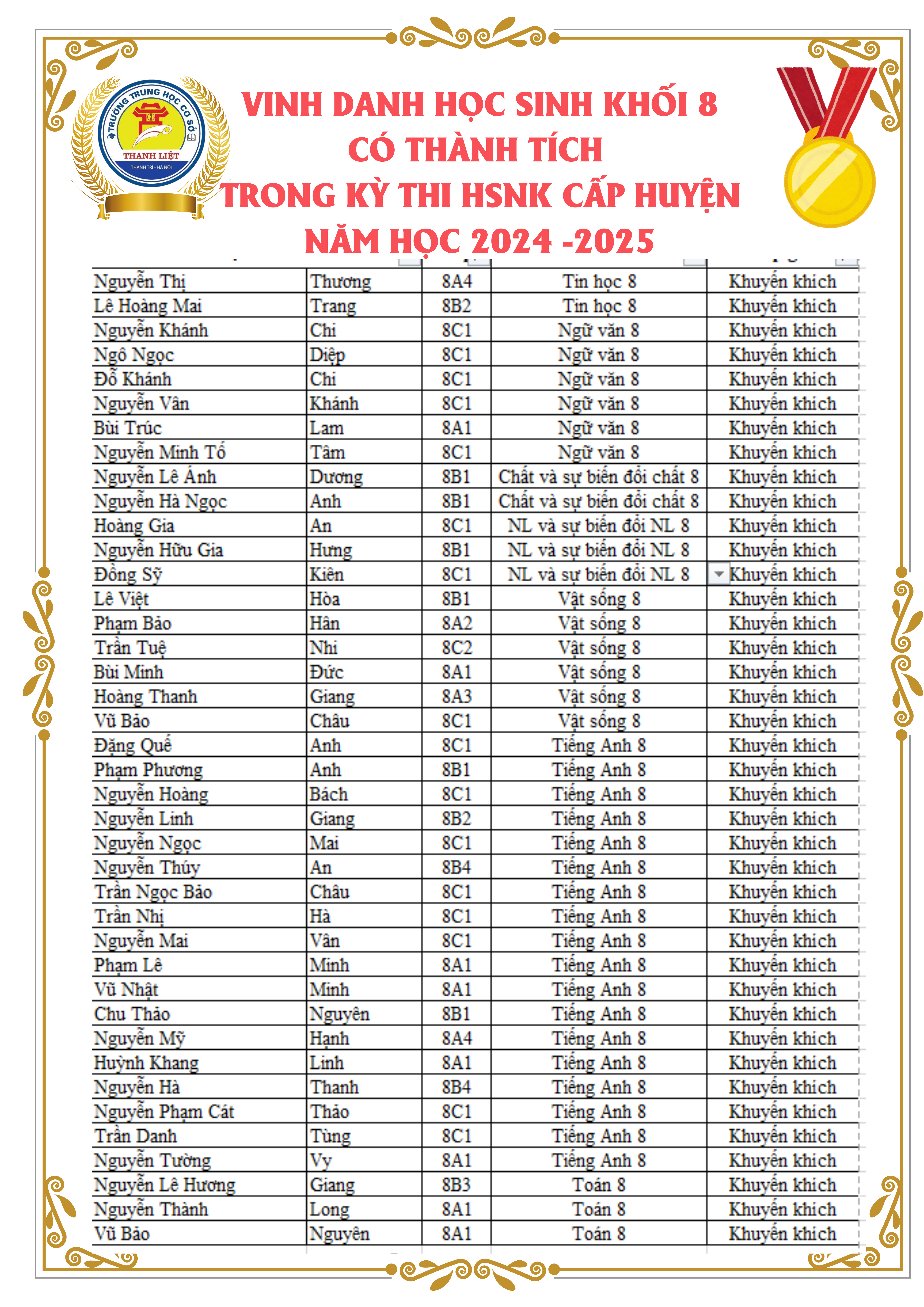 Trong năm học 2024-2025, các em học sinh khối 8 của nhà trường đã xuất sắc đạt nhiều giải thưởng cao trong kỳ thi học sinh giỏi cấp huyện.
