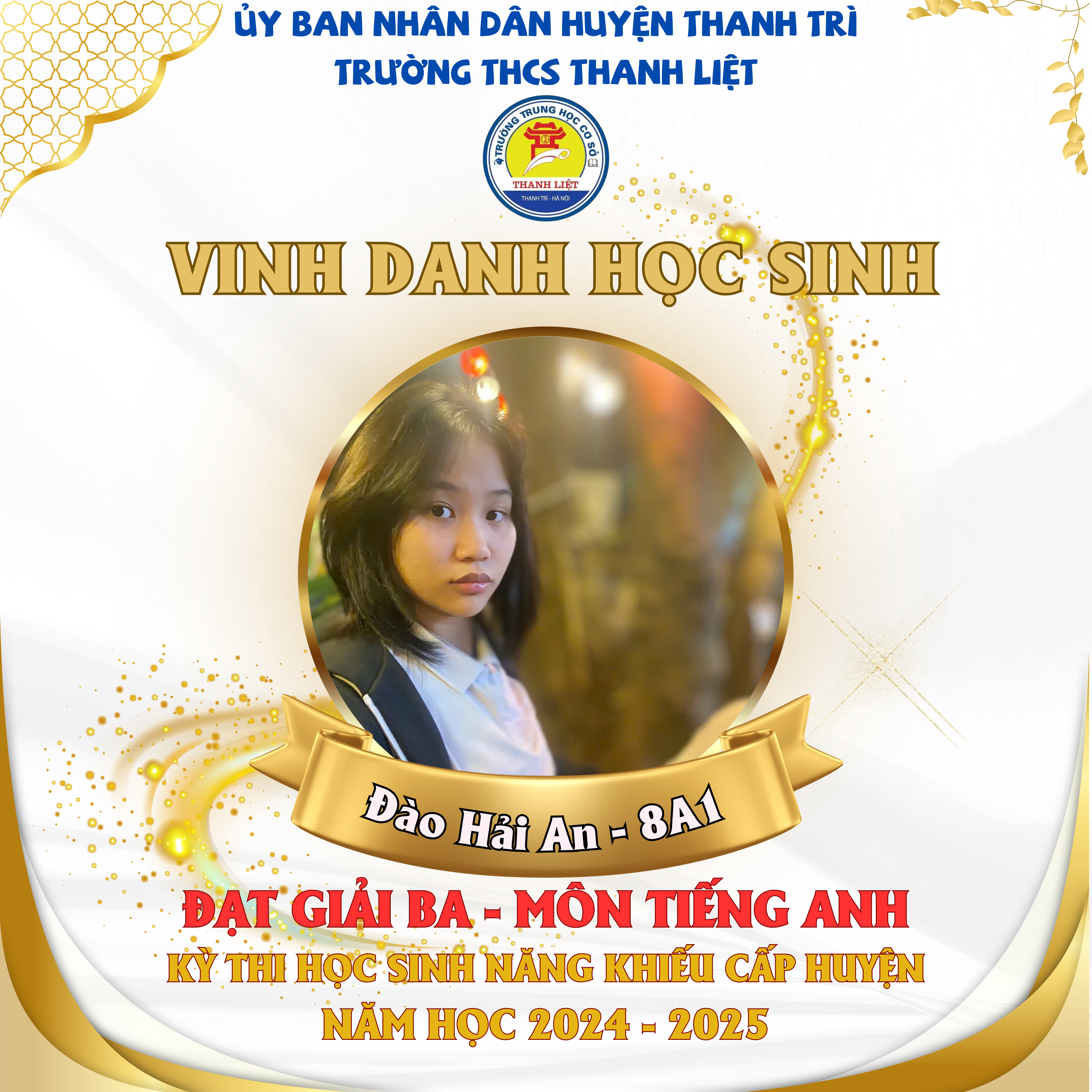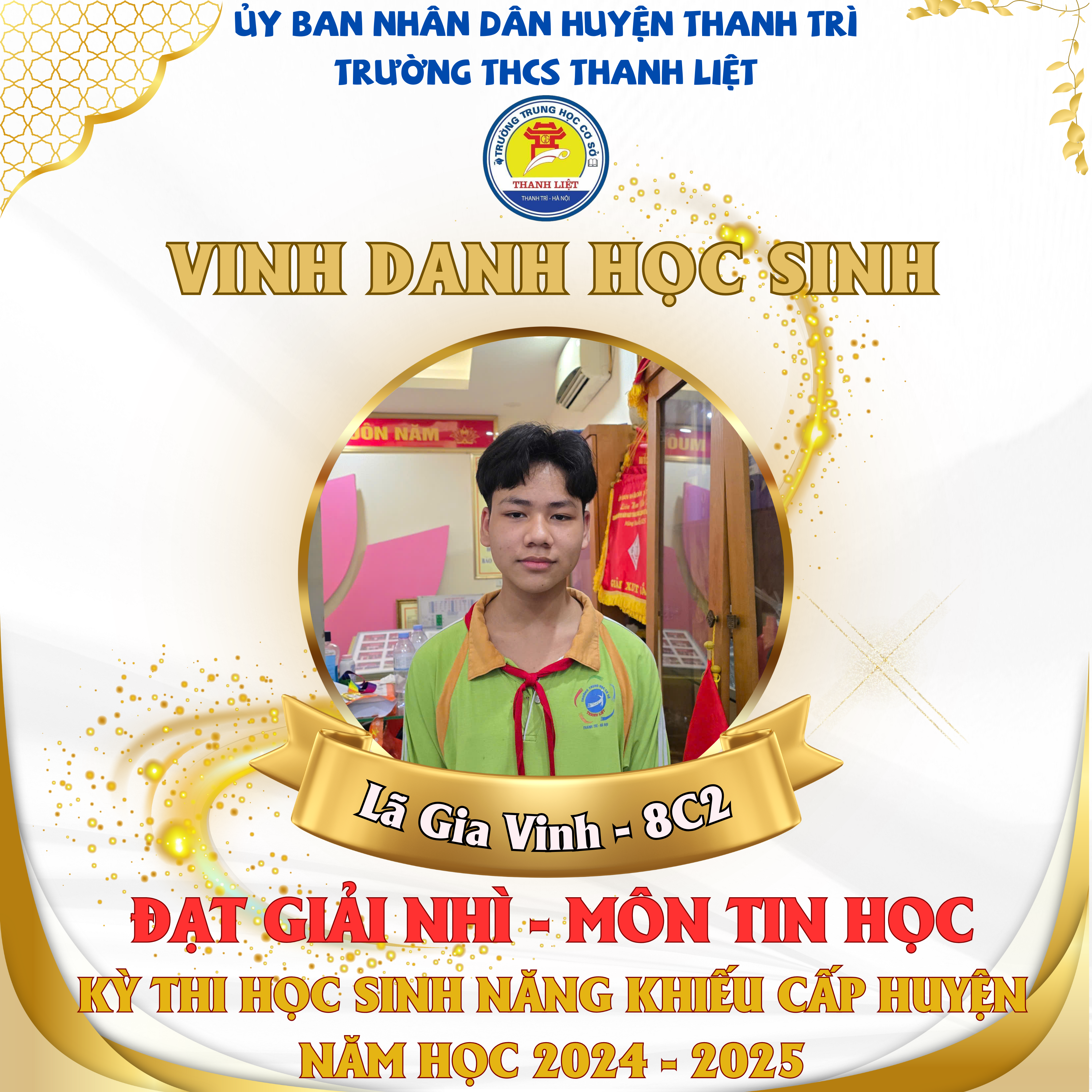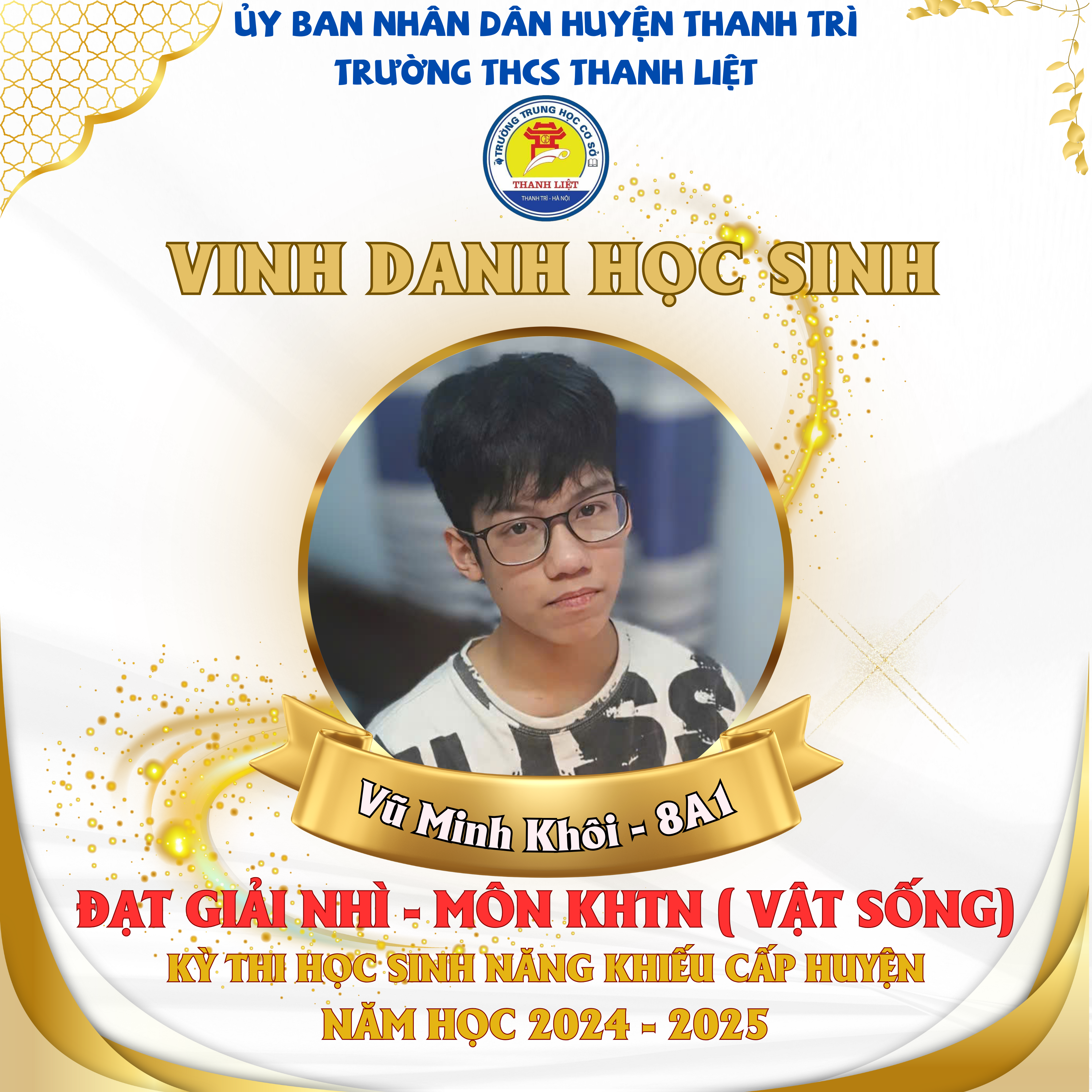 Trong năm học 2024-2025, các em học sinh khối 8 của nhà trường đã xuất sắc đạt nhiều giải thưởng cao trong kỳ thi học sinh giỏi cấp huyện.