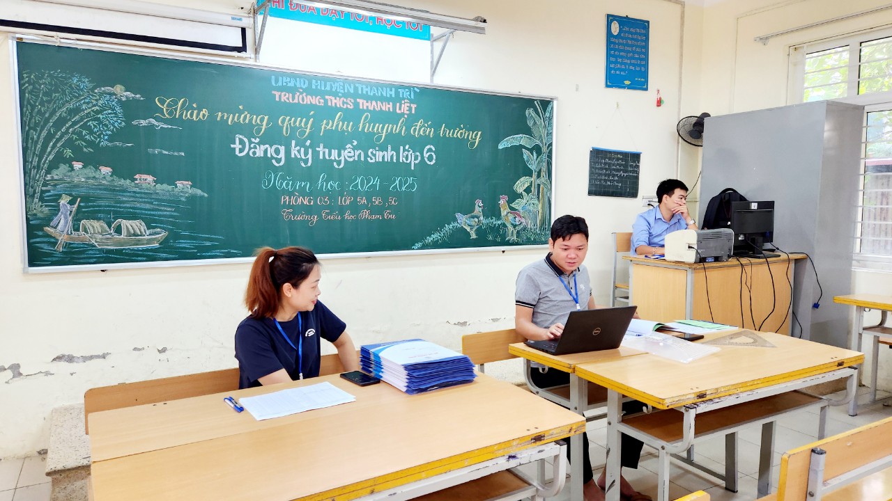 * Để chuẩn bị cho việc tuyển sinh vào lớp 6 năm học 2024-2025 trường THCS Thanh Liệt đã có sự chuẩn bị trong nhiều ngày, ngày 6/7/2024 nhà trường đã hoàn tất công tác chuẩn bị sẵn sàng chào đón các bậc phụ huynh và các em học sinh đến làm thủ tục tuyển sinh. Sáng ngày 7/7/2024 nhà trường tổ chức hỗ trợ nhập học trực tuyến cho PH.