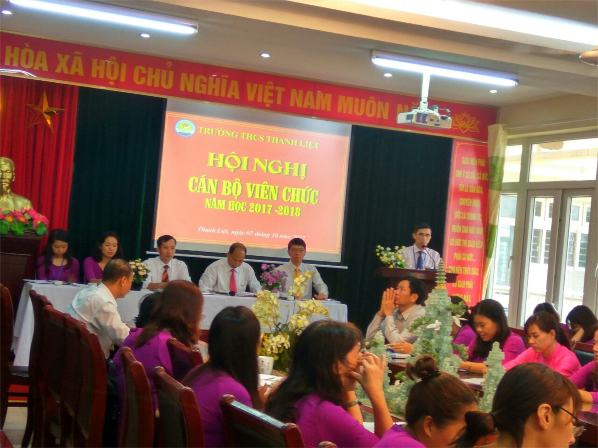 Thực hiện Kế hoạch năm học 2017-2018, sáng ngày 7/10/2017, Trường THCS Thanh Liệt đã tổ chức thành công Hội nghị cán bộ công chức, viên chức năm học 2017-2018.