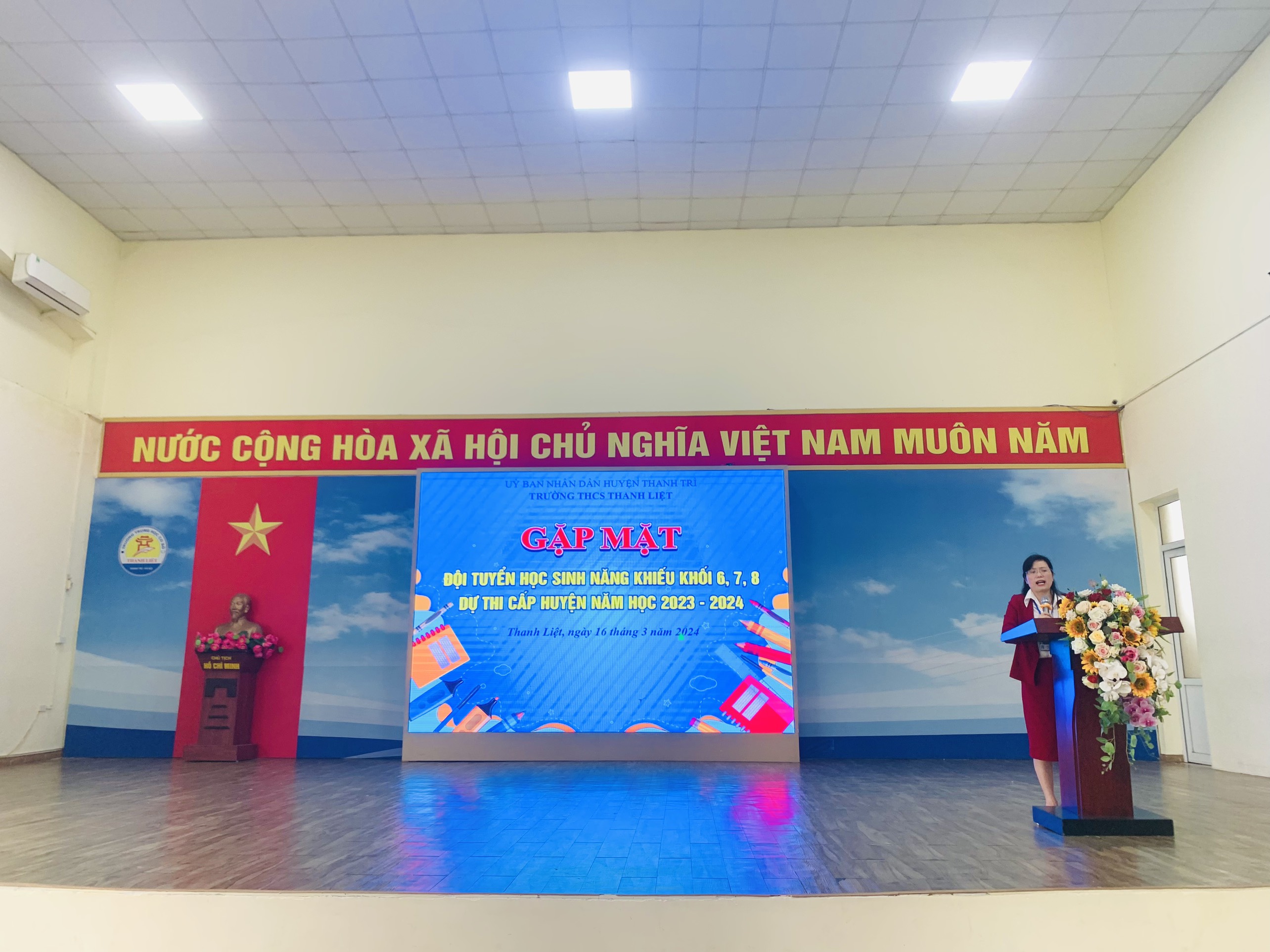 Với mong muốn chia sẻ phần nào những áp lực thi cử, động viên các con tự tin thể hiện hết năng lực của mình, ngày 16/3/2024, Ban giám hiệu và các thầy cô giáo dạy bồi dưỡng HSG của Nhà trường đã tổ chức một buổi gặp mặt hết sức thân mật, cởi mở, nhằm động viên cũng như tiếp thêm sức mạnh tinh thần cho các bạn thí sinh chuẩn bị bước vào cuộc thi quan trọng này.