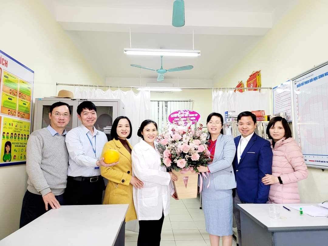 Cách đây đúng 68 năm, ngày 27/2/1955 Chủ tịch Hồ Chí Minh kính yêu đã viết thư gửi hội nghị cán bộ ngành y tế với những lời dạy quý báu. Ngày này được xem là ngày tôn vinh các Y, Bác sĩ và những người đang làm việc trong ngành y tế và Bộ Y tế đã lấy ngày 27 tháng 2 là ngày truyền thống của ngành. Ngày 6 tháng 2 năm 1985, Hội đồng Bộ trưởng đã đưa ra quyết định ngày 27 tháng 2 hàng năm là Ngày thầy thuốc Việt Nam nhằm nêu cao trách nhiệm và tài trí của người cán bộ y tế trong sự nghiệp xây dựng và bảo vệ Tổ quốc. Nhằm tôn vinh 68 năm ngày thầy thuốc Việt Nam, đồng chí Trần Mai Hương- Bí thư chi bộ, hiệu trưởng nhà trường cùng các thầy cô giáo đại diện cho CB-GV-NV và HS đã tặng hoa chúc mừng đến Cô Nguyễn Thị Hợi- nhân viên viên y tế của nhà trường, trạm y tế xã Thanh Liệt, viên y học cổ truyền quân đội.