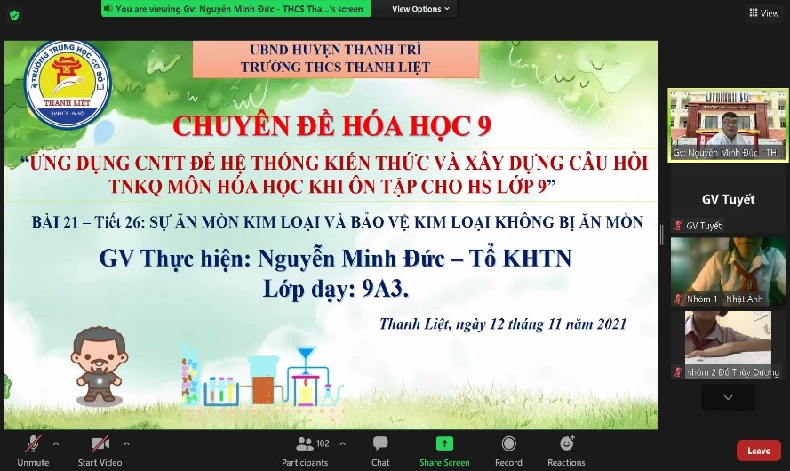 Trước tình hình dịch bệnh Covid – 19 diễn ra căng thẳng và phức tạp, nhiều địa phương phải dạy học thông qua hình thức trực tuyến cho học sinh. Để tiết học hiệu quả, học sinh được hoạt động tích cực, tương tác tốt và mang lại hứng thú cao là điều mà bản thân mỗi thầy cô giáo luôn mong mỏi hướng tới. Do đó tổ Khoa học tự nhiên đã chọn chuyên đề “Ứng dụng công nghệ thông tin để hệ thống kiến thức và xây dựng câu hỏi TNKQ môn Hóa học khi ôn tập cho học sinh lớp 9” qua bài 21- Tiết 26: Sự ăn mòn kim loại và bảo vệ kim loại không bị ăn mòn”