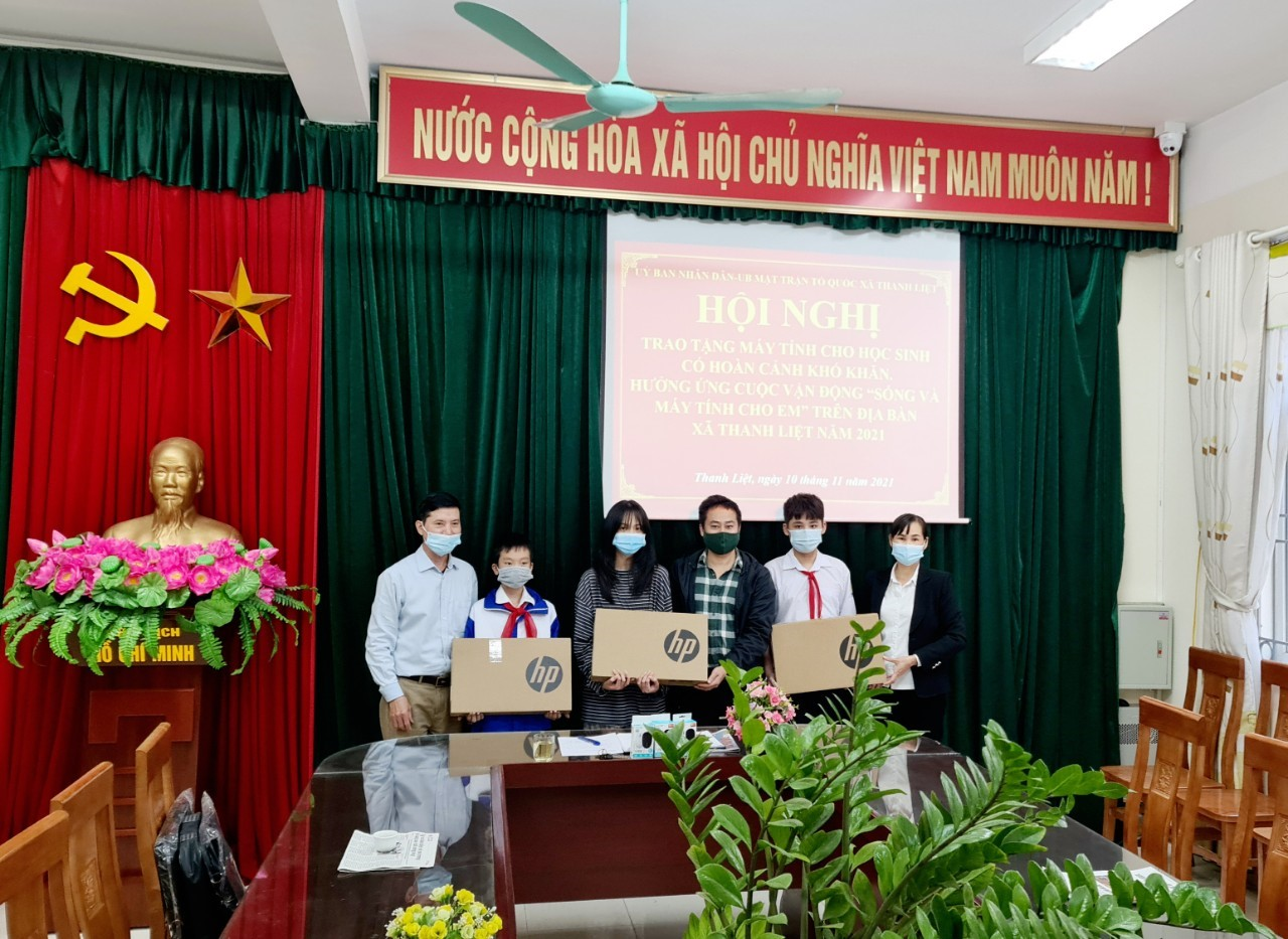Ngày 10/11/2021, Đại diện UBND, Mặt trận Tổ quốc xã Thanh Liệt đã tổ chức trao tặng cho 3 em học sinh có hoàn cảnh đặc biệt của trường THCS Thanh Liệt: Em Vũ Quỳnh Anh lớp 8C2, Em Vũ Tuấn Bách lớp 8C3, em Đặng Xuân Cao lớp 6C3 - mỗi em một máy tính xách tay. Buổi trao tặng diễn ra thật ấm áp. Phát biểu tại Hội nghị trao quà cho học sinh có hoàn cảnh khó khăn, ông Nguyễn Văn Phong - Chủ tịch UBMT Tổ quốc xã Thanh Liệt biểu dương những thành tích của nhà trường đã có nhiều cố gắng hoàn thành xuất sắc nhiệm vụ trong năm học vừa qua. Đồng thời cũng ghi nhận tấm lòng, sự chia sẻ kịp thời của BGH nhà trường, Hội CMHS, các thầy cô, cha mẹ học sinh nhà trường đã có những món quà ý nghĩa dành tặng các em học sinh có hoàn cảnh khó khăn do ảnh hưởng của dịch bệnh Coovid – 19. Mong muốn 3 em học sinh được tặng quà hôm nay sẽ hiểu được tình cảm của lãnh đạo địa phương, nhà trường, của CMHS, cùng các bạn để vươn lên, phấn đấu trong học tập.