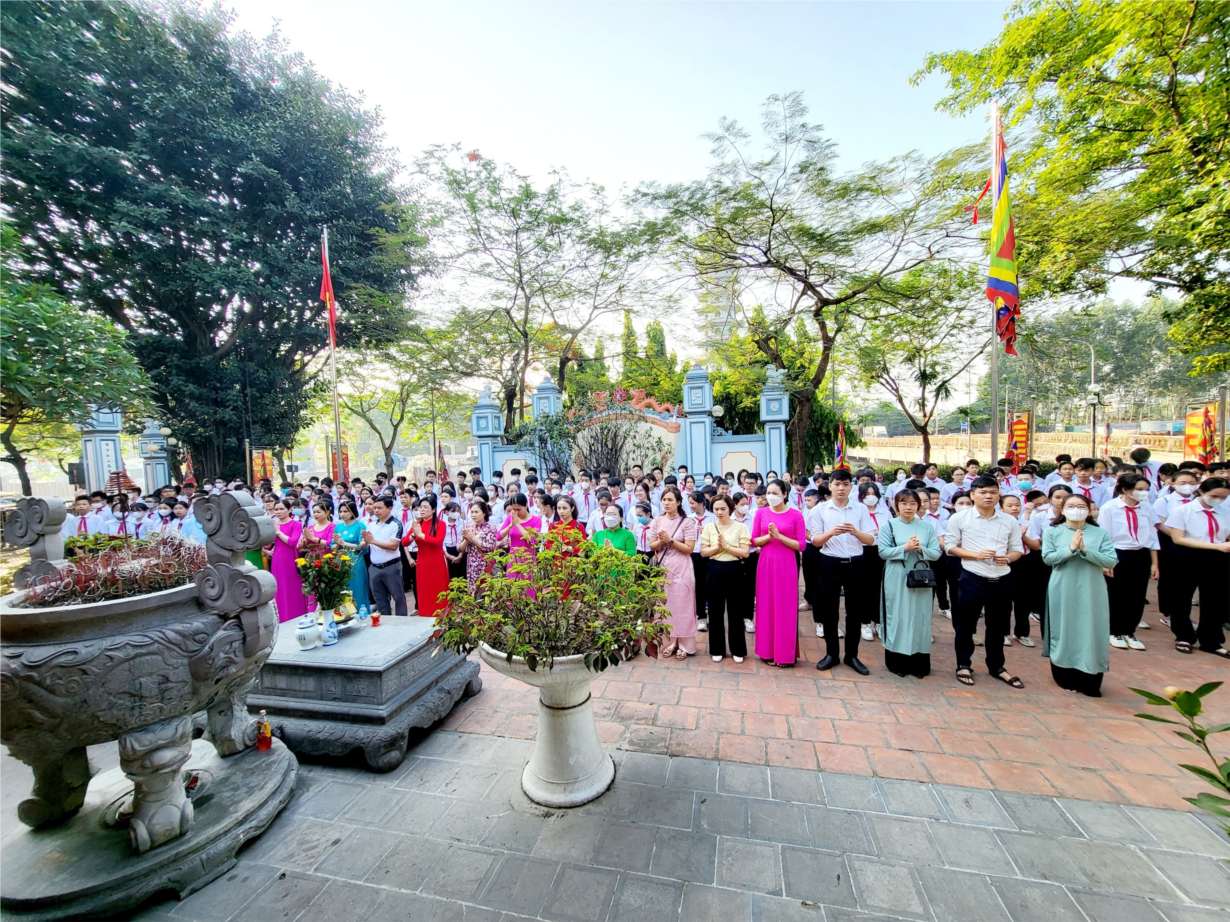Đoàn do đồng chí Trần Mai Hương- Bí thư chi bộ, hiệu trưởng Nhà trường làm trưởng đoàn, tham gia lễ báo công còn có các thầy, cô giáo và các em học sinh đạt giải cấp huyện và thành phố năm học 2022-2023