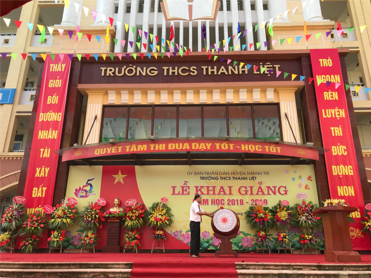 Kết thúc lời chào mừng thầyHiệu trưởng tuyên bố khai giảng năm học 2018 - 2010 trường THCS Thanh Liệt và đánh hồi trống báo hiệu năm học mới bắt đầu. Thầy và trò nhà trường hân hoan vỗ tay theo nhịp trống.