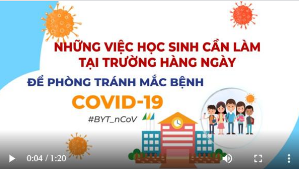 Hiện nay, các tỉnh thành đã cho trẻ đi học trở lại sau thời gian dài nghỉ học phòng bệnh COVID-19. Bộ Y tế vừa xây dựng khuyến cáo bằng video sinh động về những việc học sinh cần làm tại trường hàng ngày để phòng tránh mắc căn bệnh này.